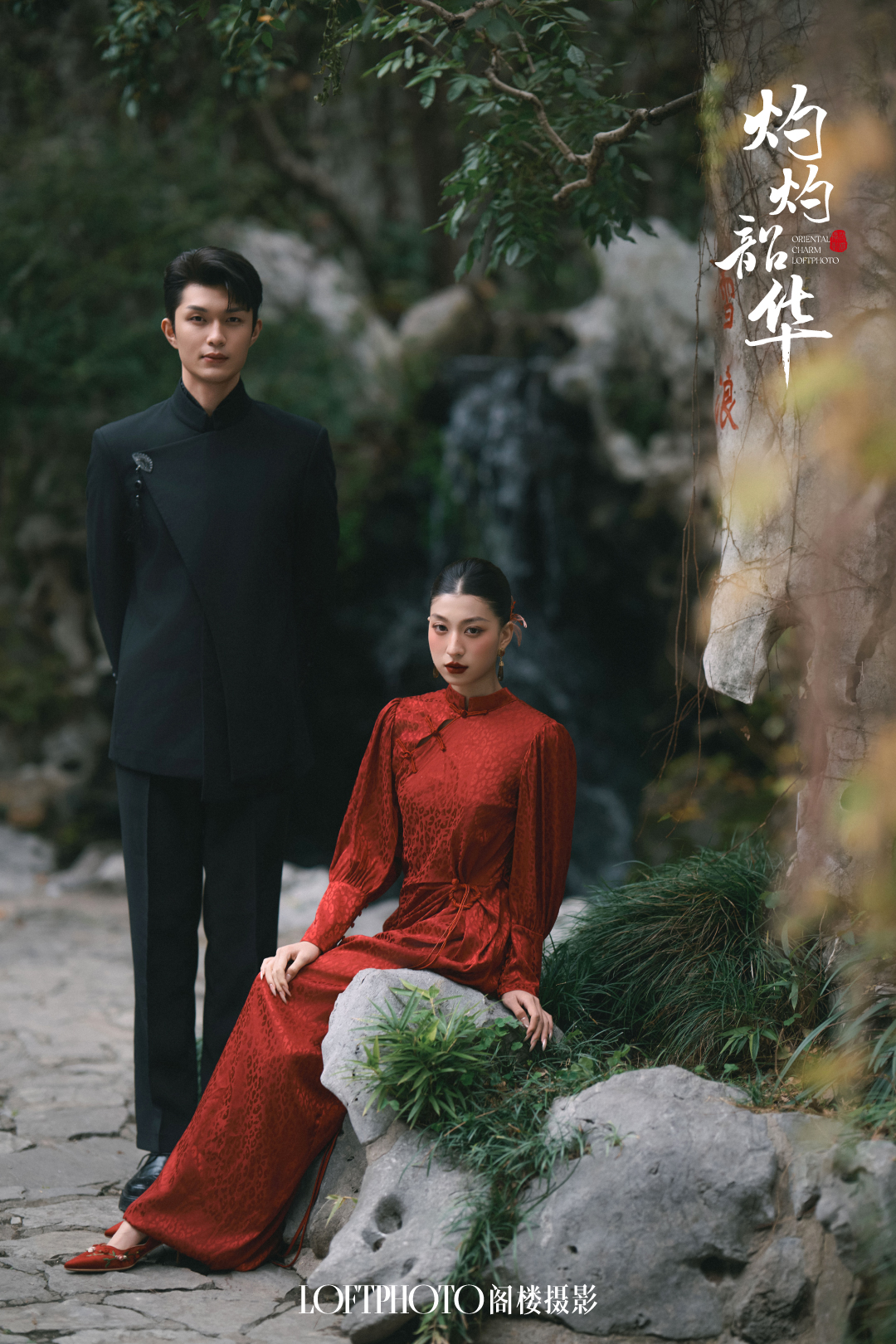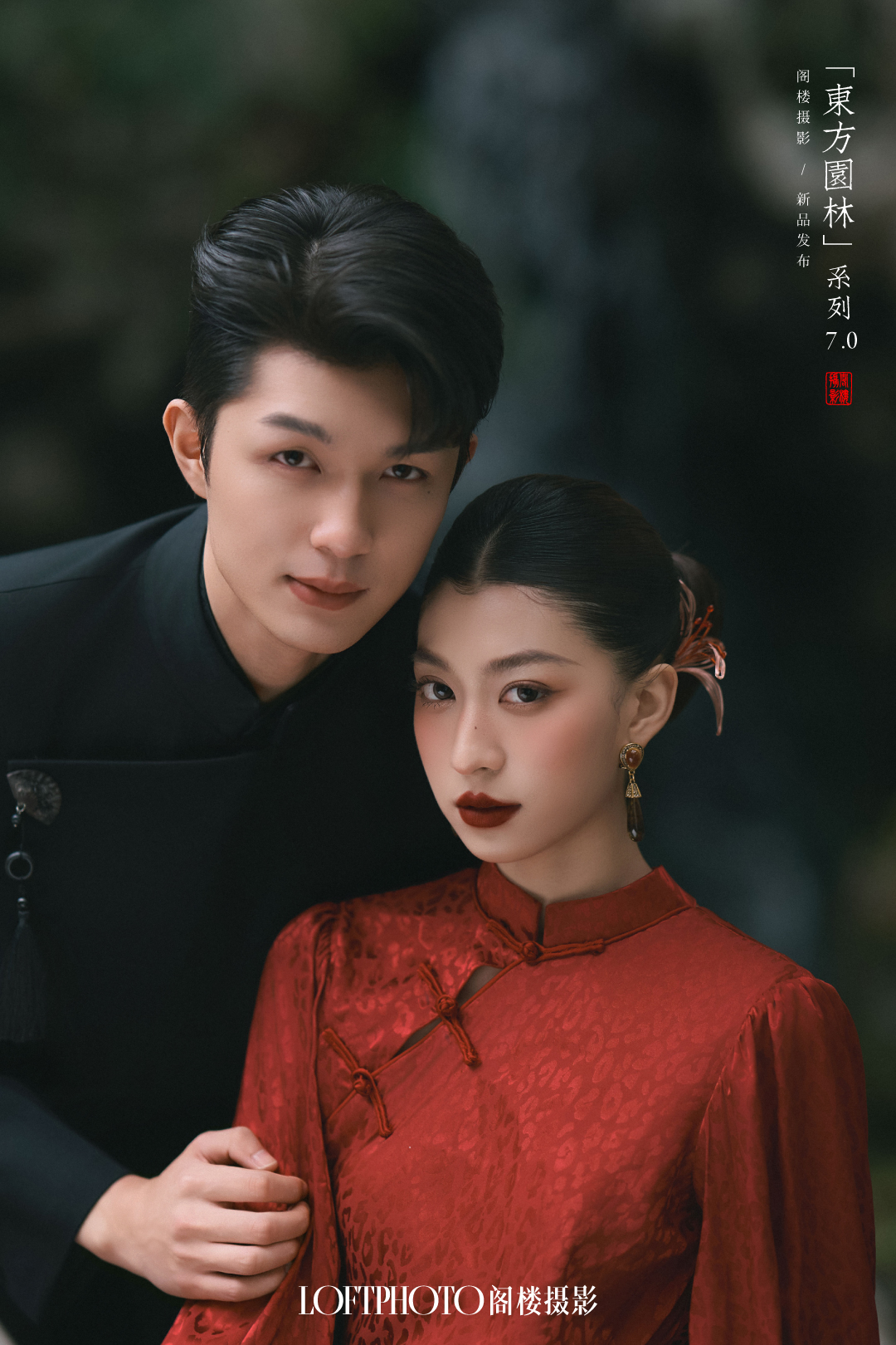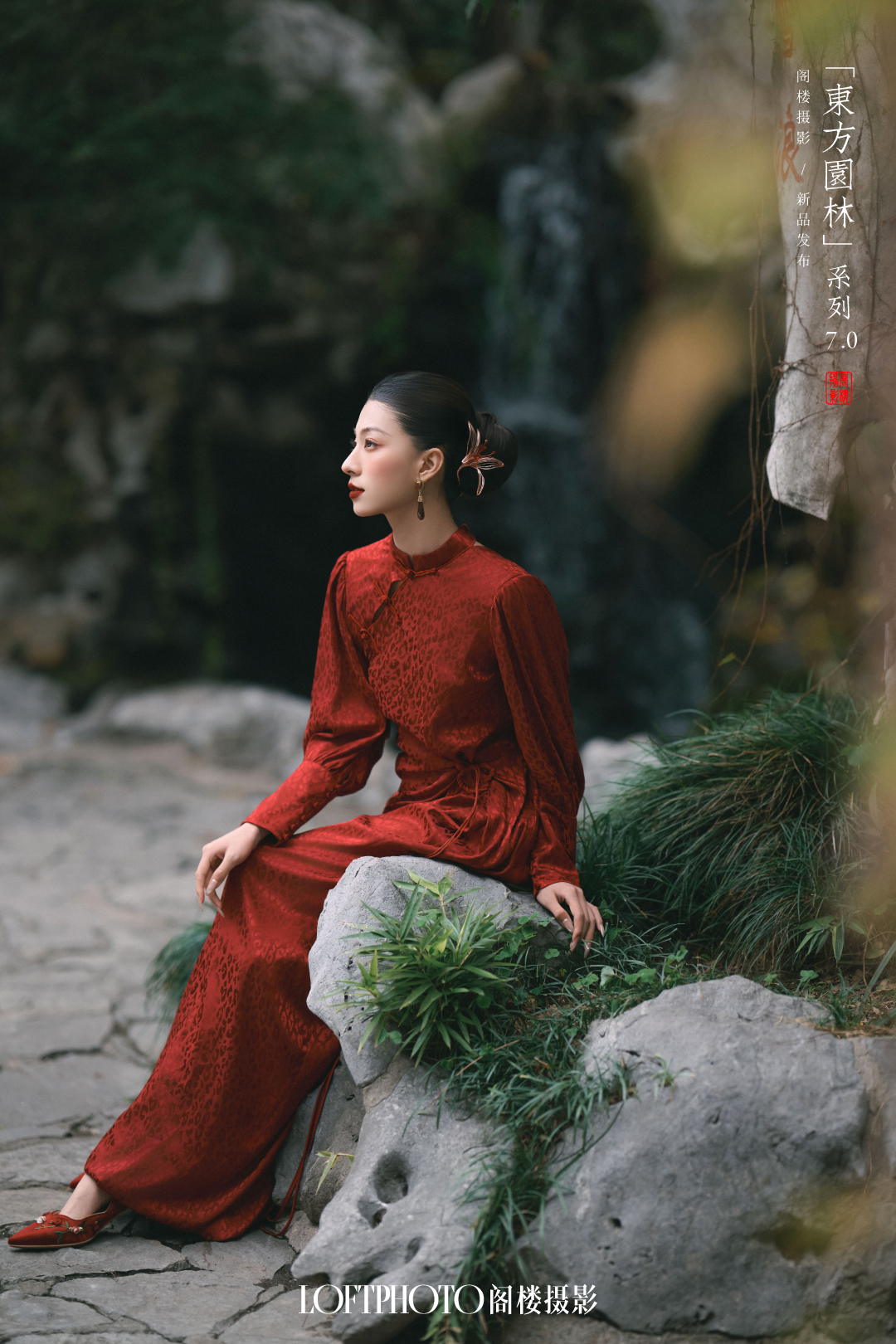 • 是谁被美到我不说 红色新中式真的太显白啦~ 和江南园林的结合, 洋气明媚又富贵,美晕了!! 拍摄:阁楼摄影#美出圈的新中式婚纱照
