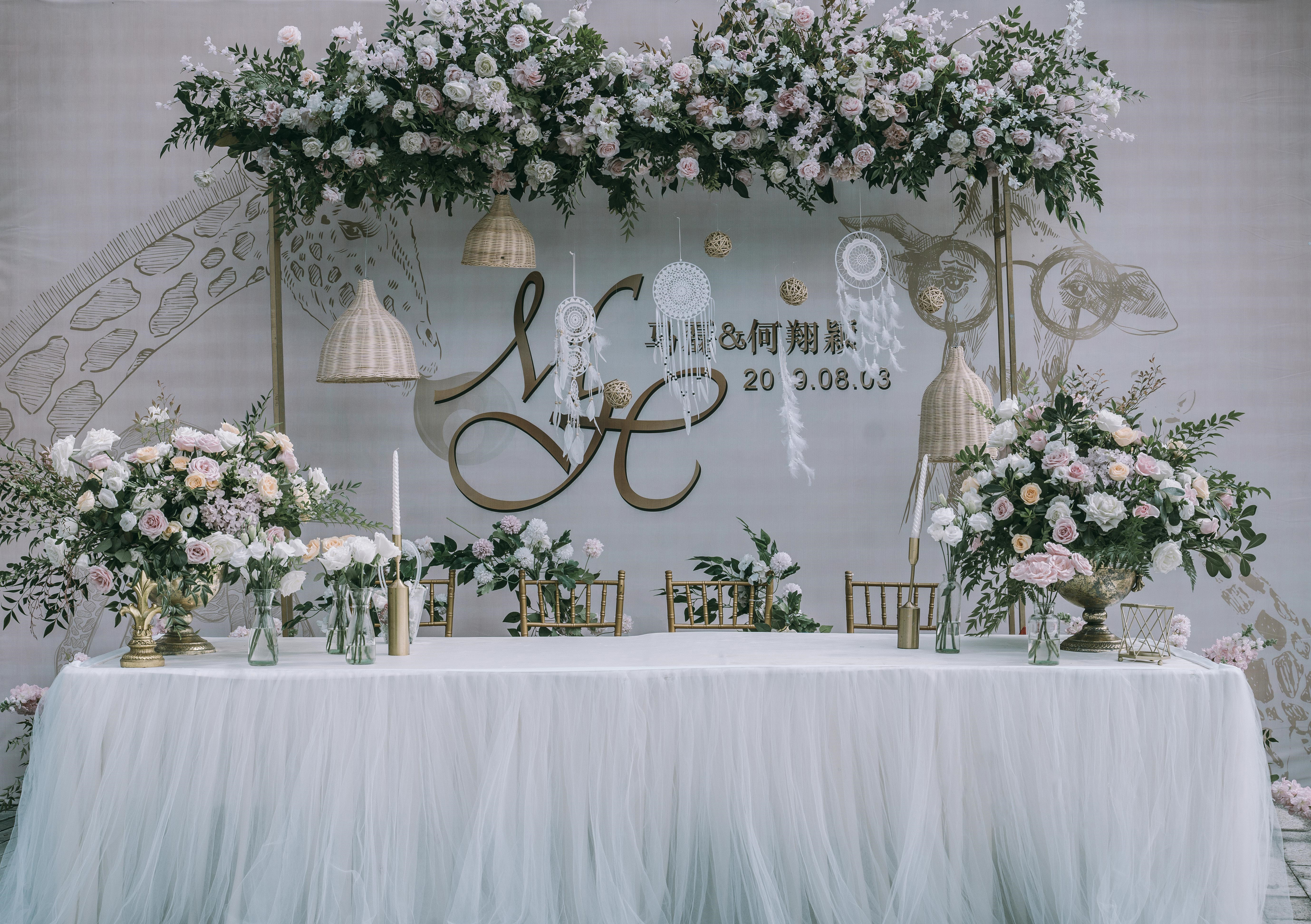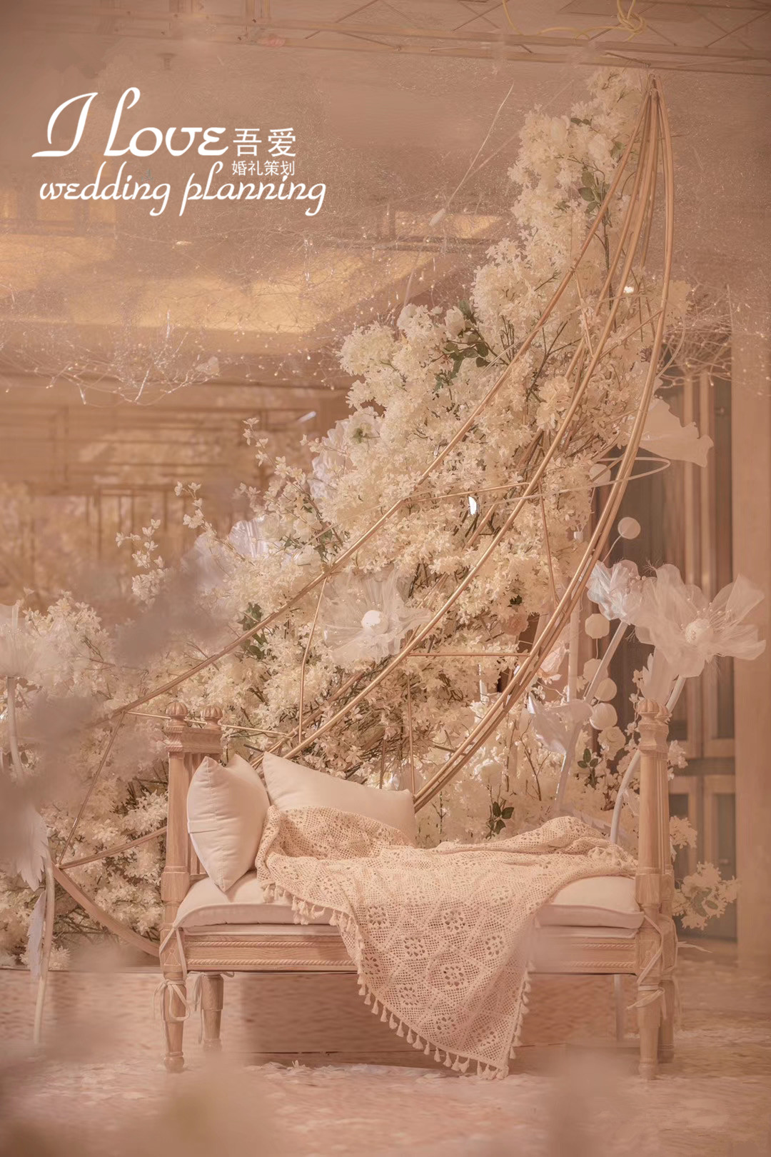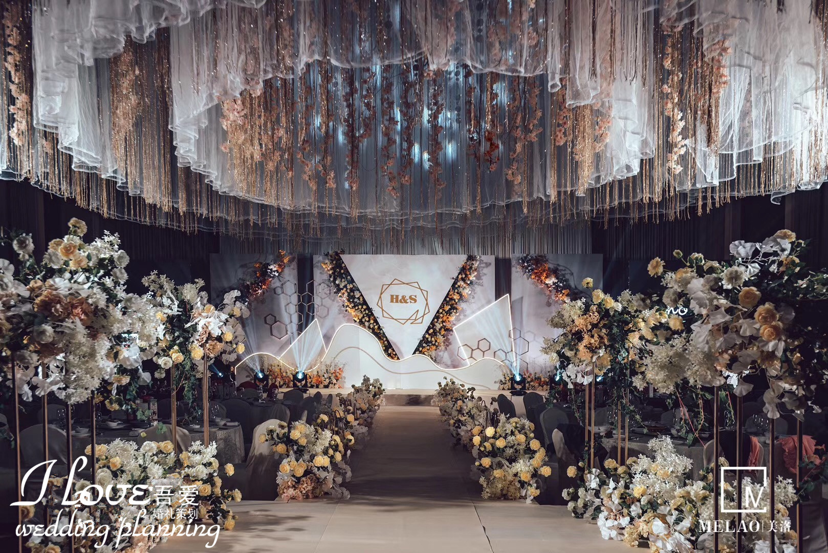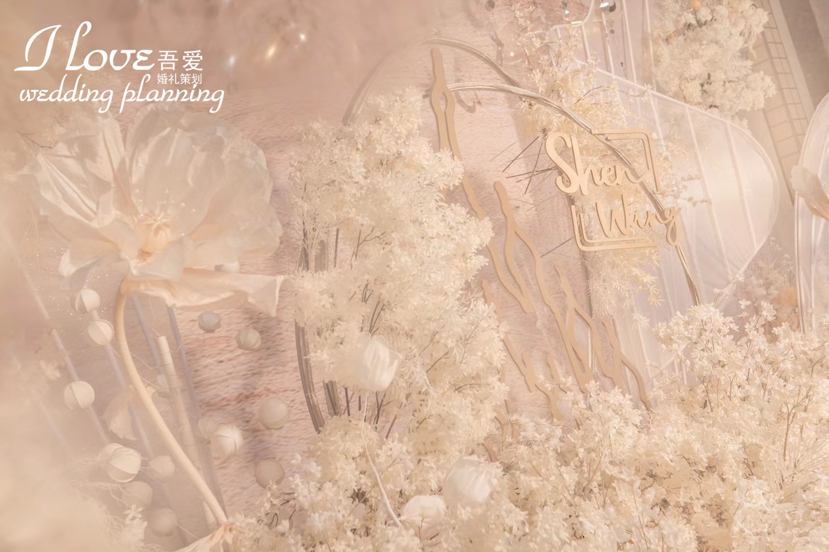 • 记忆里的香槟色,用复古花纹刻画着专属我们的校园回忆。把最有纪念的场景代入婚礼,钢琴一曲心意相通,年少时的一瞬心动,早已把你安排进全部余生。