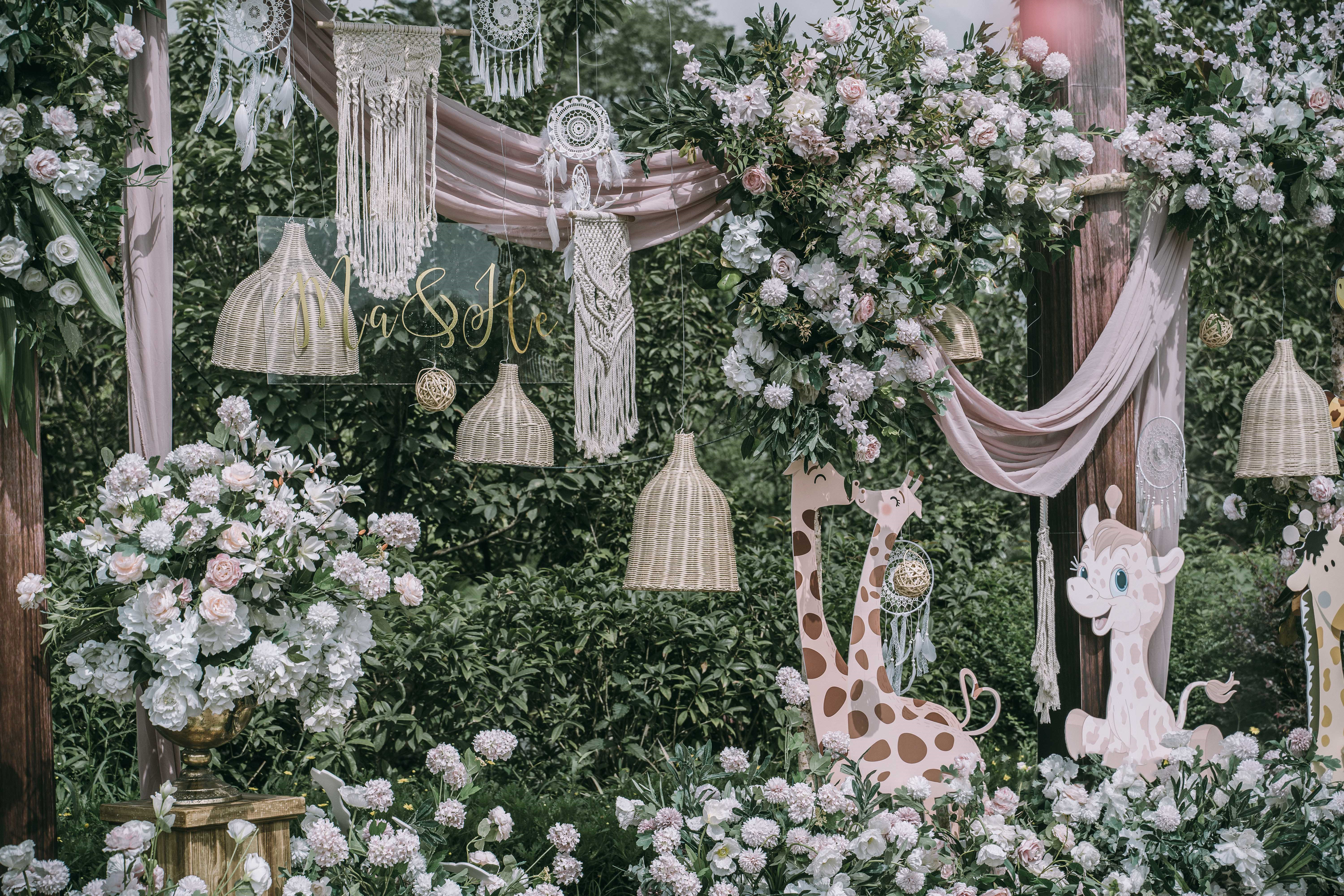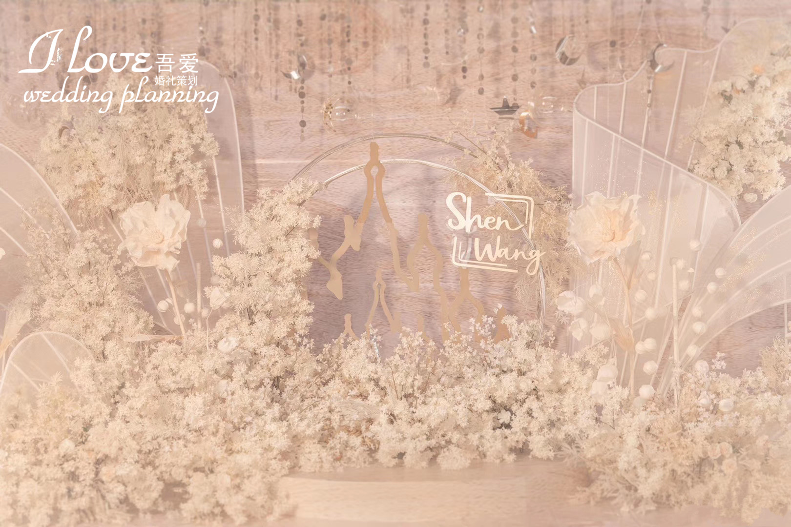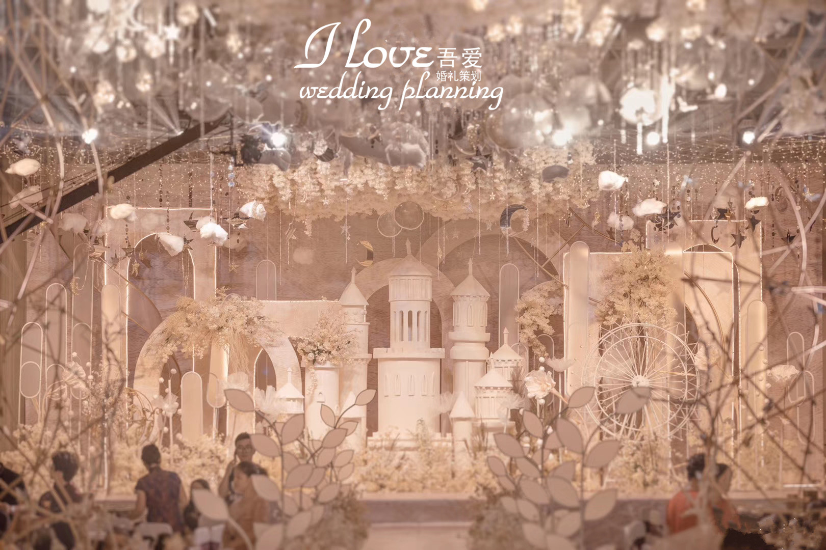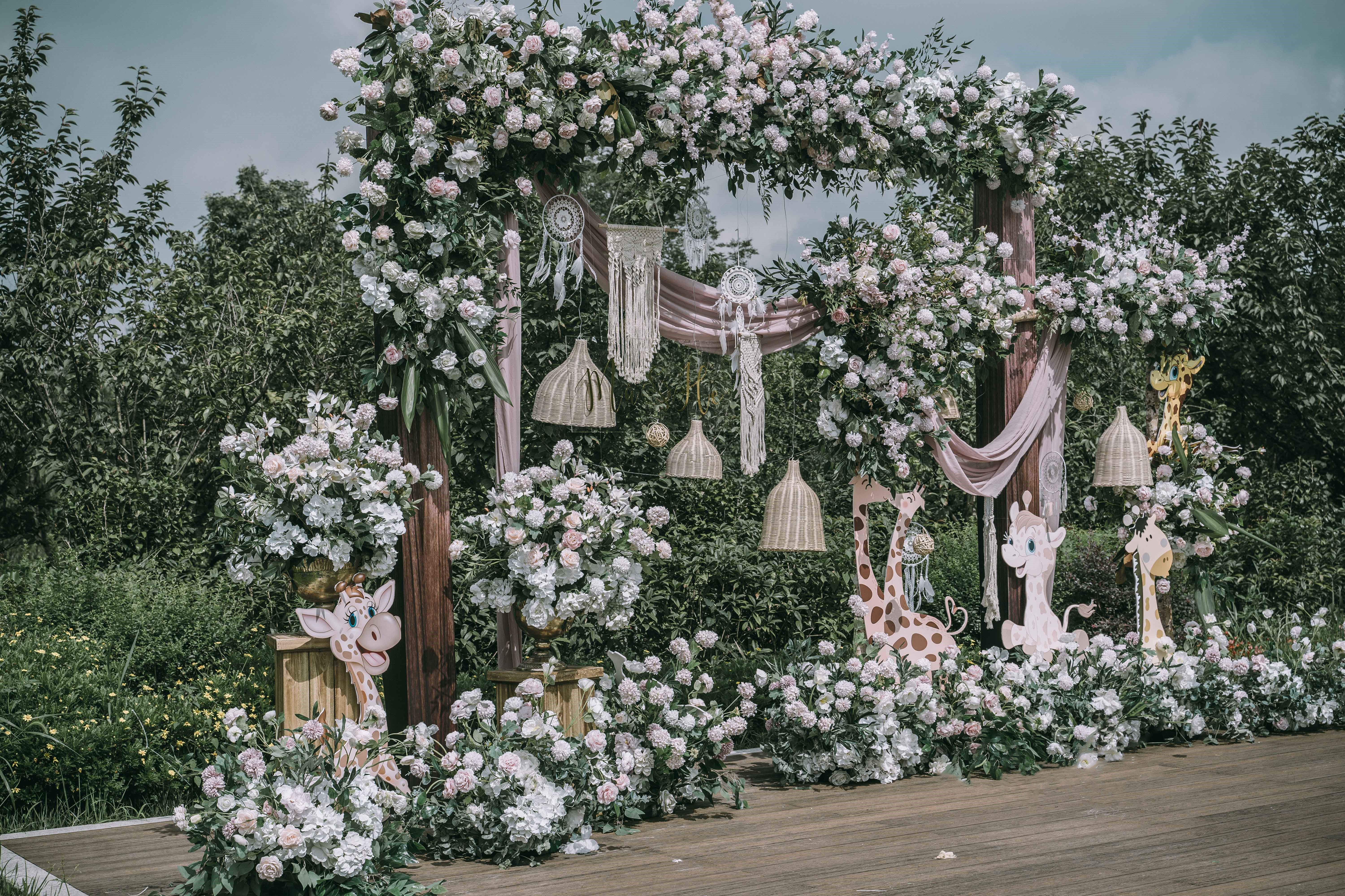 • 记忆里的香槟色,用复古花纹刻画着专属我们的校园回忆。把最有纪念的场景代入婚礼,钢琴一曲心意相通,年少时的一瞬心动,早已把你安排进全部余生。