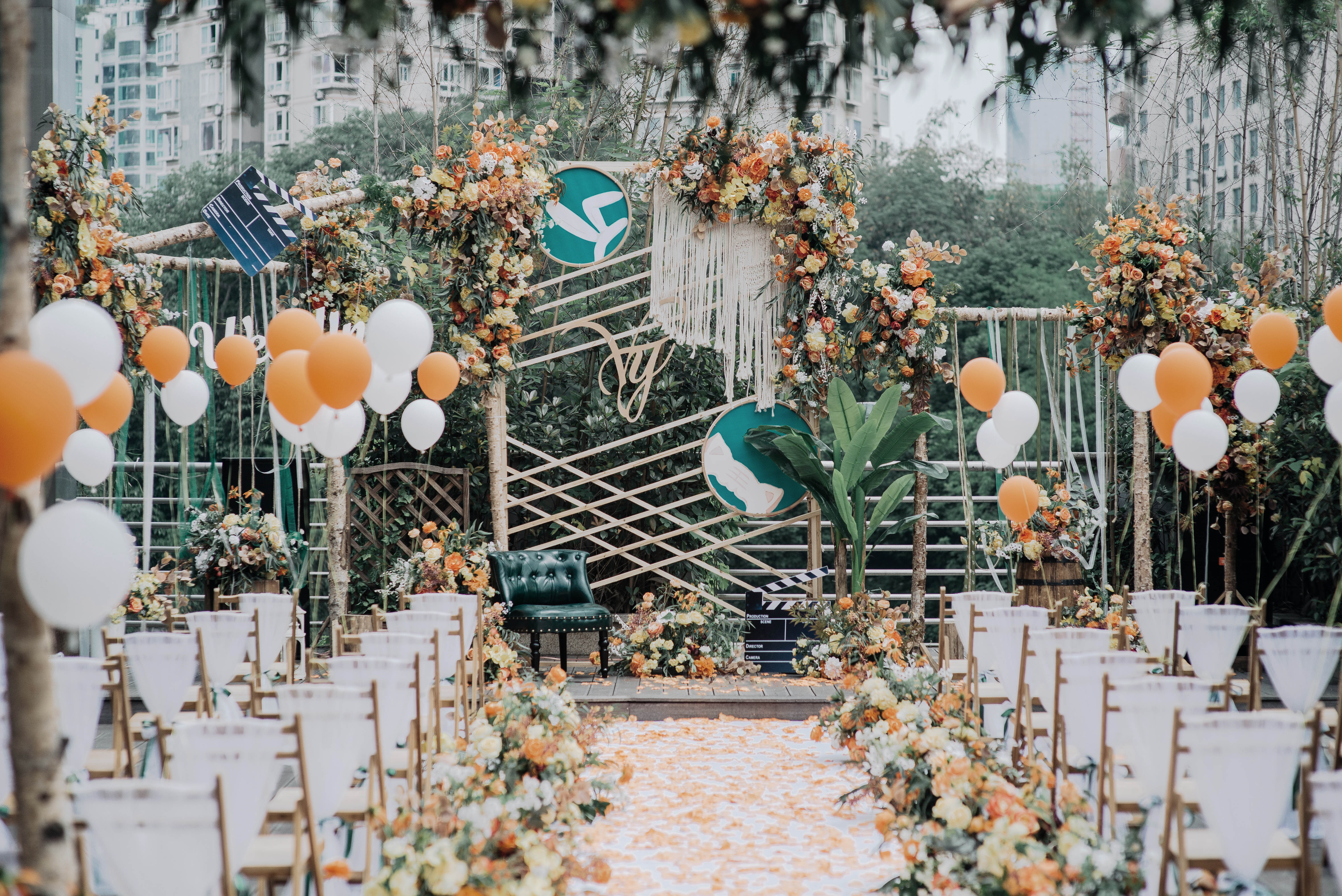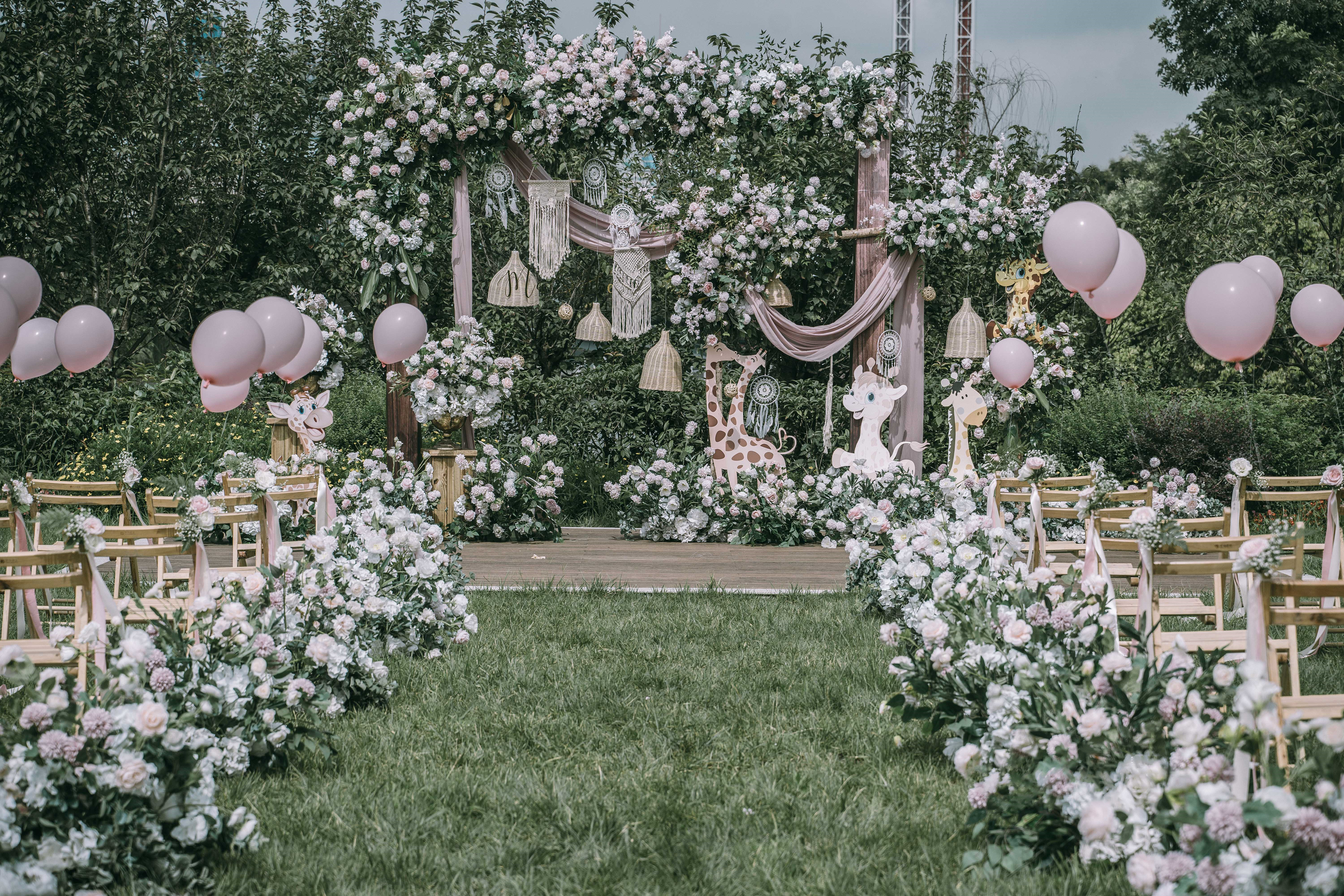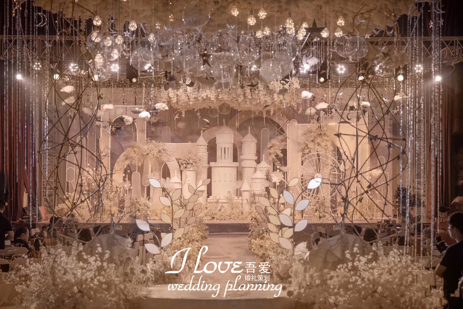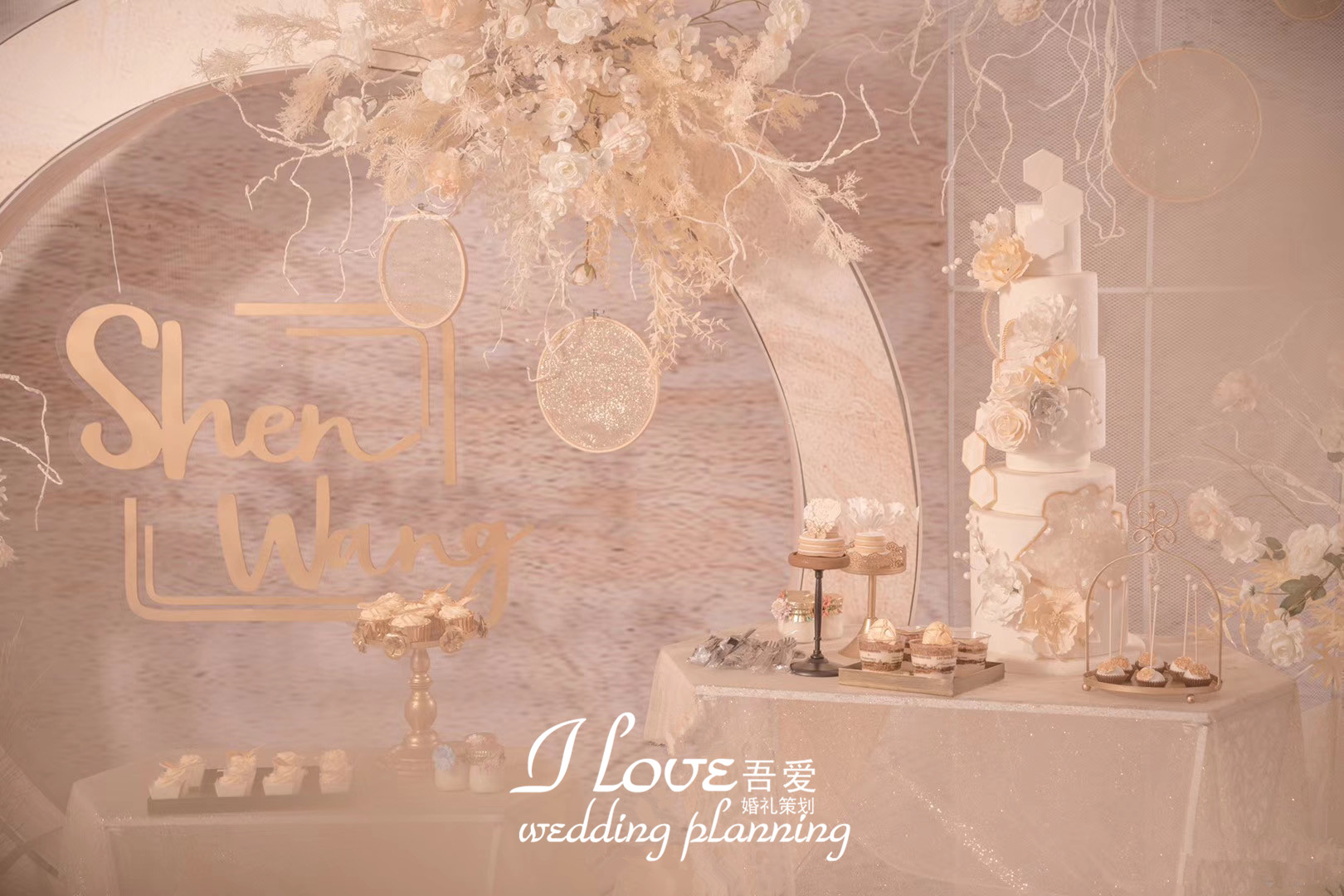 • 记忆里的香槟色,用复古花纹刻画着专属我们的校园回忆。把最有纪念的场景代入婚礼,钢琴一曲心意相通,年少时的一瞬心动,早已把你安排进全部余生。
