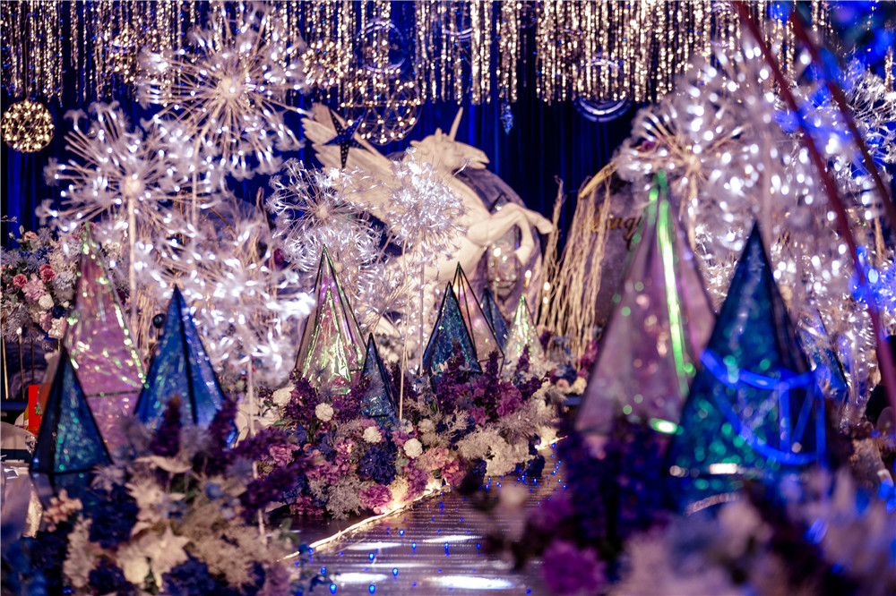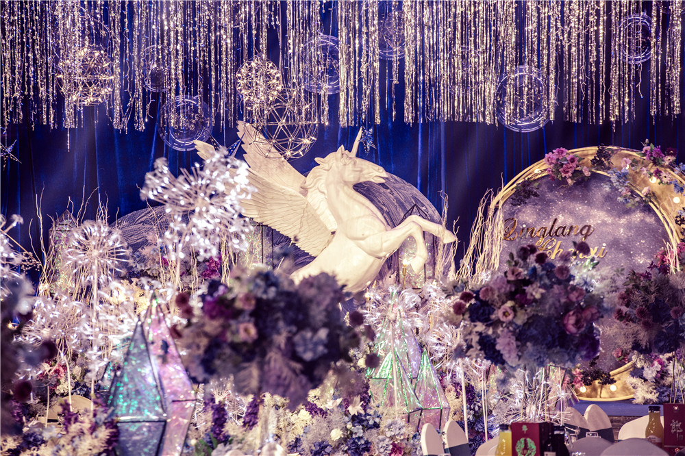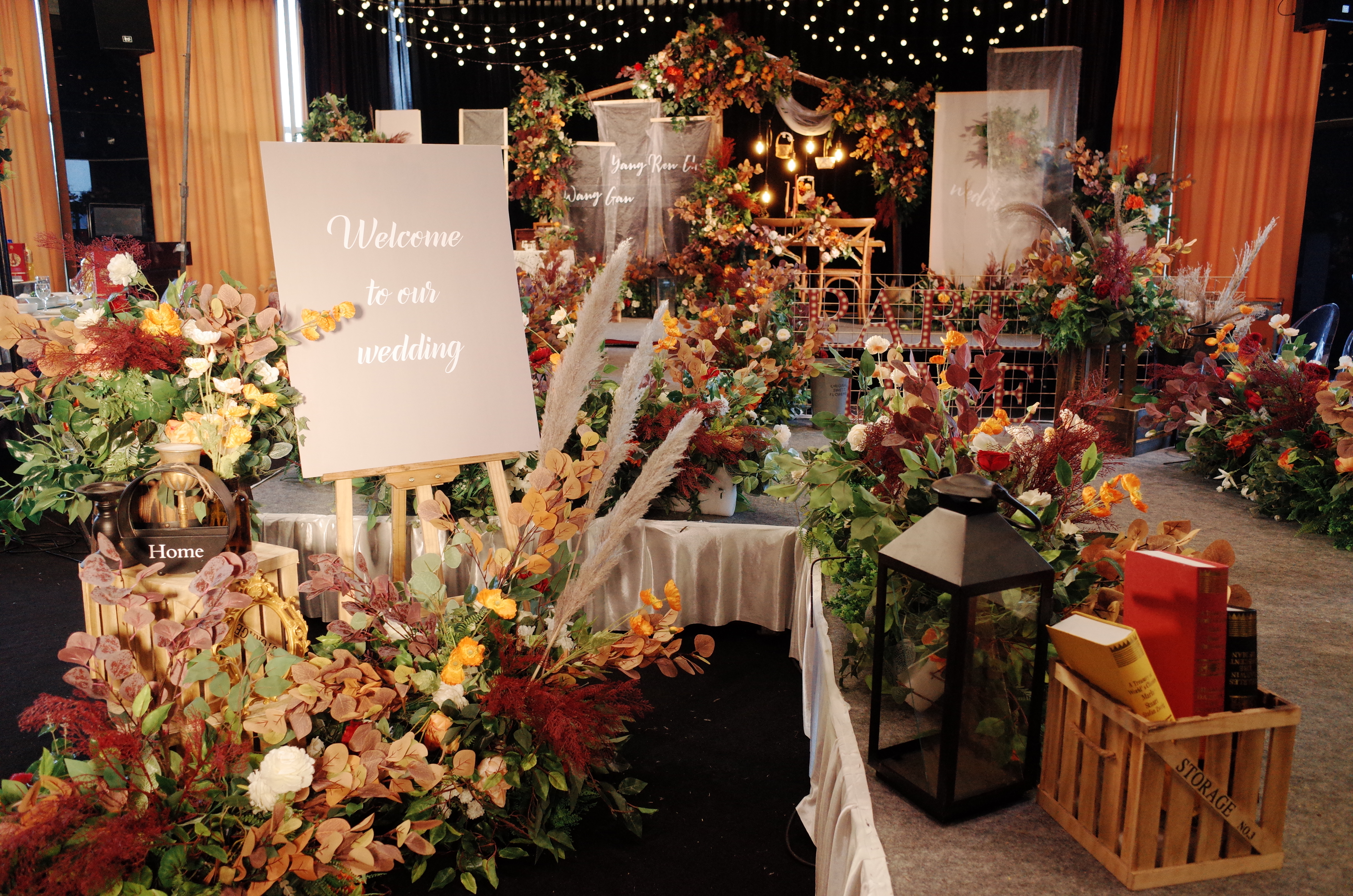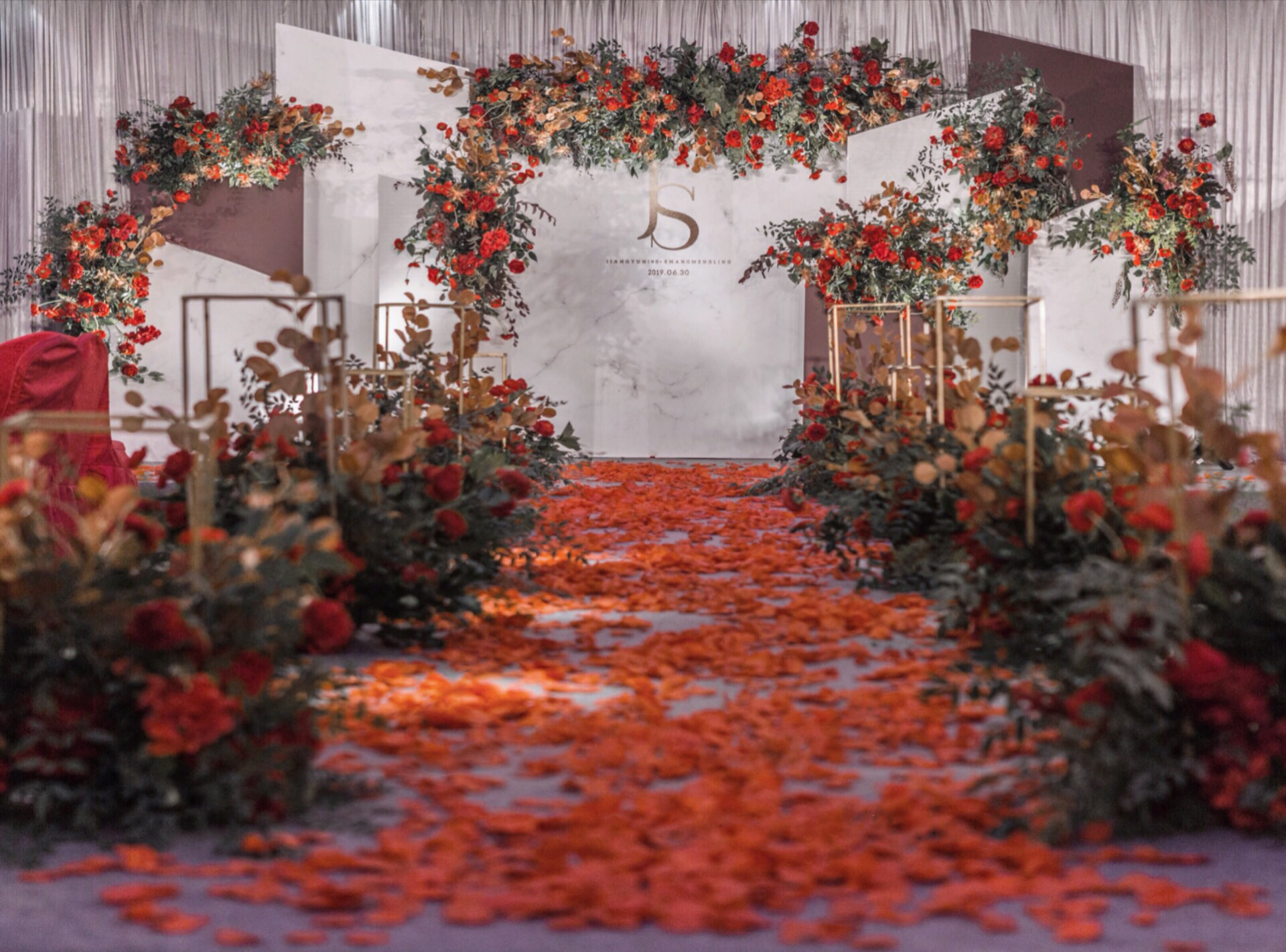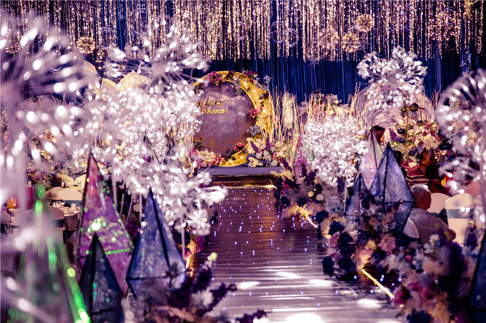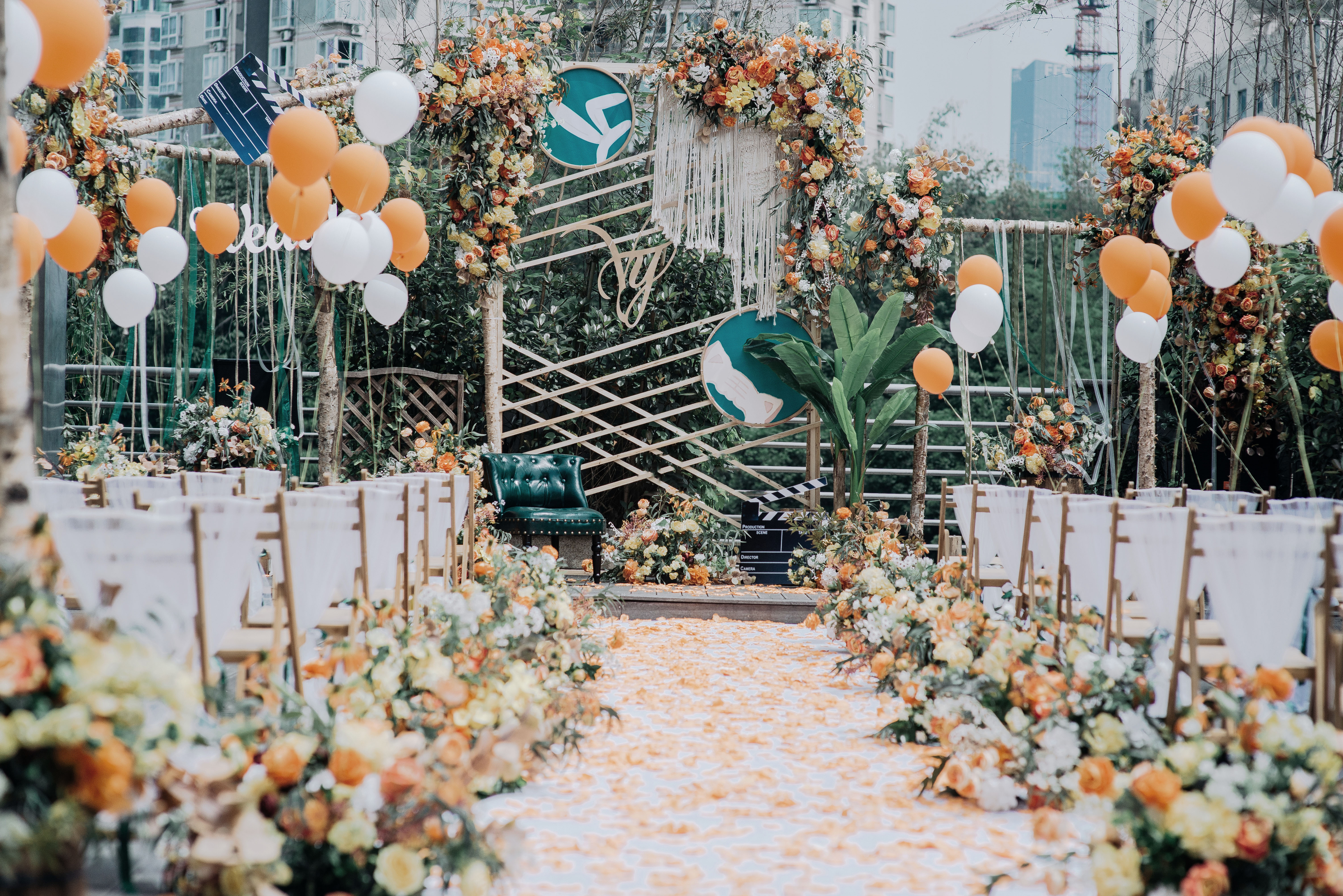 • 记忆里的香槟色,用复古花纹刻画着专属我们的校园回忆。把最有纪念的场景代入婚礼,钢琴一曲心意相通,年少时的一瞬心动,早已把你安排进全部余生。