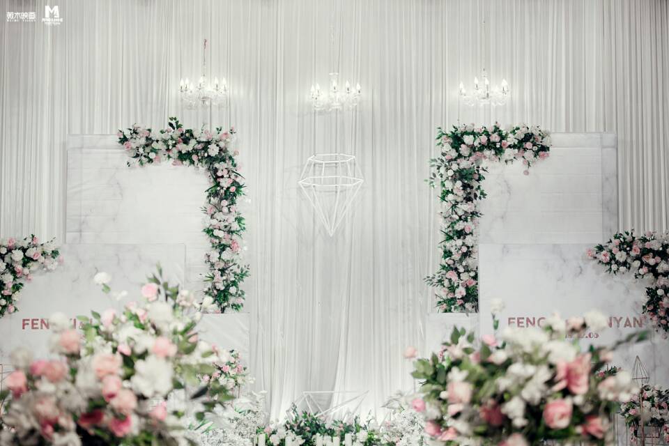 • 玛芮婚礼小妍姐~ 因为我们人不在老家,所以只能在微信沟通,谢谢你和你的团队完美地完成了我要求的每一个细节,大到桁架灯光、舞台T台,小到迎宾指示牌、手捧花用花,甚至是每一个小小的道具和摆放位置,都为我一一调整核对,精益求精,并且在搭建当天很早就来到酒店,帮我占据有利地形