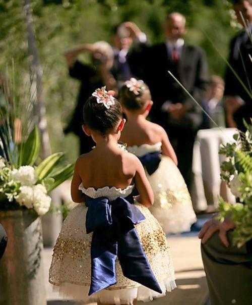 • 在西式婚礼上,花童的出场,总能引起全场的注意。花童有时跟在新娘后面,有时也会走在新娘的前面,这些都是次要,最主要的还是花童的运用。花童的出场象征着新娘少女的纯真蜕变,而她作为妻子和未来作为母亲的生活即将开始。花童,也是西方婚嫁仪式中必不可少的一员。