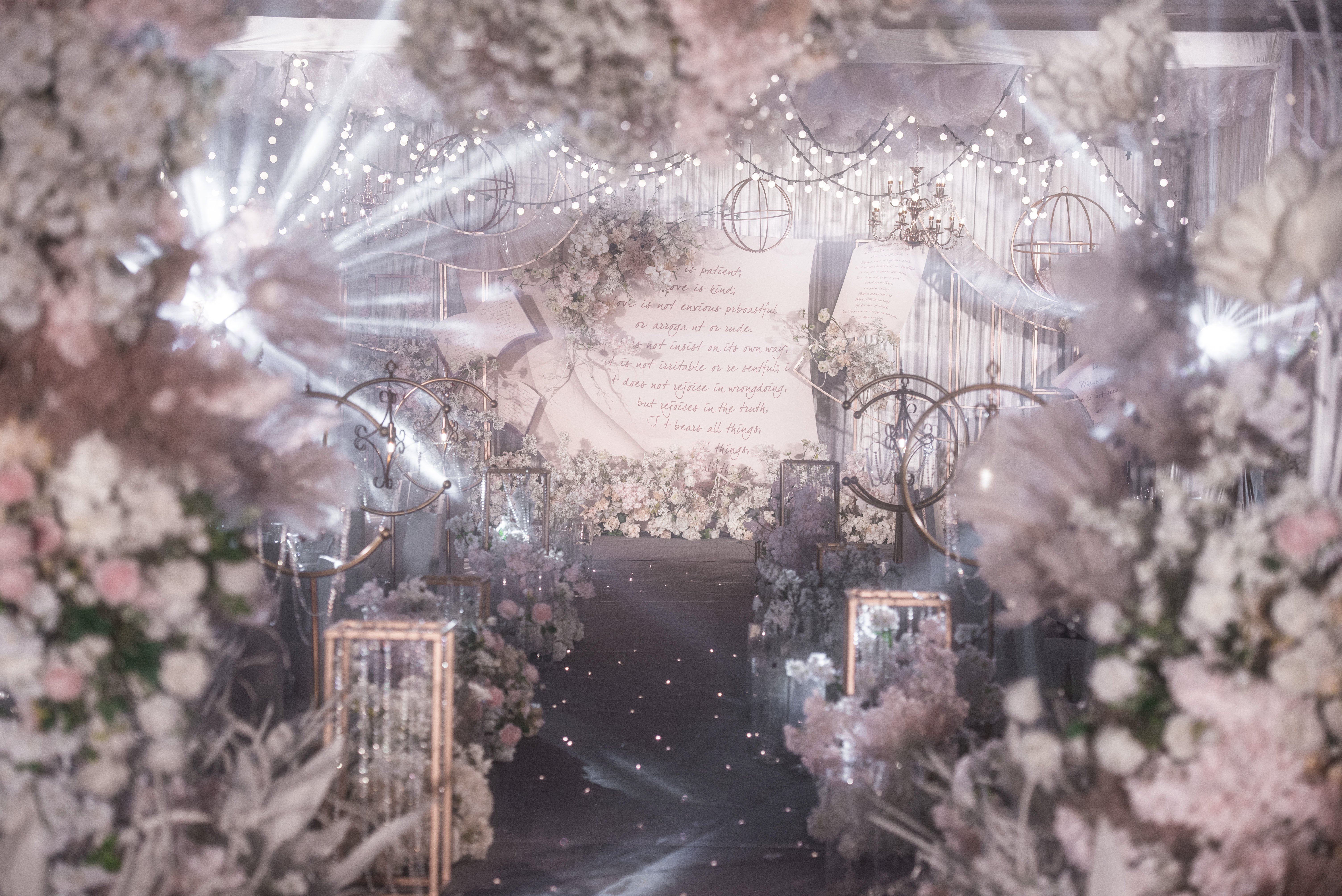 • 任岁月浮光 世事喧嚣 心中却始始终有一个关于你的童话 世界尽头 我陪你始终如一 少女心炸裂的粉色婚礼