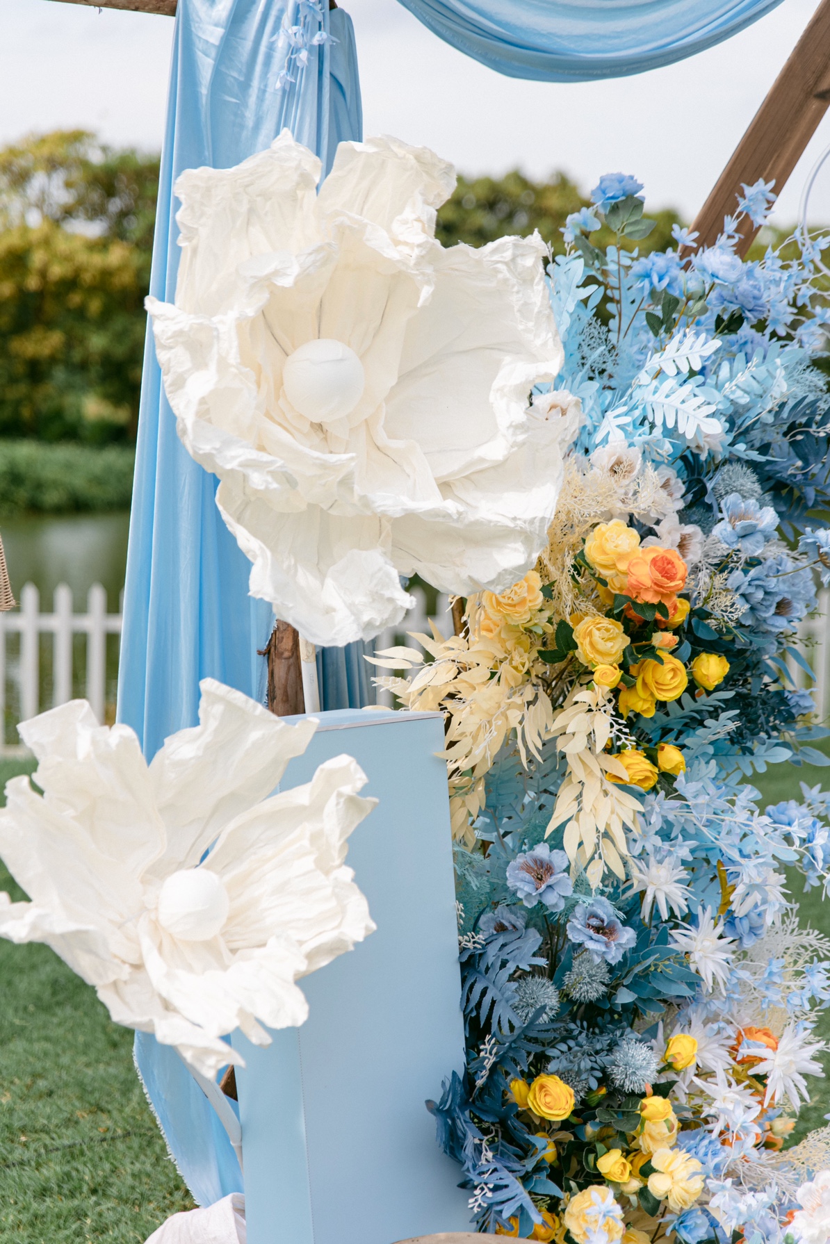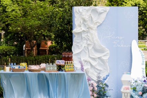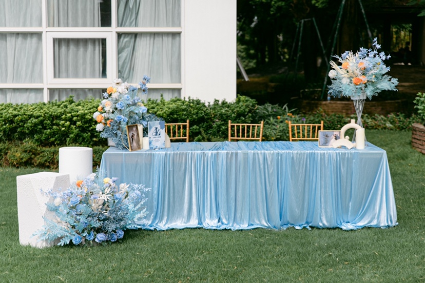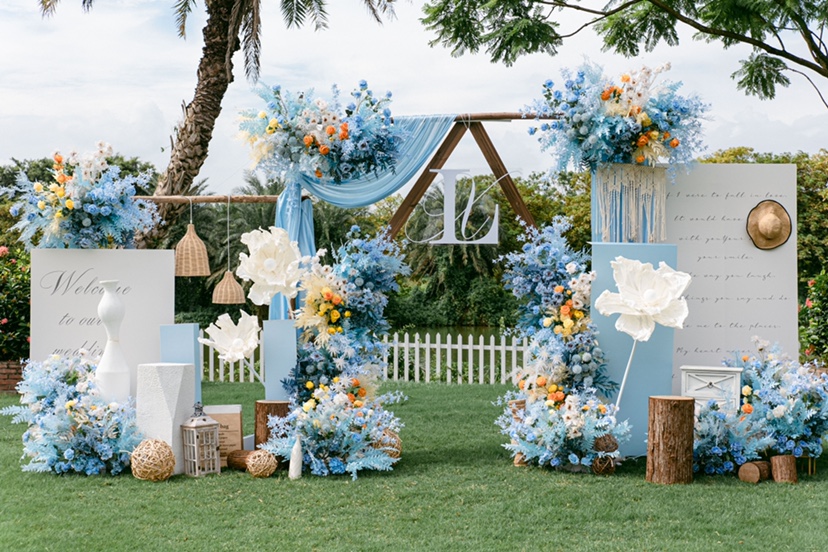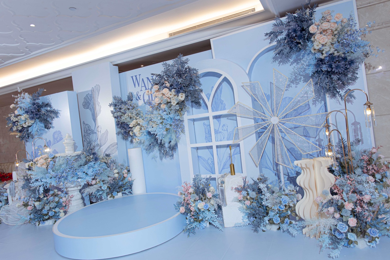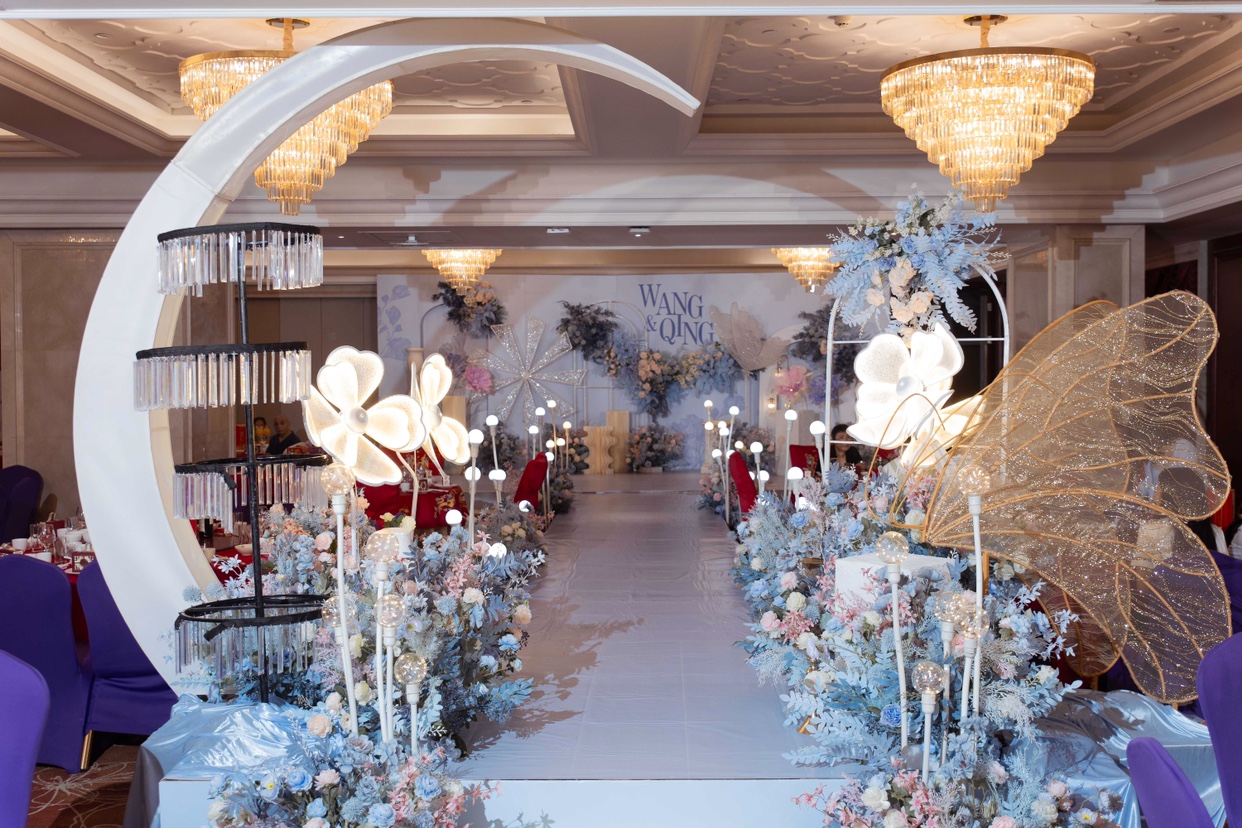• 本场婚礼以简洁的蓝色为主色调 设计上看似简约却满满的细节 多块异型镂空的KT搭配层次更加的突出 大型立体的姓氏首字母 大大提升了小众高级感! - 搭配着唯美优雅的紫色系 再增添许多精致的少女元素 整体更是梦幻又大气! - ▫️婚礼坐标:中山金上濠大酒楼 ▫️婚礼色系:蓝色+紫色
