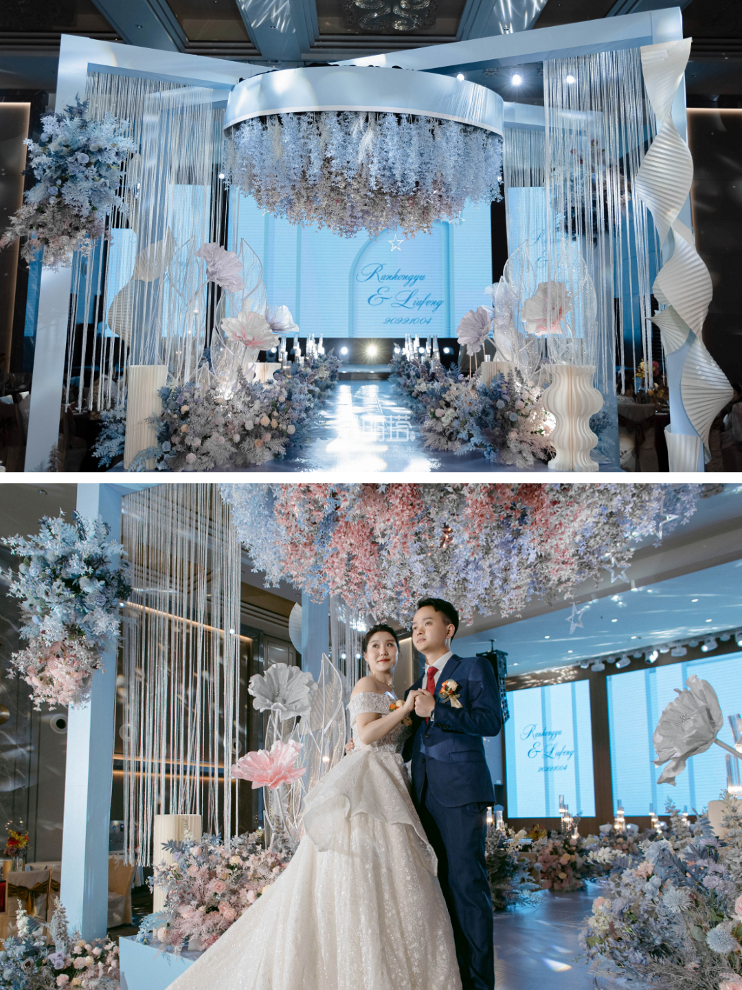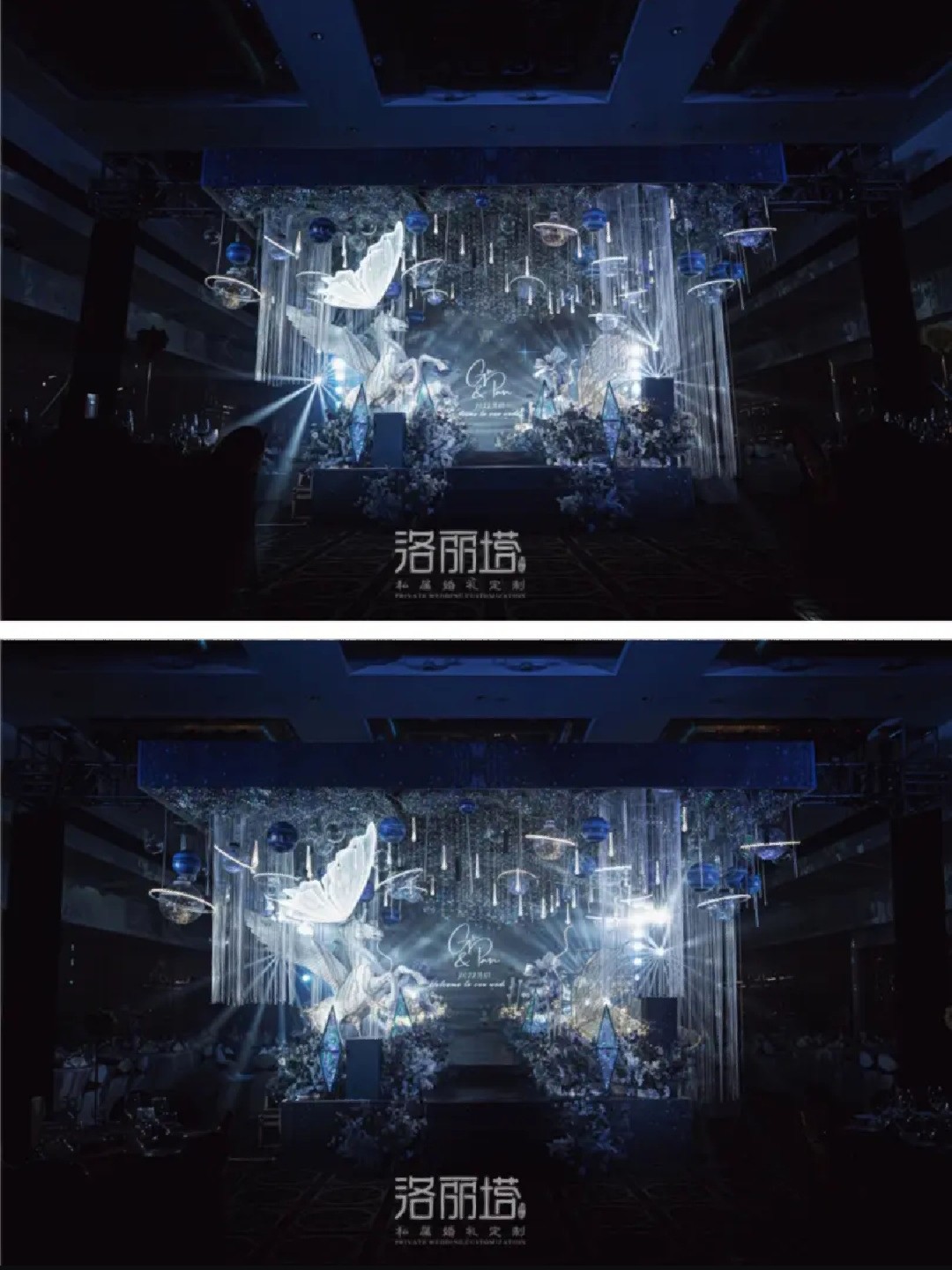 • 前期舞台的搭建,到后面呈现的效果真的很惊艳,效果和体验感都很好,真的是梦想中的婚礼了♥️