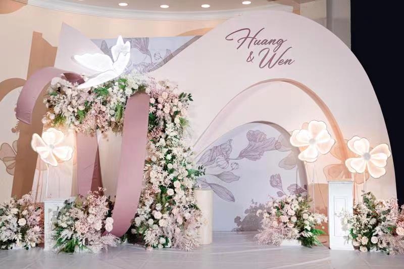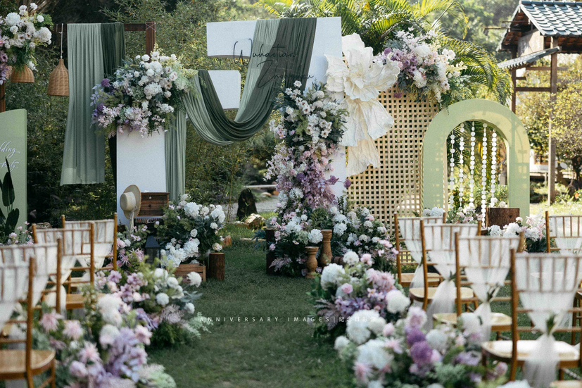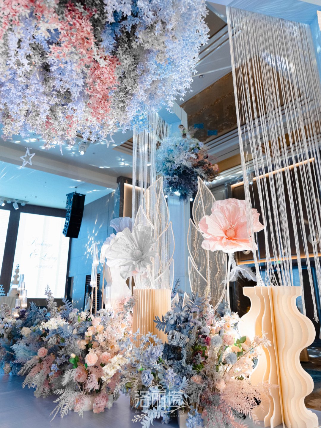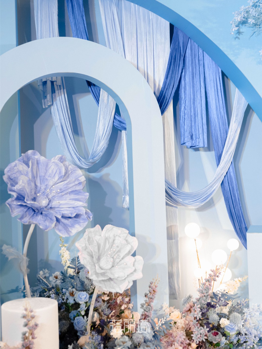 • 婚礼布置评价:整体出来的效果超满意,超好看。是想要的高级紫和雾霾蓝。平时工作比较忙,大多时间设计沟通都是通过网上,但却毫无障碍,设计的出图快,能对给出的意向图结合实际落地情况,综合考虑设计,对沟通的问题及时反馈。对于一些东西,设计也能从预算内给予可落地的建议。对于我这种连字体都要抠的客户,设计师也耐心地一次次帮忙修改,尝试更好看的效果。 超好评整体统筹这场婚礼的小姐姐,从前期设计到后期布置甚至到婚礼结束后,都超认真,超负责。前期帮忙选择最佳的婚礼场地,她能根据场地条件,和设计师合理安排每一个分区点位的布置。会帮客户考虑到场景布置的每一个细节,有条不紊地协调整个婚礼现场。能布置出这样的效果还是挺满意的