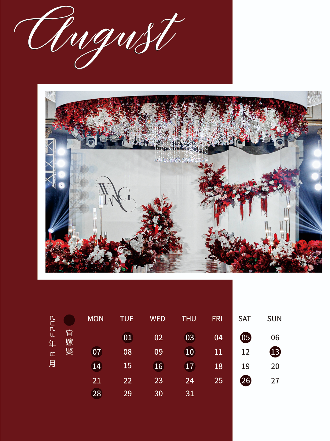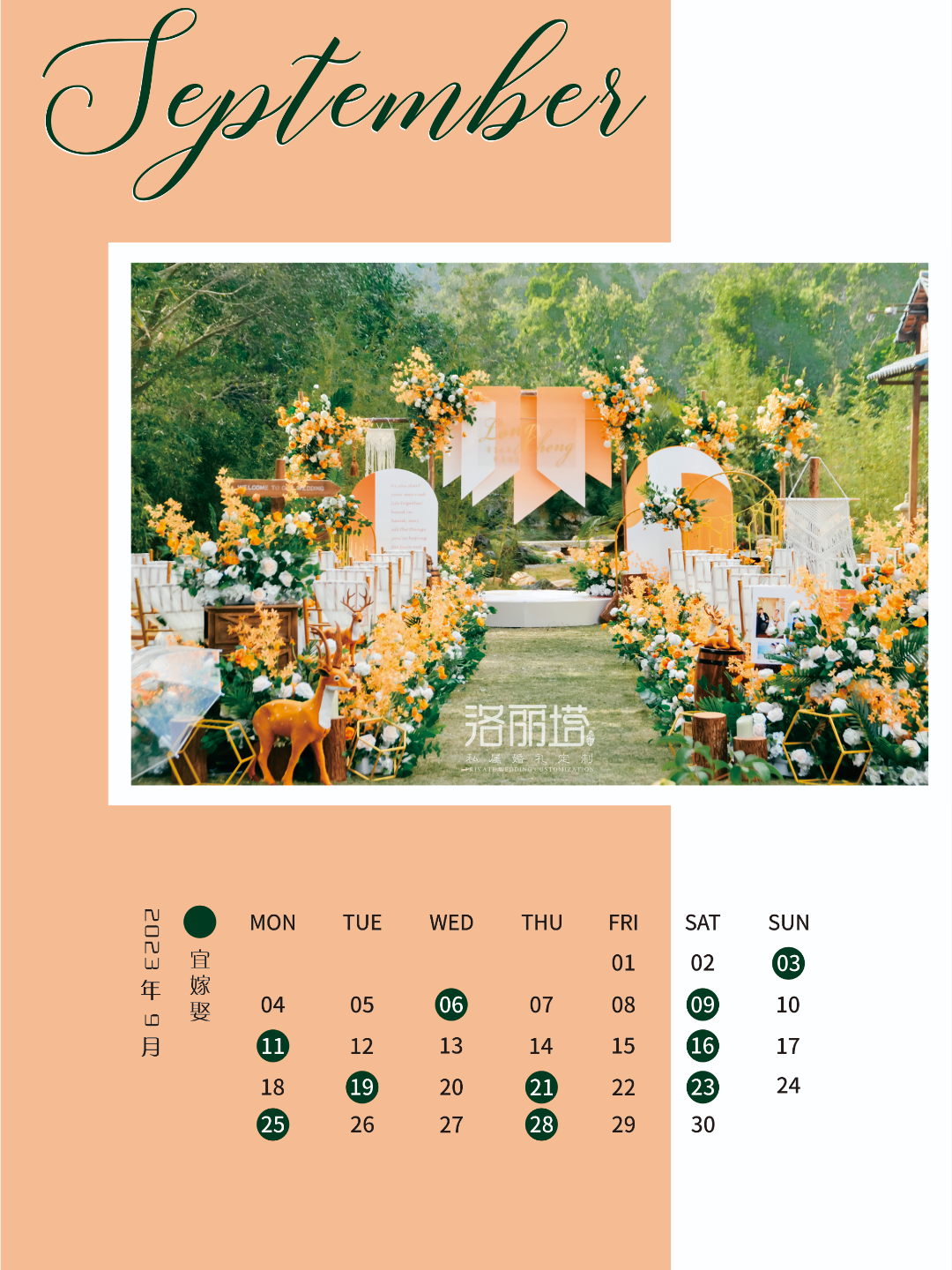 • 了解2023年的黄道吉日 提前占据婚礼档期‼️ <下半年在主页下一篇> - 📌婚期挑选小贴士: ◆根据自己想要的婚礼形式,结合气象条件确定大致的月份,尤其是户外婚礼。 ◆根据自己的婚礼预算,决定是否在国家法定假期办婚礼,因为考虑到这些假期大旺日许多会提高收费。 ◆考虑到工作及亲友时间,许多新人会选择在周末,提前调节好工作计划,做好时间预算,提前选定酒店与婚礼团队。 ◆避开新娘的生理期,毕竟结婚当天是非常累的。