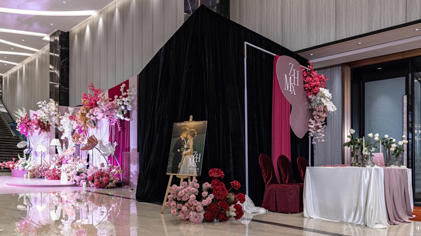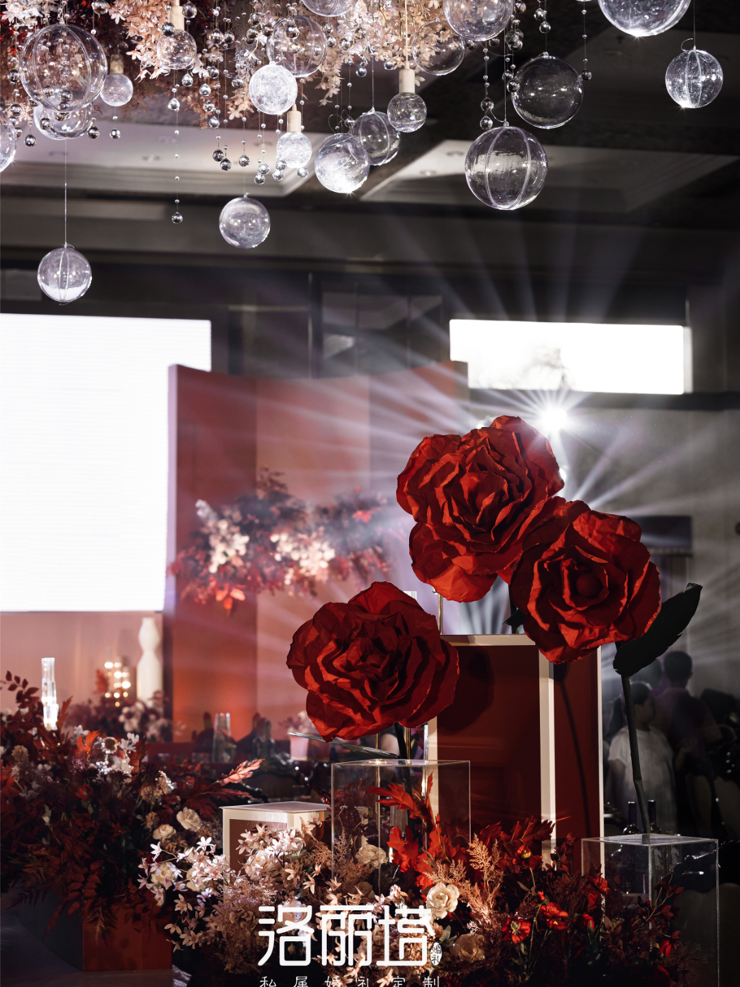 • 🥀婚礼灵感: 追求极简成了大多数人的向往 简约高级是永不过时的独 家浪漫 💫✨ 仪式区的设计融入红色炽热的调和 加入纸艺玫瑰与仿真鲜花的结合 朵朵玫瑰娇艳欲滴地盛开 典雅浪漫,令人陶醉其中! 🤍❤️ 轻盈似的水晶大吊顶, 在璀璨光影的衬托下 沉浸式感受纯粹的高级感。 - ▫️婚礼色系:豆沙红 ▫️婚礼坐标:中山东区恒心酒楼