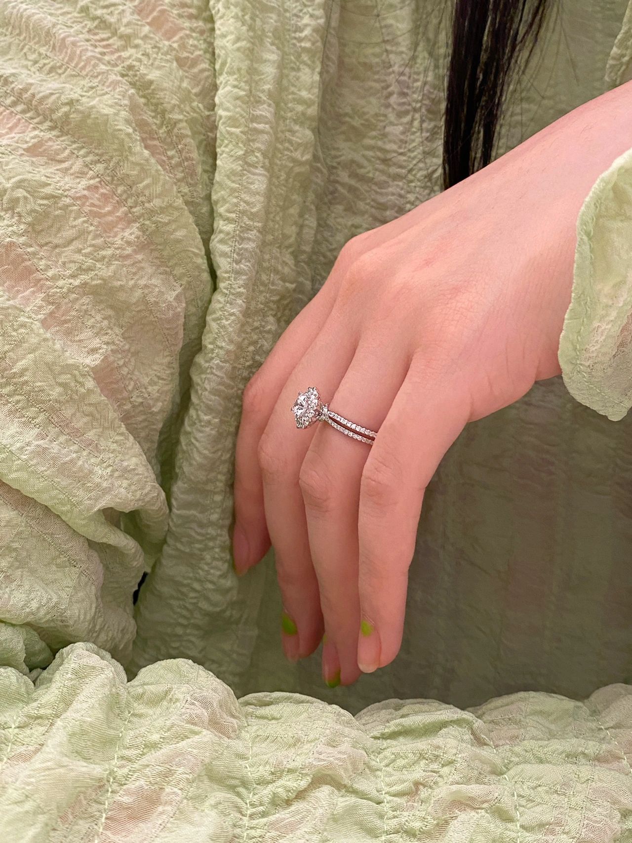 • 舞步翩翩 裙摆摇曳,一步一步向你靠近,一圈一圈贴近我的心❤️ 钻戒犹如舞动的裙摆,轻盈浪漫,像是邀请你共舞一曲爱的华尔兹💞 #结婚戒指