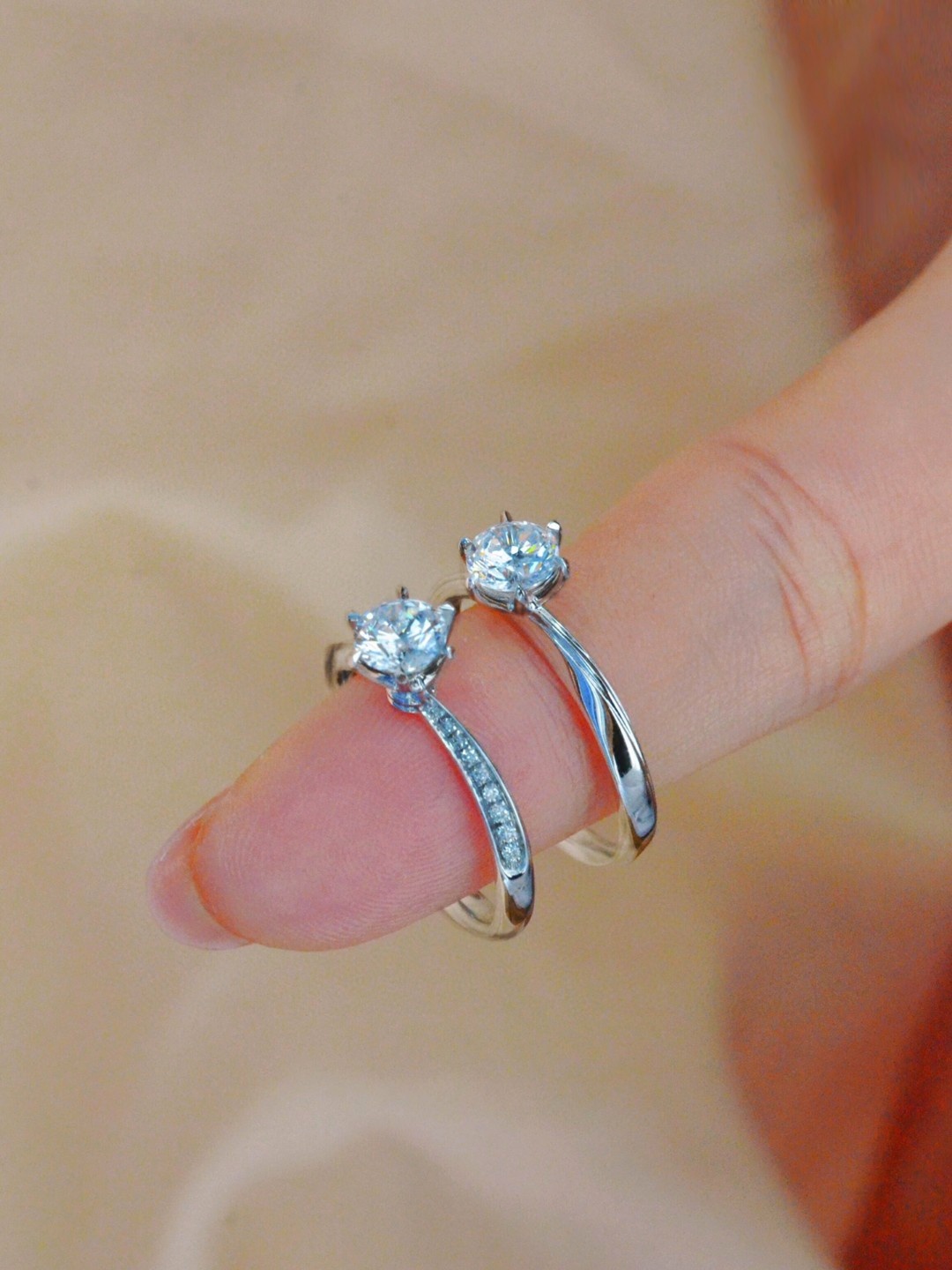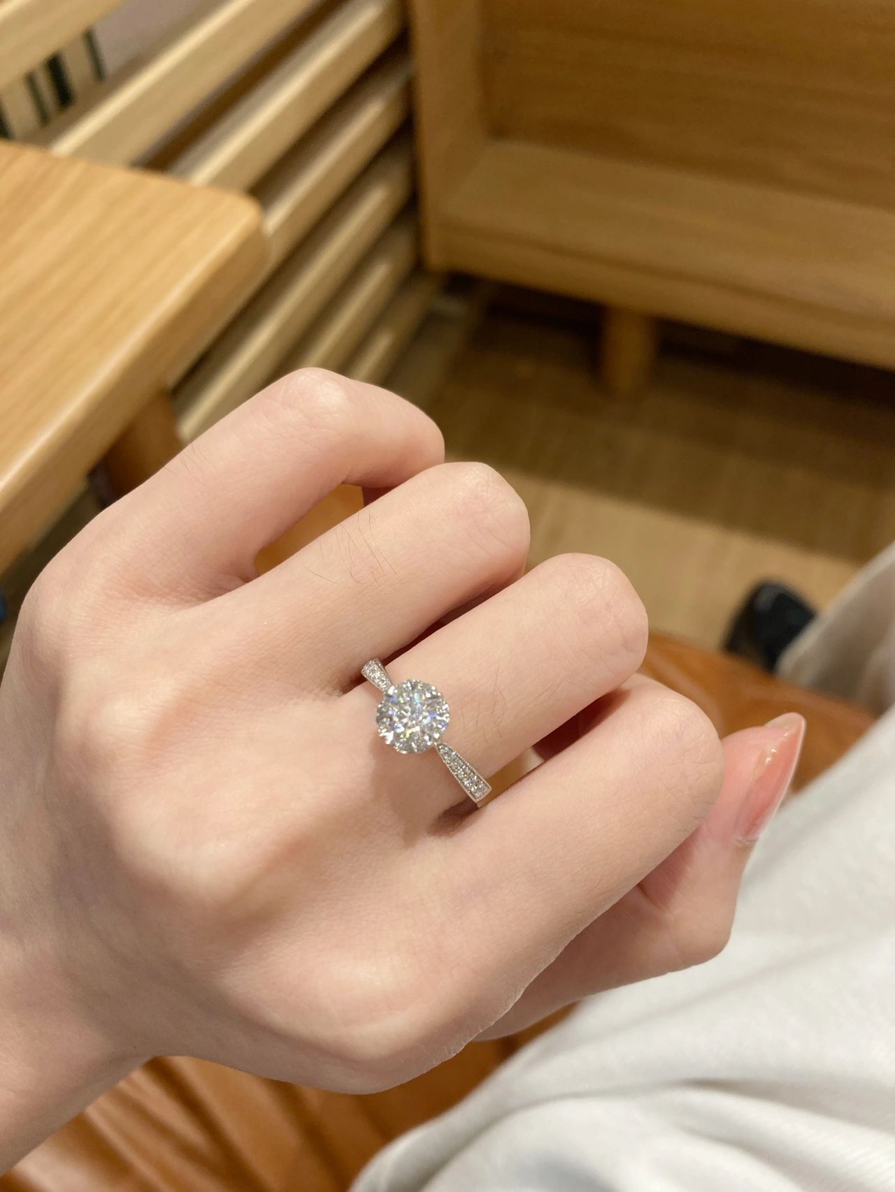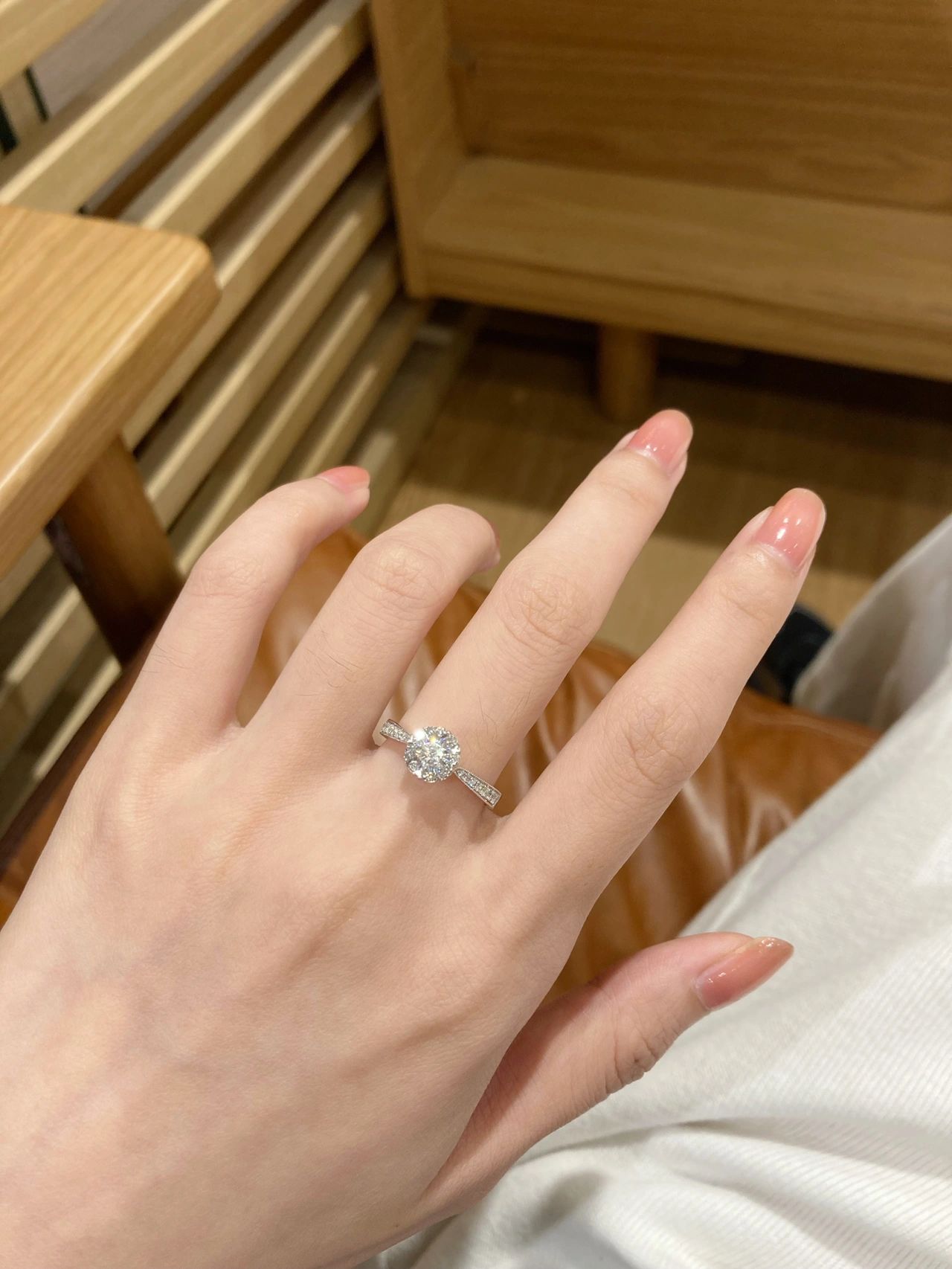 • 我买了这款钻戒,超级庆幸!一看就是网红款,太好看了!戴上手上就可以看到闪闪发光的星辰,特别清新又别致,修饰手型一绝!我也曾在婚礼纪上看到一些做仿款的,但是真的差很多,所以追求完美,最终选择了这里。真的很庆幸自己没去商场买了,而是选择了这款钻戒!