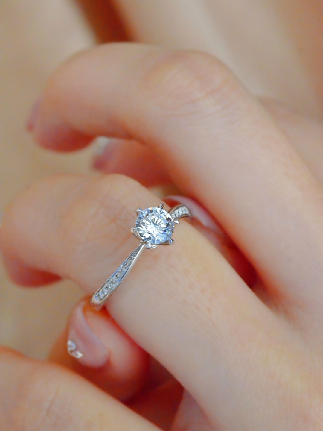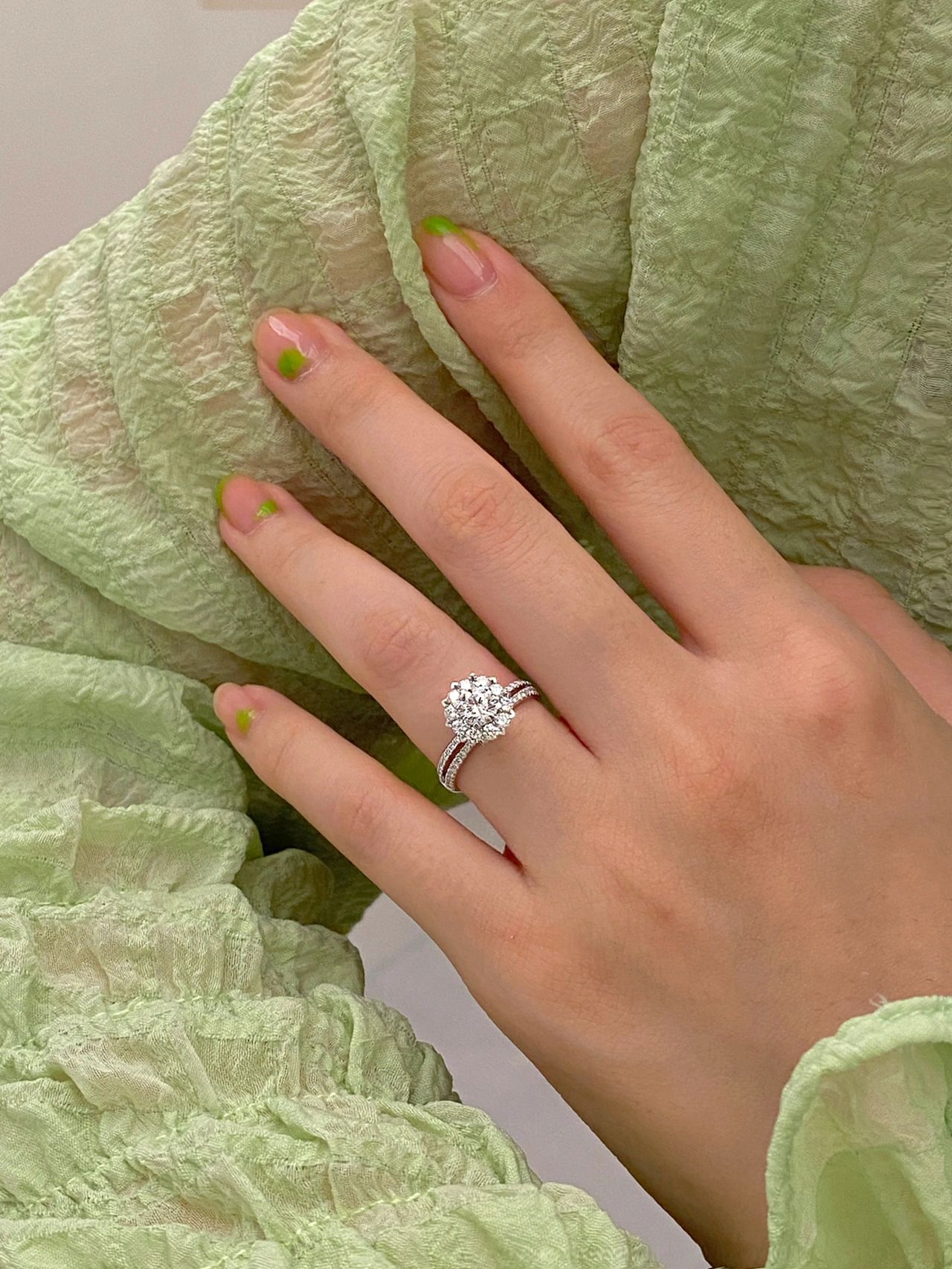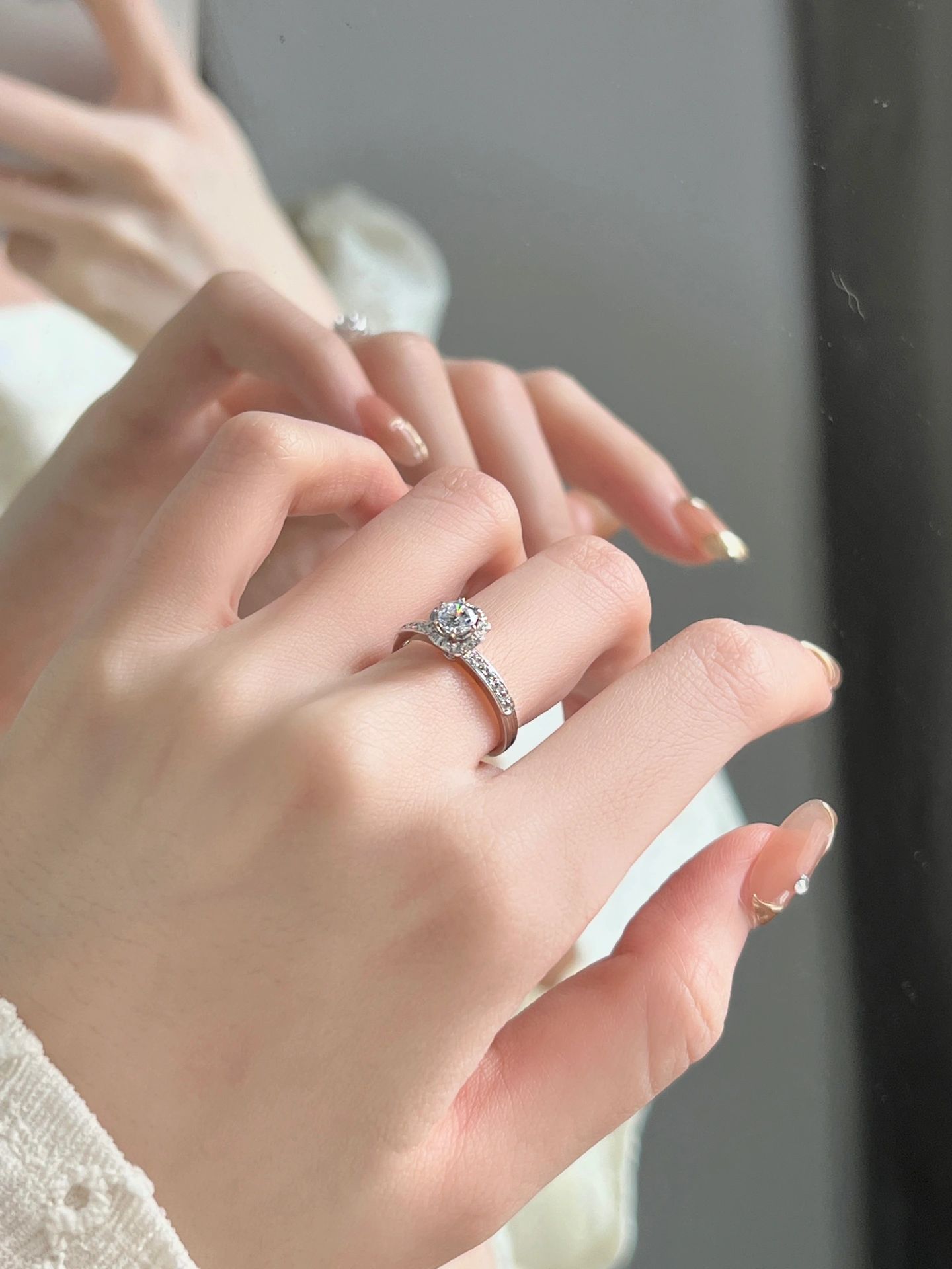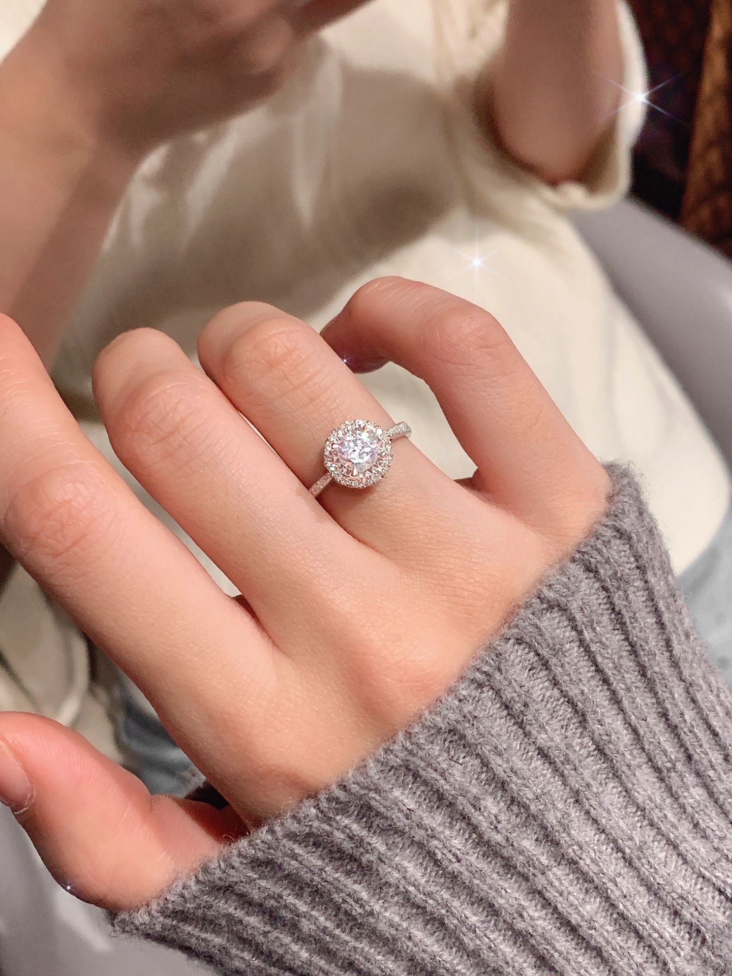 • 我买了这款钻戒,超级庆幸!一看就是网红款,太好看了!戴上手上就可以看到闪闪发光的星辰,特别清新又别致,修饰手型一绝!我也曾在婚礼纪上看到一些做仿款的,但是真的差很多,所以追求完美,最终选择了这里。真的很庆幸自己没去商场买了,而是选择了这款钻戒!
