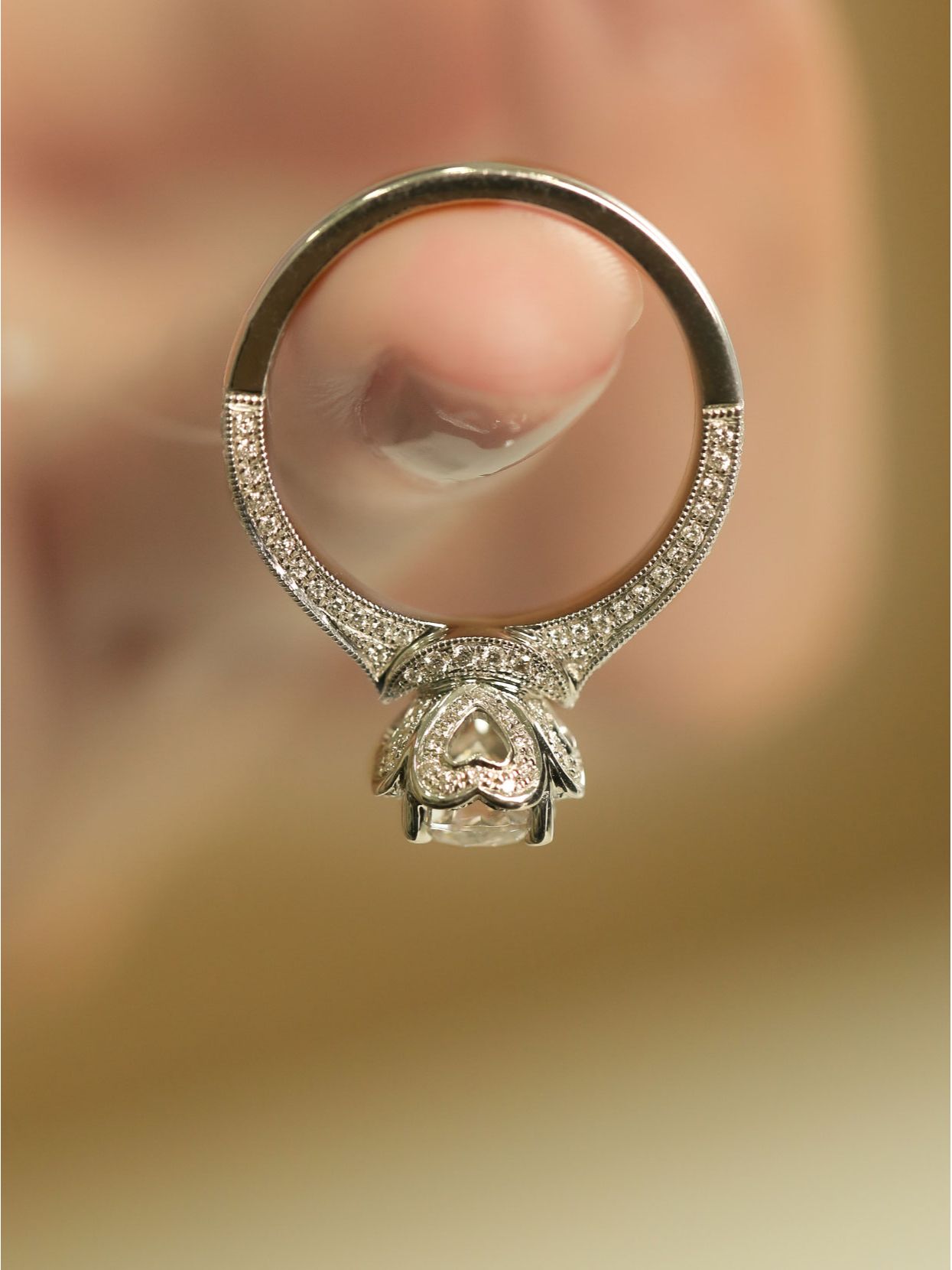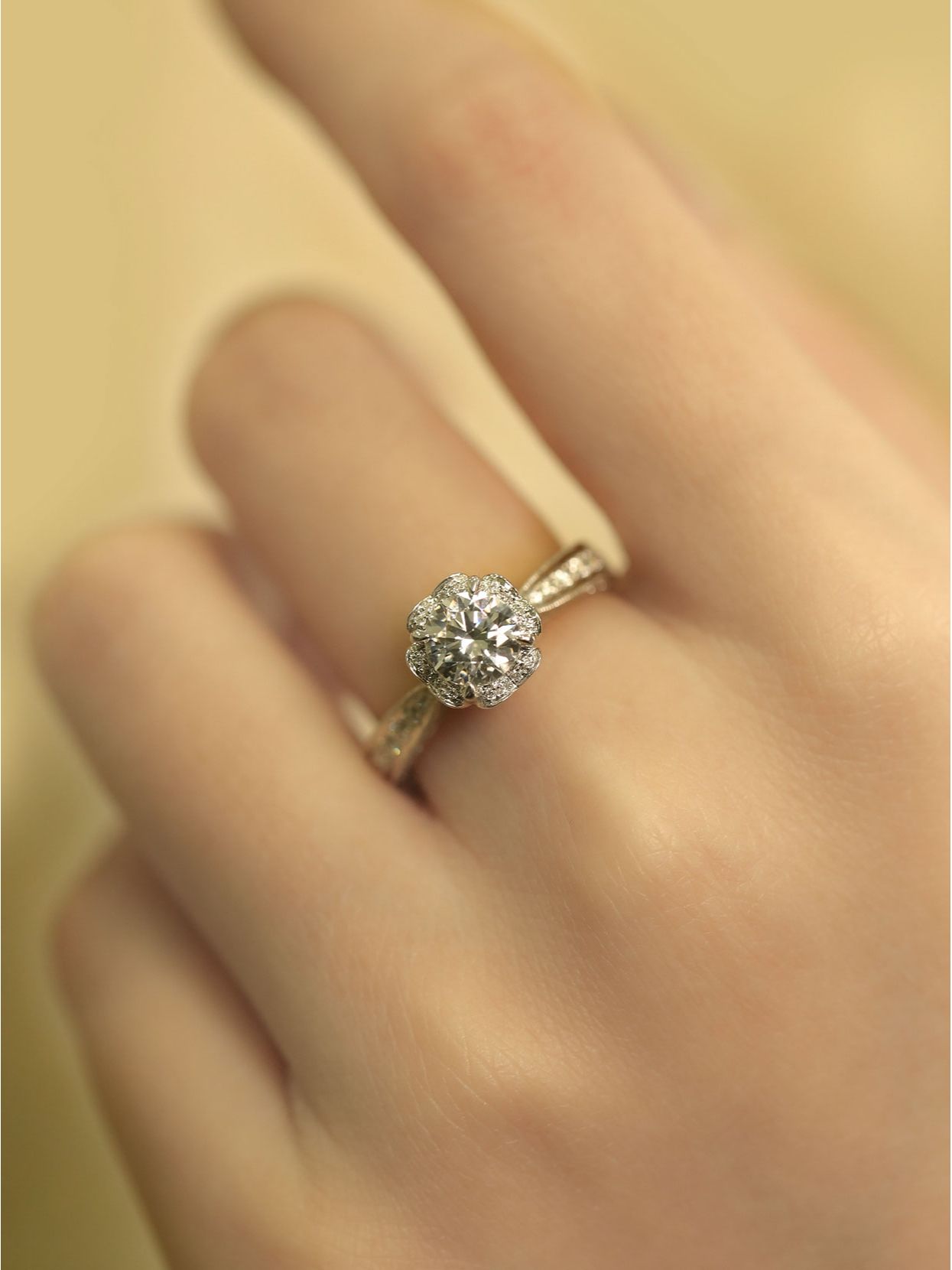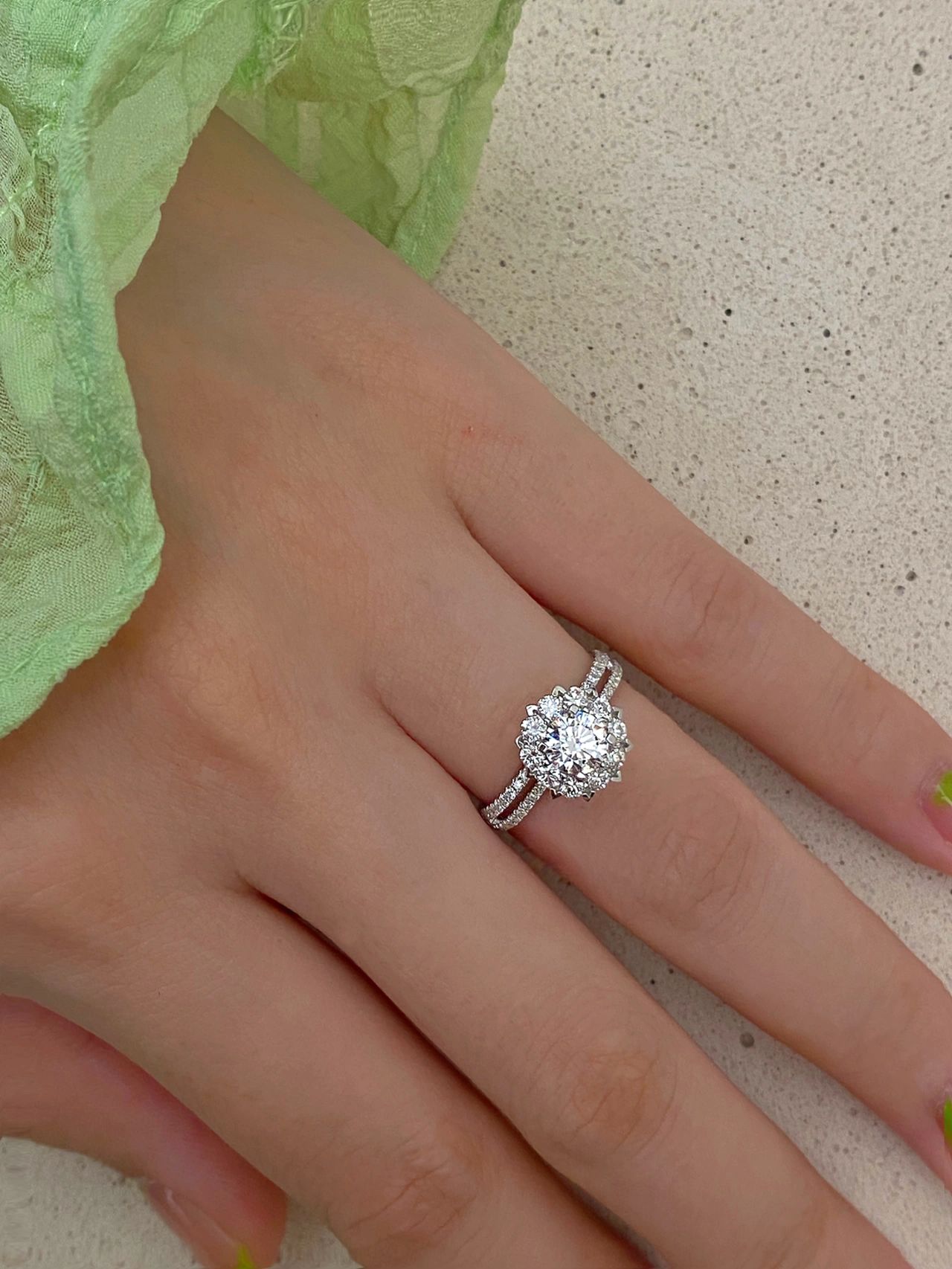 • 有没有宝宝想要钻戒显大又不复杂呢? 💍『花蕊』钻戒肯定符合要求 正面简约四爪,70分媲美1克拉效果👌🏻 🌸侧面镂空花瓣设计,细节考究 钻石折射无遮挡,火彩满满✨✨ #西安蒙迪亚培育钻石婚戒定制