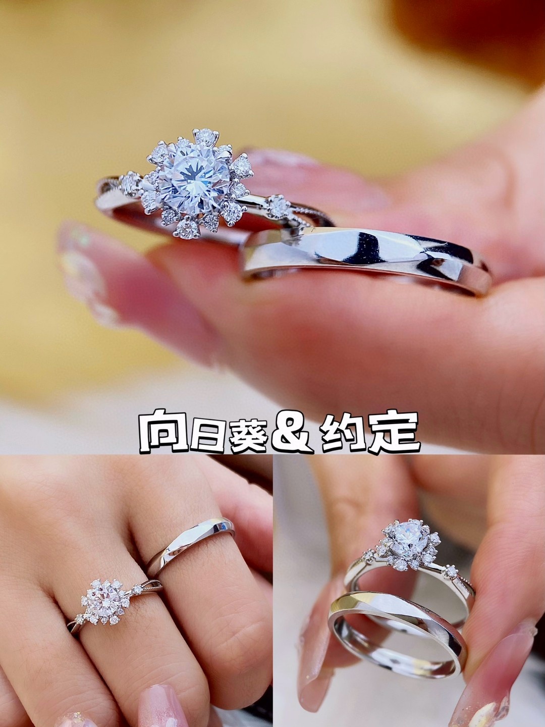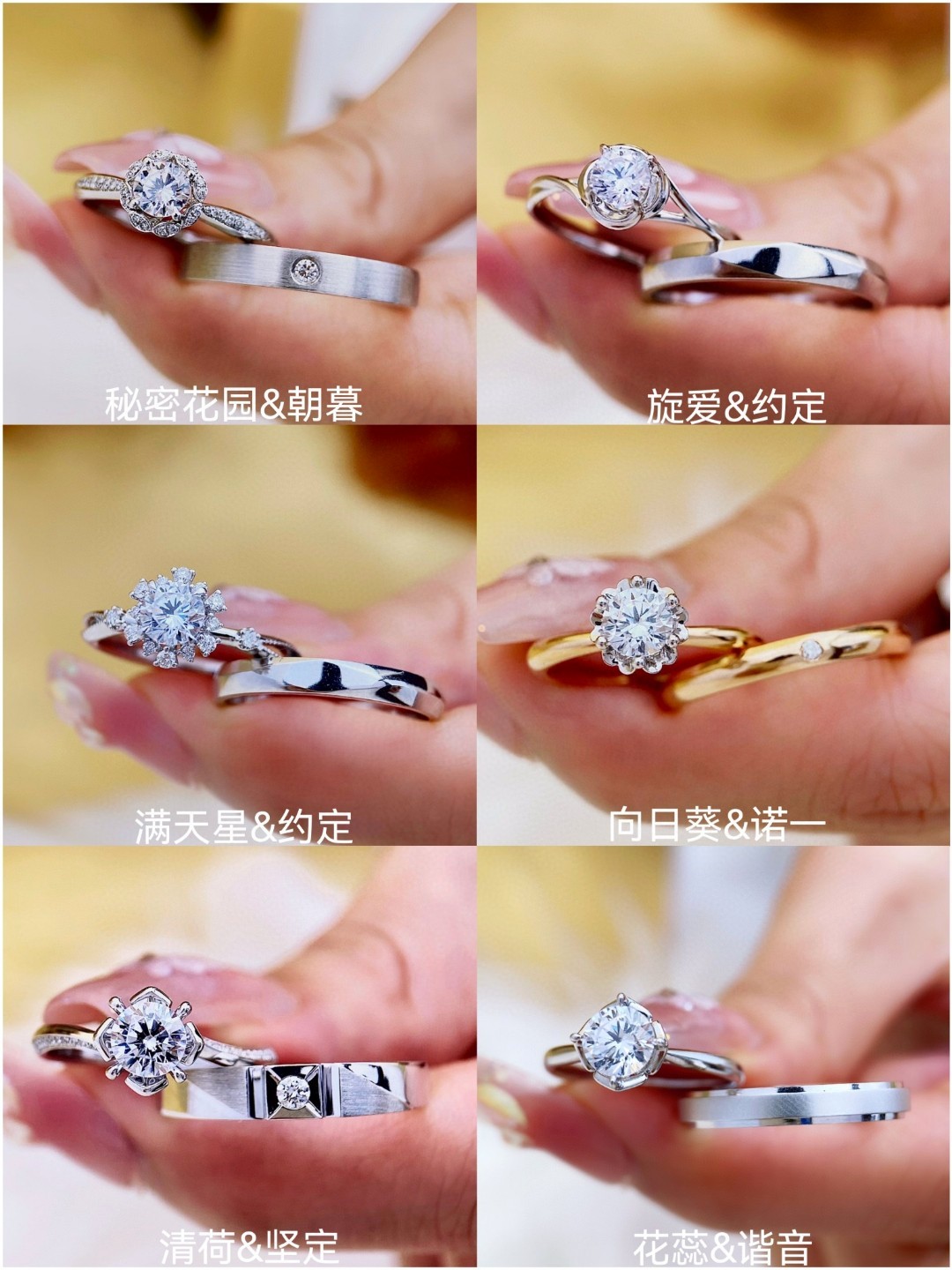 • ❤️备婚的朋友们看过来!给大家推荐6款钻戒搭配男戒,几千到1w多搞定婚戒👍🏻 1、秘密花园&朝暮 👧30分钻戒视觉效果50分,小钻编织成叶聚拢成花🌸将浪漫融入钻戒💍,赠予你的专属秘密花园 👨🏻男戒采用拉丝工艺,独钻镶嵌,低调沉稳。 2、旋爱&约定 👧双臂相拥缠绕,开出一朵璀璨的钻石花💍爱是相互的流动的,互相珍视守候才会拥有动人的爱情💞 👨男戒通过菱格线条感塑造出男性阳刚气息,简约又时尚 3、满天星&约定 👧钻石💎12颗小钻如满天星辰围绕,众星捧月,唯你闪耀💓镂空戒臂与滚珠的交织,星光小钻点缀,灵动又浪漫 4、向日葵&诺一 ♀做一朵之属于你的向日葵🌻面朝你,心纳阳光。简约表达出炙热❤️‍🔥简约之上,颜值并重,寓意非凡! ♂素圈单钻,简洁与舒适感兼备 5、清荷&坚定 ♀钻戒如盛放的荷花,花蕊紧扣住钻石,如爱的呵护也似爱的新生;💍恰到好处的扭臂,小钻点缀,精致加分。 ♂男戒正面盾牌式镶嵌钻石,拉丝与亮面的几何交错,层次分明,时尚感提升🆙 6、花蕊&谐音『花蕊』 ♀四爪钻戒,70分媲美1克拉效果👌🏻侧面镂空花瓣设计,细节考究🌸 ♂男戒『谐音』光面与喷砂工艺相结合,层次分明简洁大方 喜欢哪一对评论区告诉我哦 #结婚钻戒怎么选