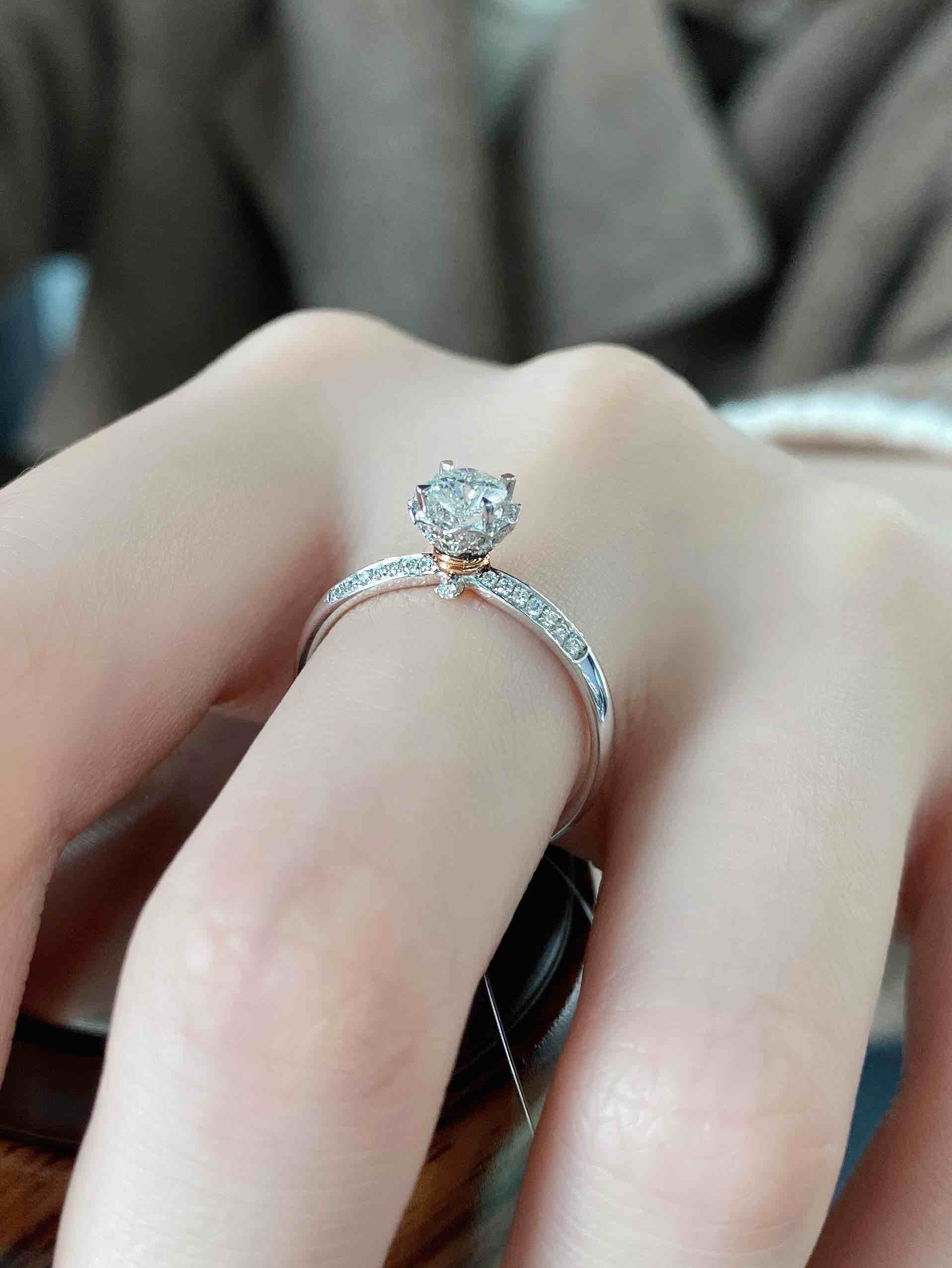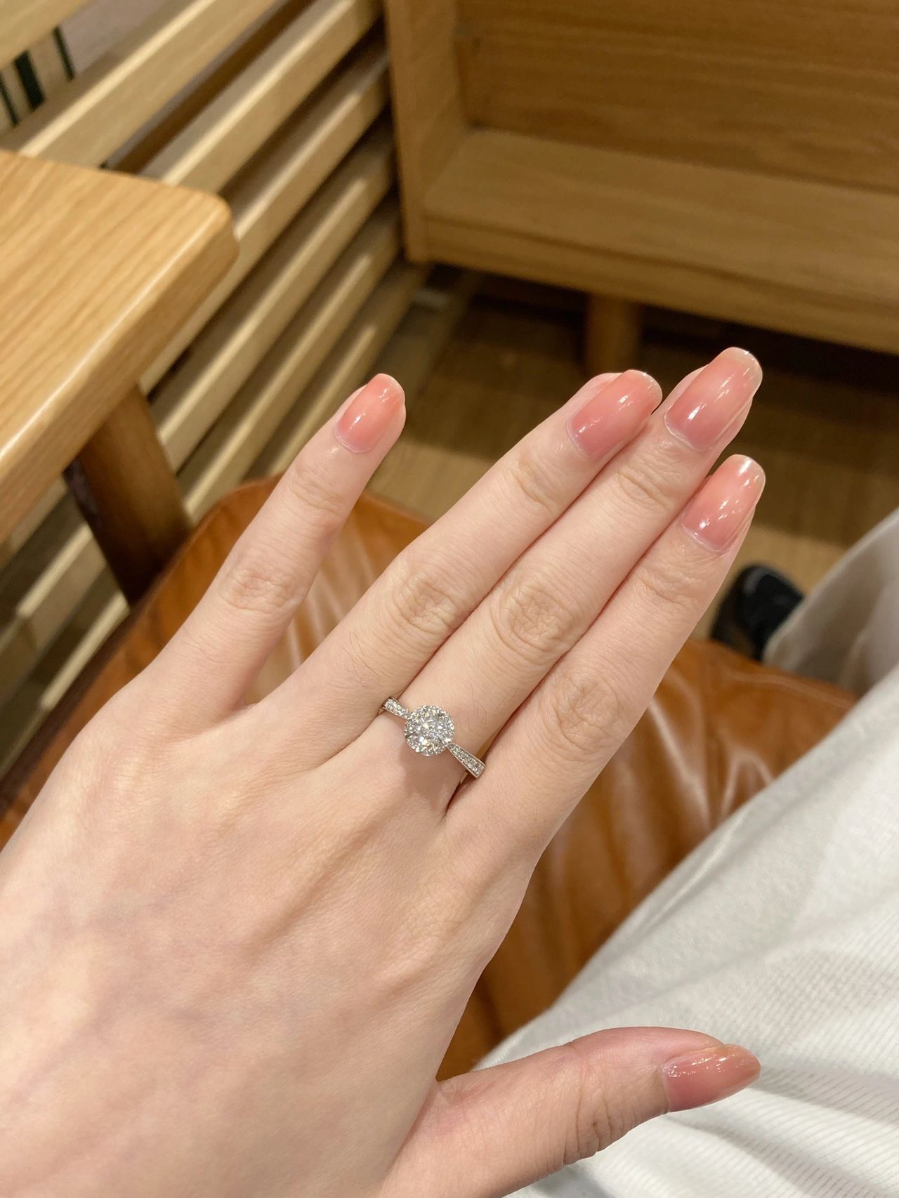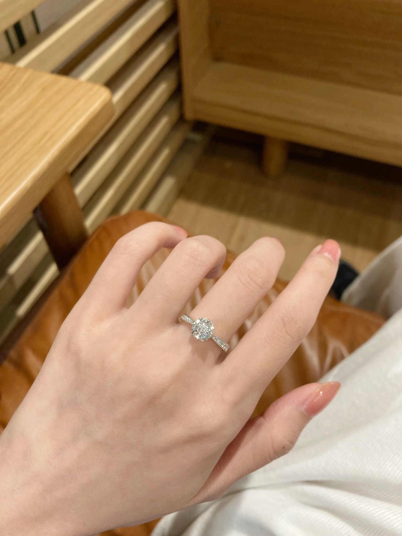 • 我和老公本来只是去看看,没想到一下子就看上了这款钻戒。门市的小姐姐也很细心的给我们介绍,说话温柔,还特别细心的让我们试戴每一款钻戒,让我们对可选择的范围有个全面的了解。因为我们有预算,所以小姐姐特别推荐了一款适合我们的款,而且我们也挺喜欢的。最终,我们选择了这款钻戒,一条项链,以及老公的一个戒指。