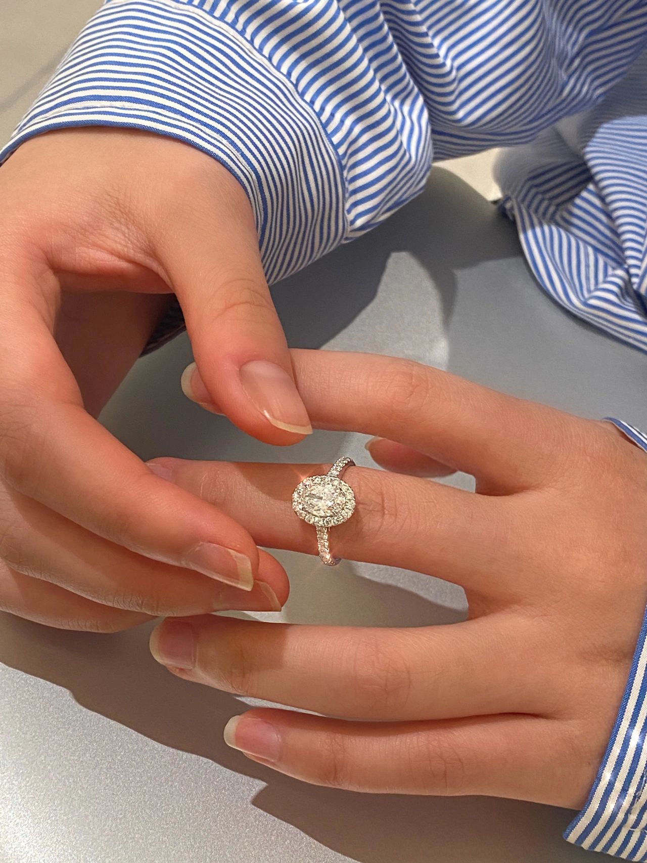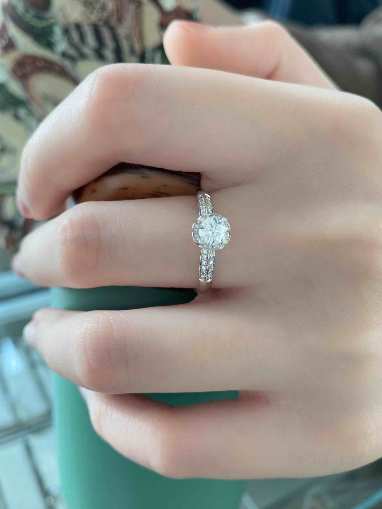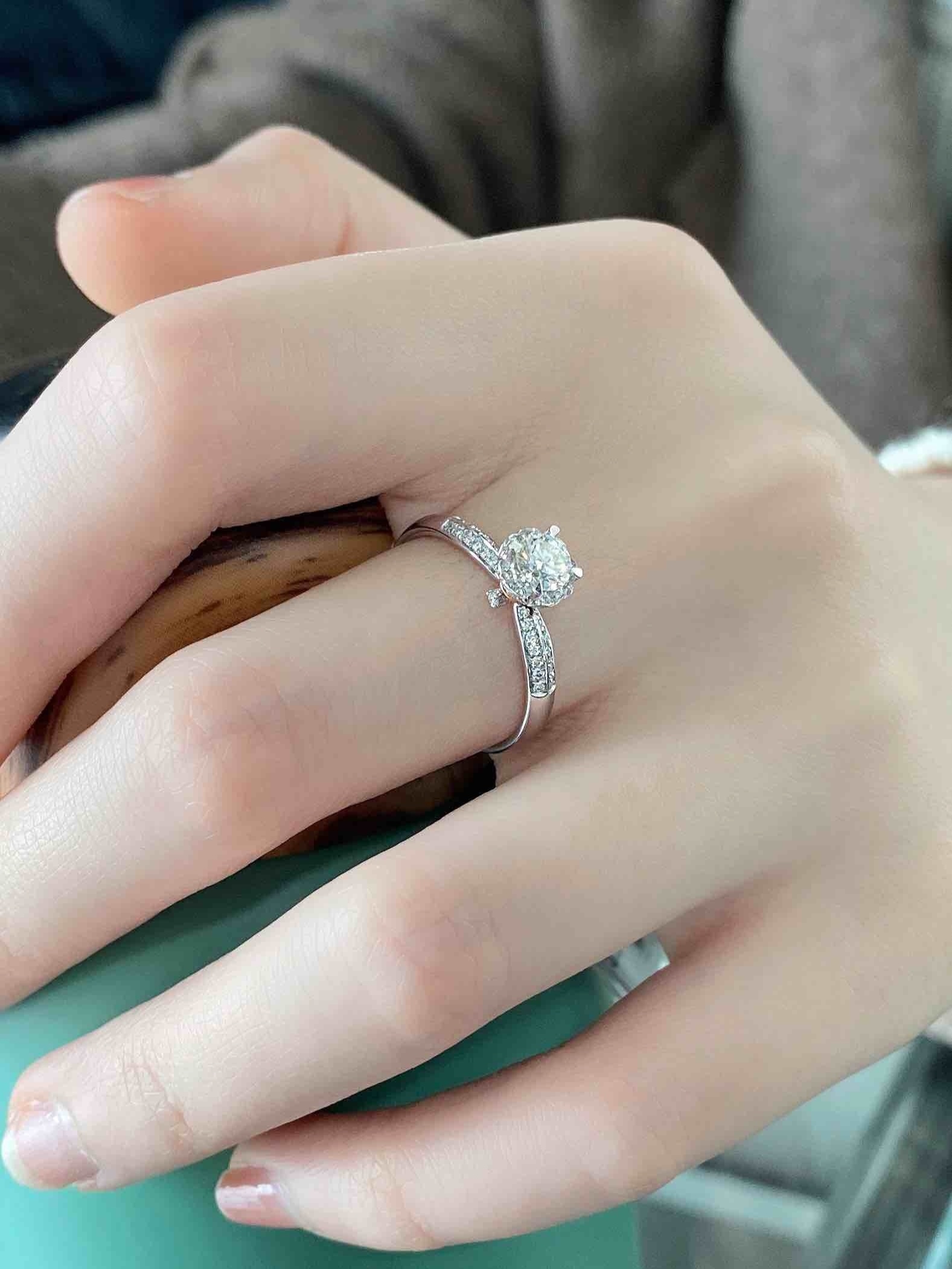 • 我和老公本来只是去看看,没想到一下子就看上了这款钻戒。门市的小姐姐也很细心的给我们介绍,说话温柔,还特别细心的让我们试戴每一款钻戒,让我们对可选择的范围有个全面的了解。因为我们有预算,所以小姐姐特别推荐了一款适合我们的款,而且我们也挺喜欢的。最终,我们选择了这款钻戒,一条项链,以及老公的一个戒指。