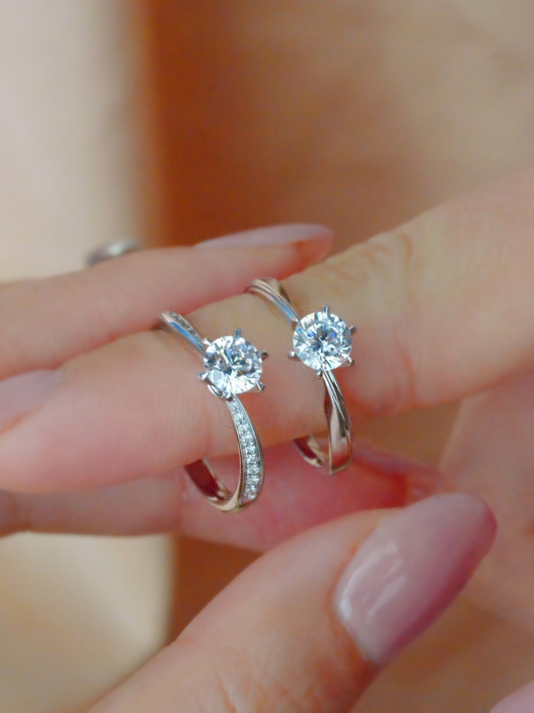 • 小众即出众!不对称钻戒 【清欢】 不对称的婚戒设计,左边两颗,寓意我和你,右边四颗,寓意共度一世💕六爪捧起钻石,温柔的包容万物,纯粹的让人心动💓 18K白金戒指,小众不撞款,又飒又美!戴上就再也不想摘下啦💯