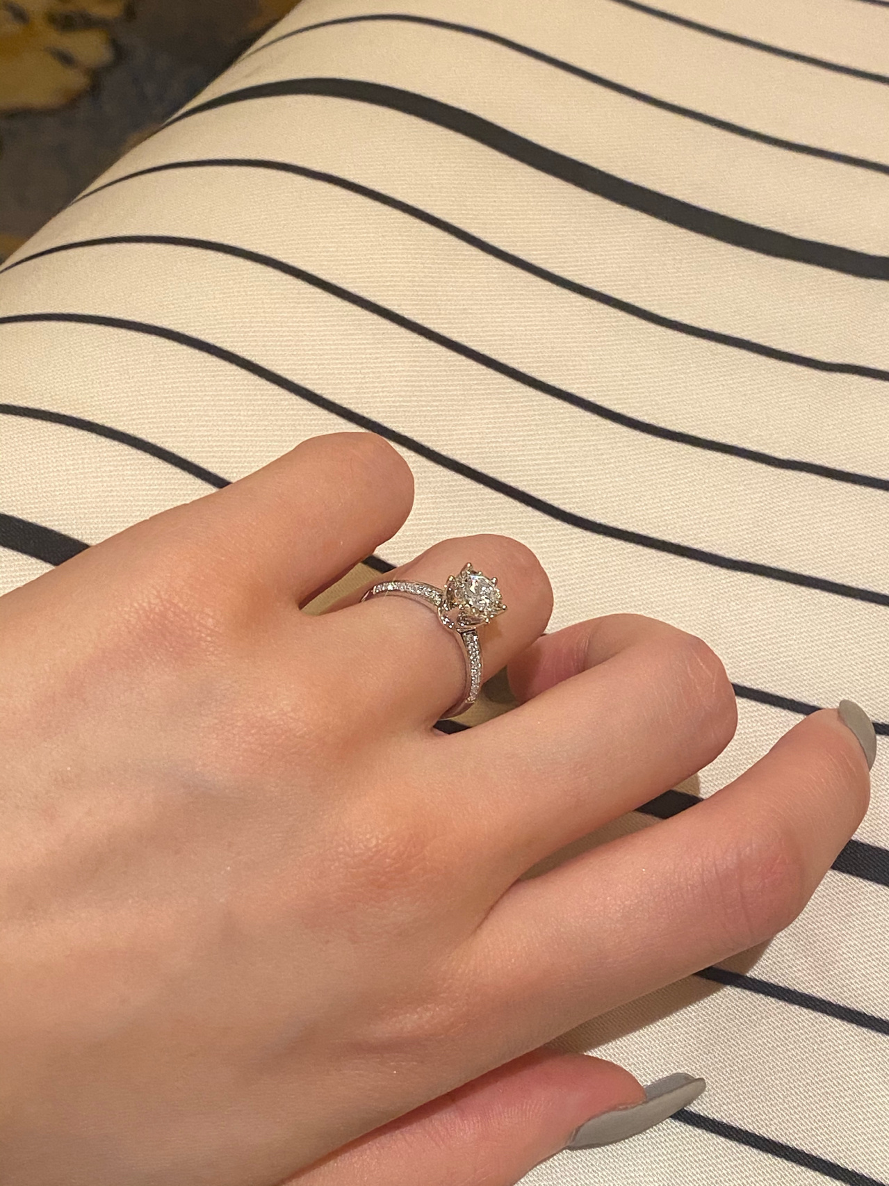 • 终于,梦寐以求的钻戒终于到手了!这款戒指在网上看了好久,就是喜欢它的设计,既精致又闪耀,大气又独特,设计师也太浪漫了,看到这款戒指就被深深吸引,戴上它就仿佛戴上了整个宇宙,满天的璀璨光芒都只为我一个人闪耀,真是一次满意的钻戒定制经历,分享出来跟大家一起欣赏吧!
