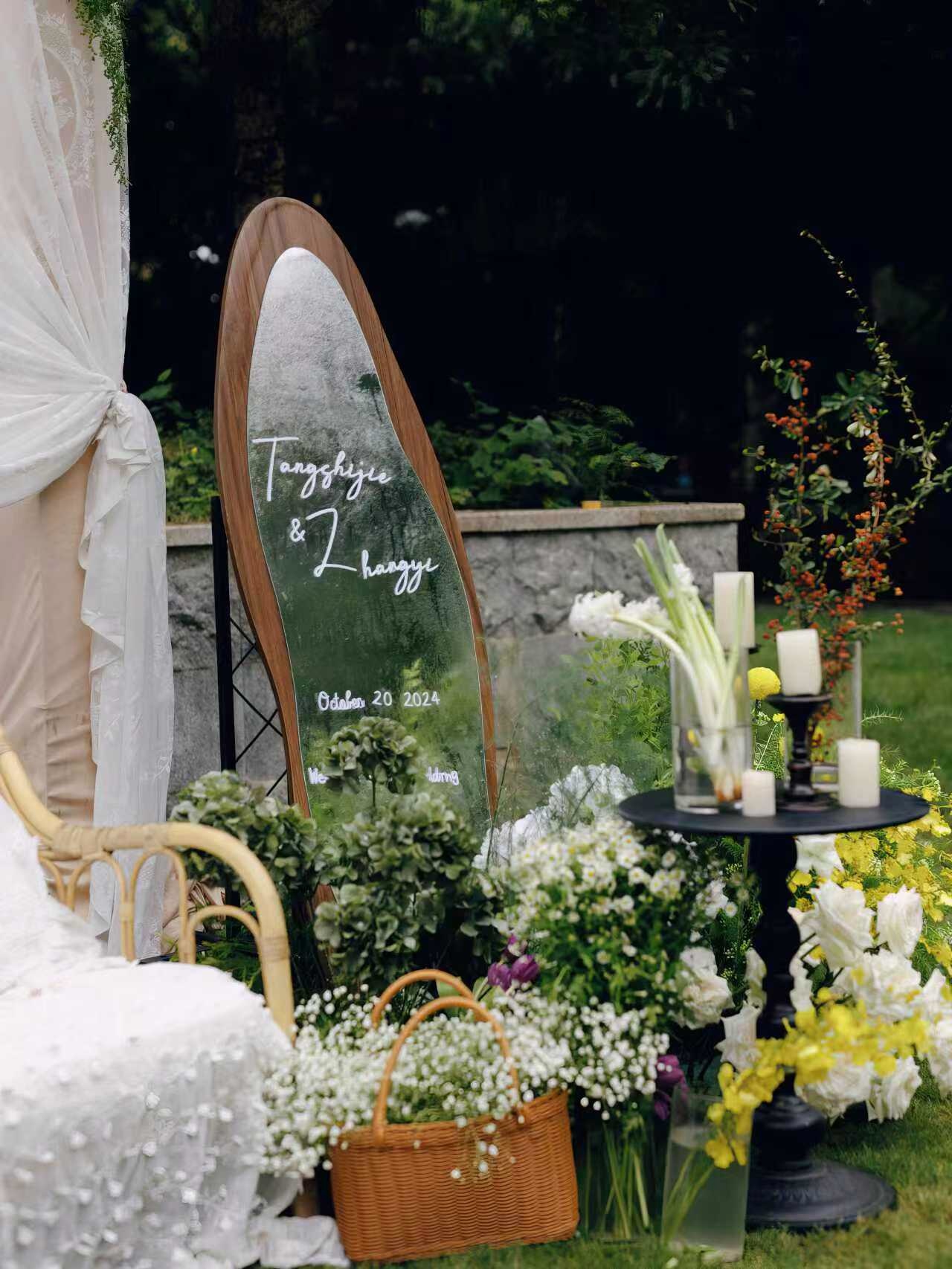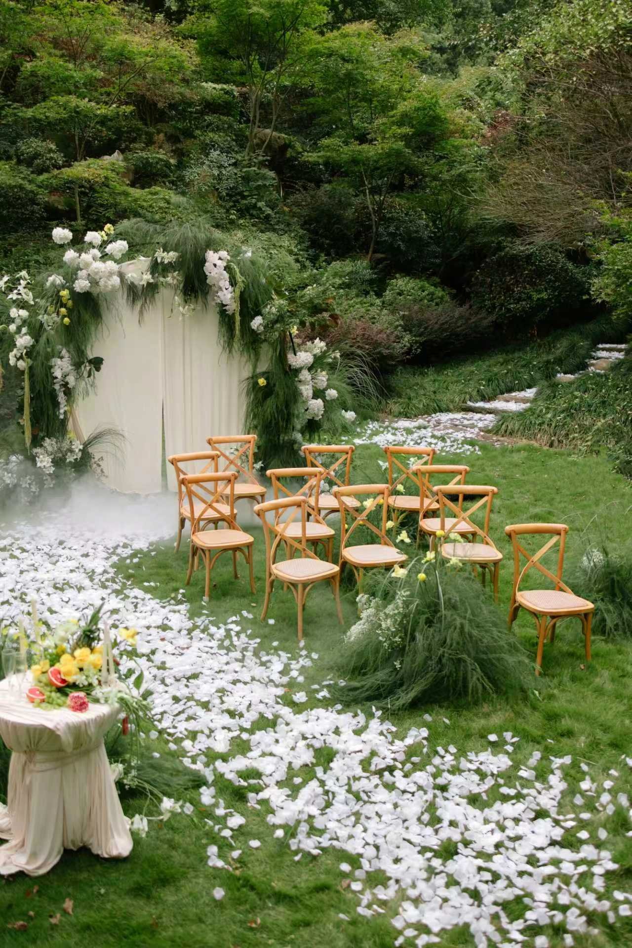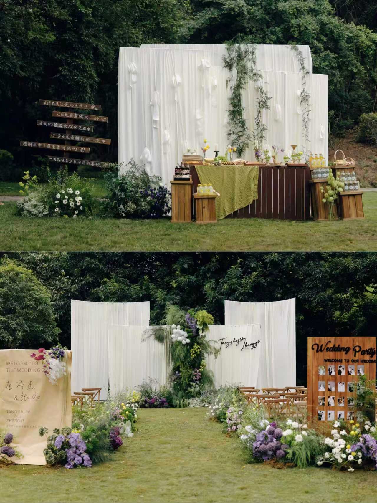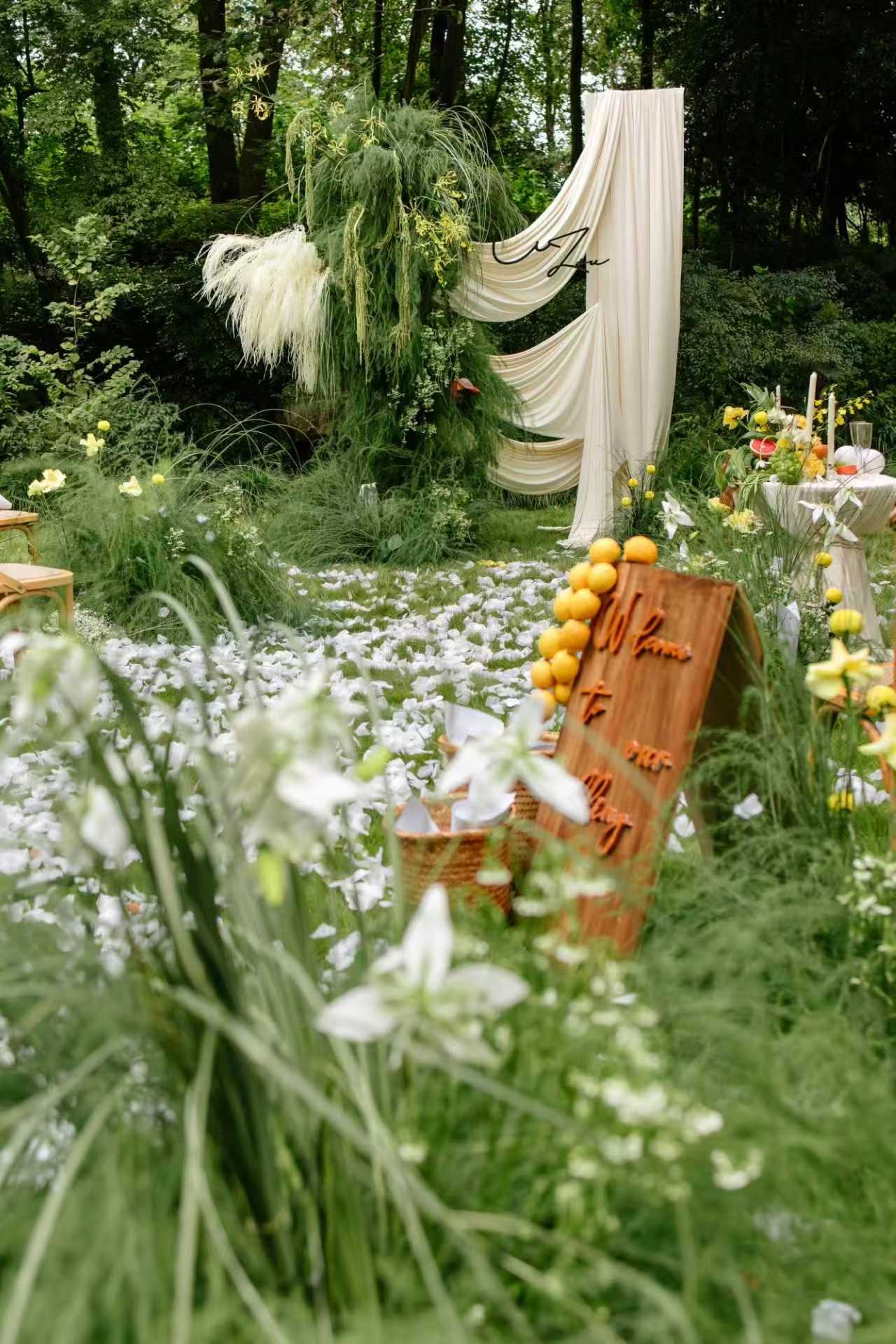• “你从不是权衡后的选择,而是我初见便笃定的答案” 把誓言藏进婚礼的每个细节 ✔️主背景用树木,鲜花搭成“誓言树”, 仪式时两人并肩站在树下,一起见证“分担寒潮、共享虹霓”的爱情 ✔️卷轴誓词牌+白色布幔造景, 视觉上更具艺术感,让誓言不止是念出来,爱情的篇章由我们共同书写 ✔️雾森升腾+光影折射效果, 营造出“朦胧秘境”的梦幻感,强化童话式的仪式氛围 婚纱适配度拉满,好似森林里下凡的仙女 ✔️重工拖尾婚纱的蓬松感,与婚礼誓言的厚重相平衡 ✔️长拖尾主纱既承载“婚礼仪式感”的象征意义 ✔️又能在雾森、追光环境中呈现飘逸的视觉效果 策划小心机: 🌿雾森漫过绿植,星光落在肩头, 他说“往后余生”时,誓言里是对爱坚定的选择💍 原来好的婚礼,是和你把童话过成日常✨#氛围感婚礼布置