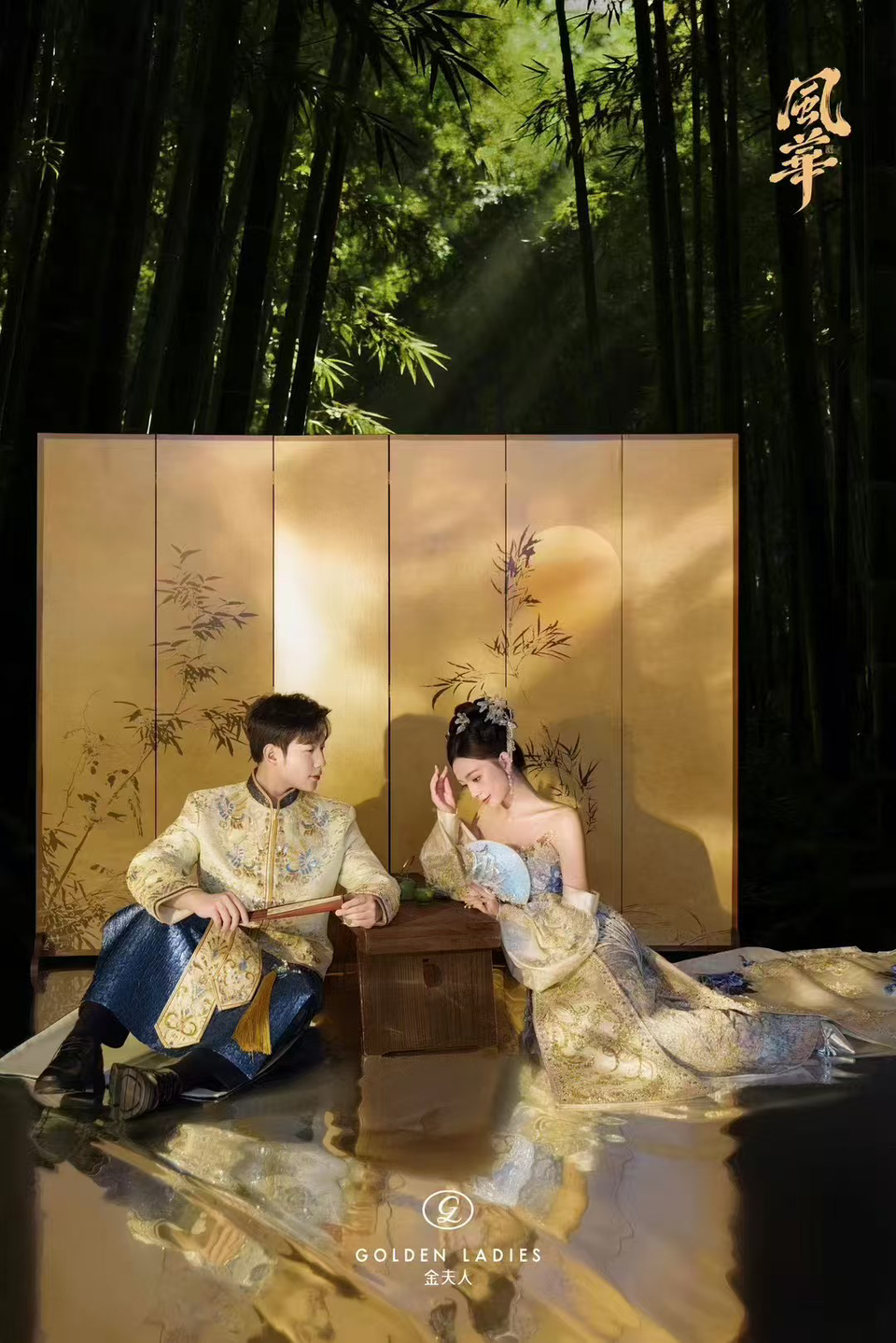 • GOLDEN LADIES|佳片有约 当新中式邂逅鎏金时代💐 东方富贵美学悄然上演📸 香槟金绸缎铺陈的仪式感里❗#美出圈的新中式婚纱照