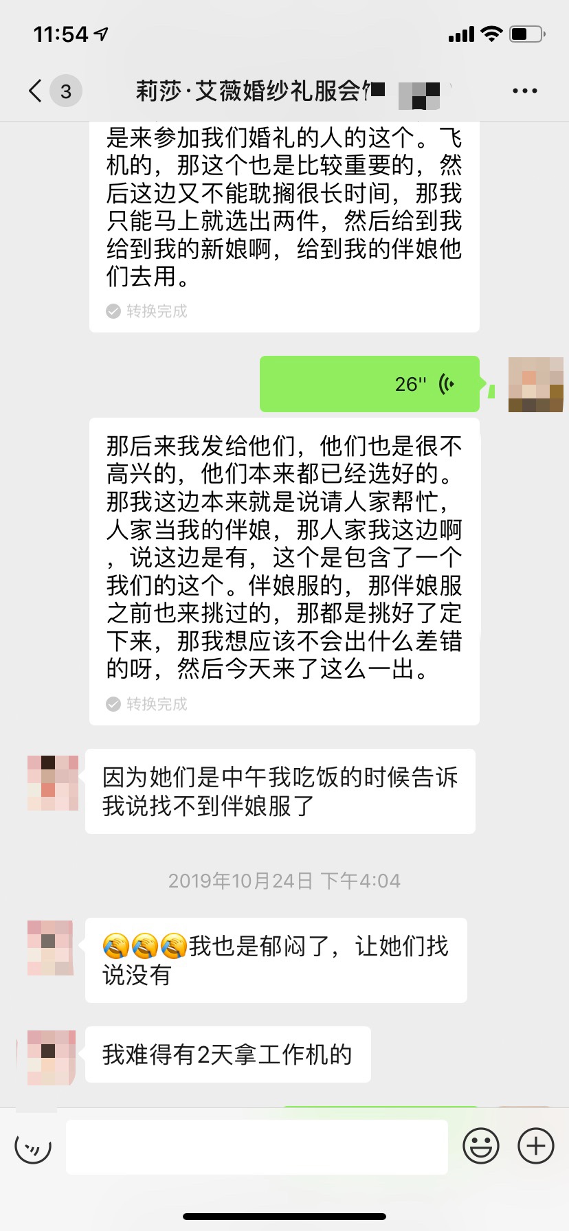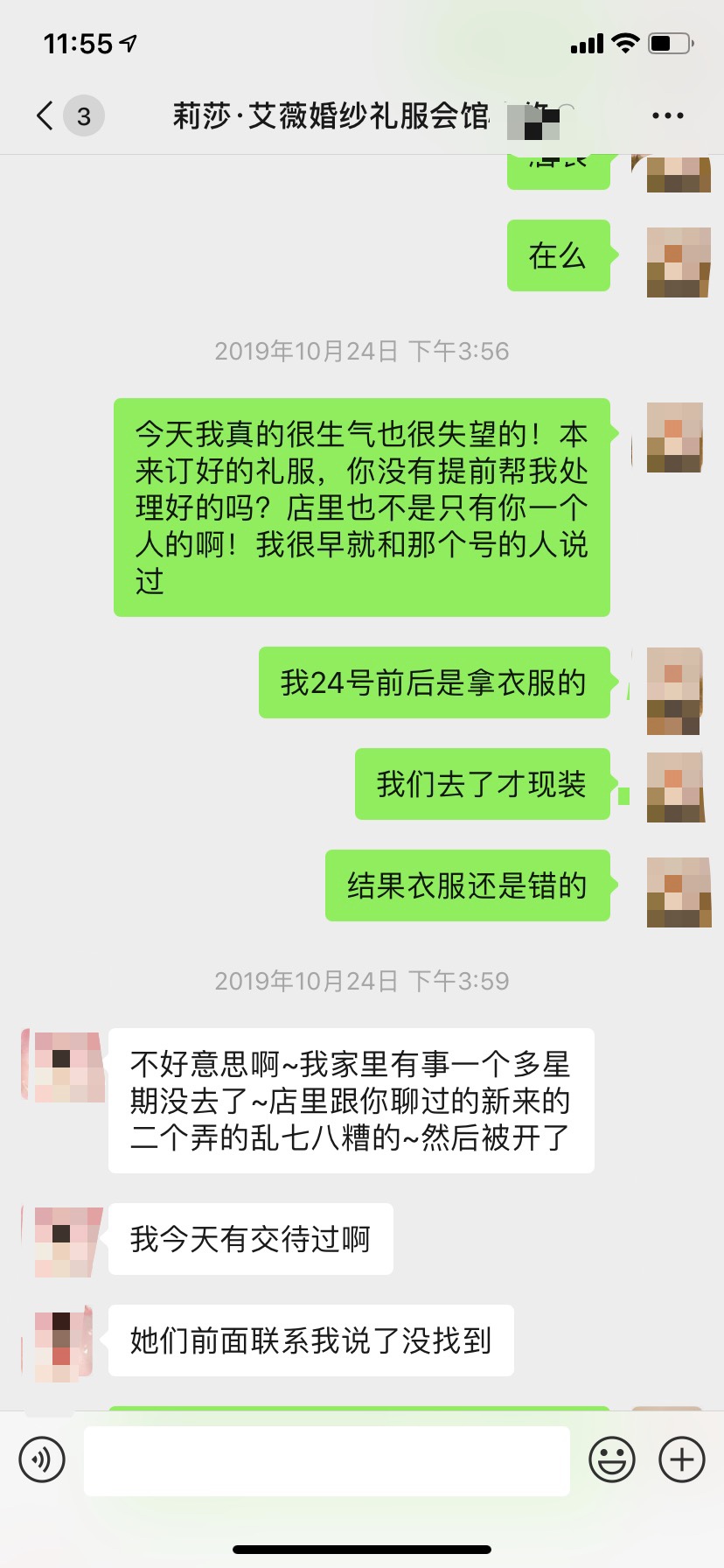 • 到店一开始的时候老板态度非常好的,后续真的感觉到他们店非常不专业。主要要由于两点:第一点,我大约提前3到5天就告知了我取婚纱的时间。但是去取时还没有打包好,而且也没有把衣服整理好。第二:我预约好的伴娘服,告诉我有两件不能用,去了才告诉我要重新选择两件。最后,到目前我没有收到试装照片,之前说是会有的。 当我反馈给店长时,第一没有解决我的问题,并且回复的方式非常情绪化。