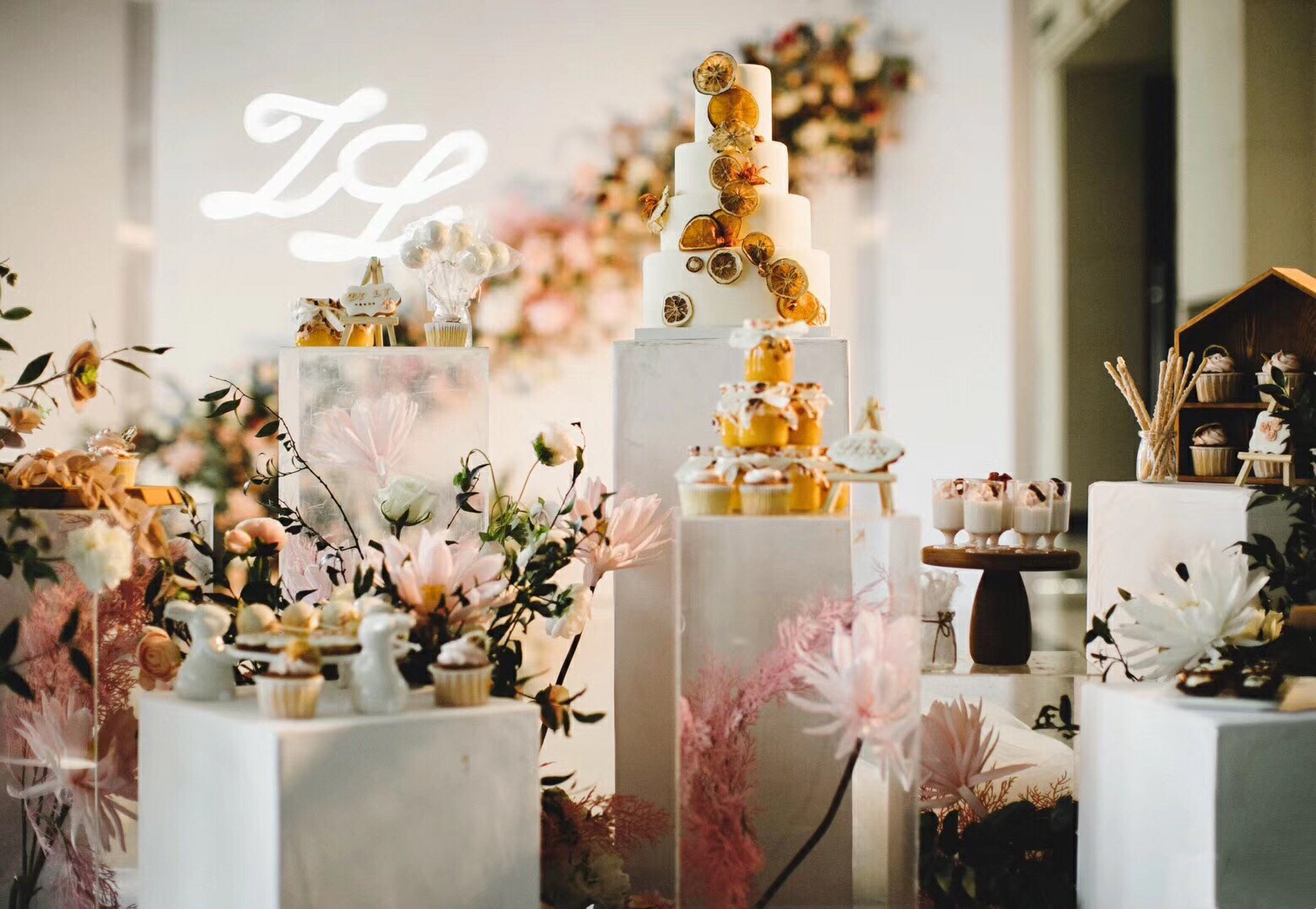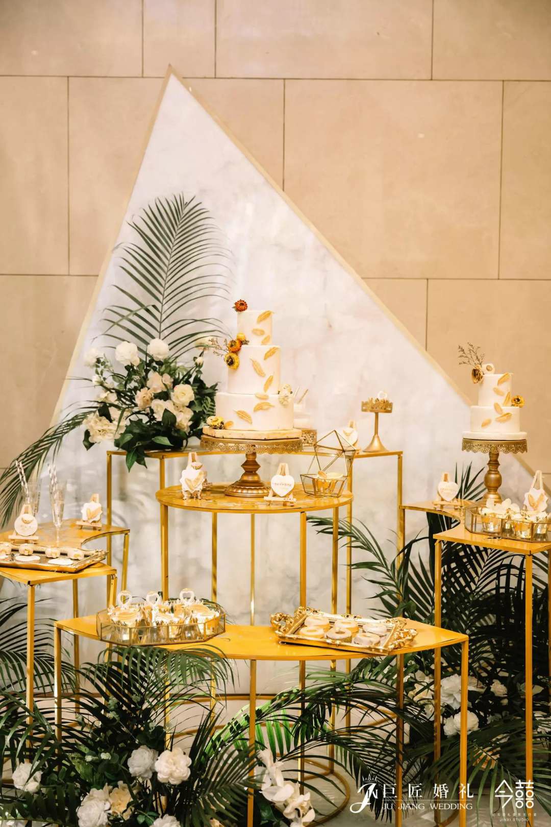 贵阳巨匠婚礼策划:这一场的话新人加了甜品台的区域,您有需要可以联系我们的客服可以具体给你推荐和介绍哟