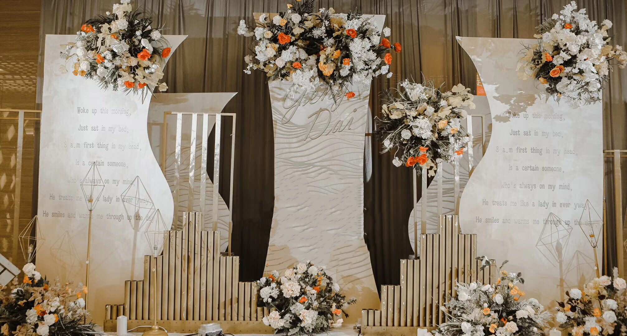 • 第一个:结婚当天音响依旧效果那么烂!我们还花了额外的1500来准备😳我以为会更好!结果成为全场最大的笑话! 下面的声音都比我们的话筒声音大!! 第二个:双方父母的胸花没有交到手上且戴好!而是因为找不到人就放在桌子上,被别的小孩拿走玩了,还没有补救的措施,就说了“不好意思,没注意”这个是很不专业的行为! 第三:搭台子的时间 之前最后一次来贵公司对接,婚礼的策划师说早上11点过开始搭台子,结果我下午1点30到酒店化妆,一楼迎宾区啥也没有,我觉得首先得把那里搭了呀,起码让别人知道这里办婚宴!然后二楼台子4点30都没搭完 第四:说好的婚礼背景会用我们两个的名字拼音缩写来设计,然而并没有,还是用设计方案里的Wedding 。这个确实还原度挺高!!90%啊!!!!!!!!难怪尾款要提前收,因为都知道肯定会出问题,以免我们不付钱,找麻烦,我觉得花海阁这么多年的口碑也就这样子,我觉得不管客人定是10000多的,还是20000多的,还是更多的,我觉得作为服务,应该一视同仁,都是为了最好的效果!一家好的公司就算10000多也会尽量把该做de做好,口碑比牌子更有说服力! 都怪婚礼纪,让巨匠主动找上了我。失望。