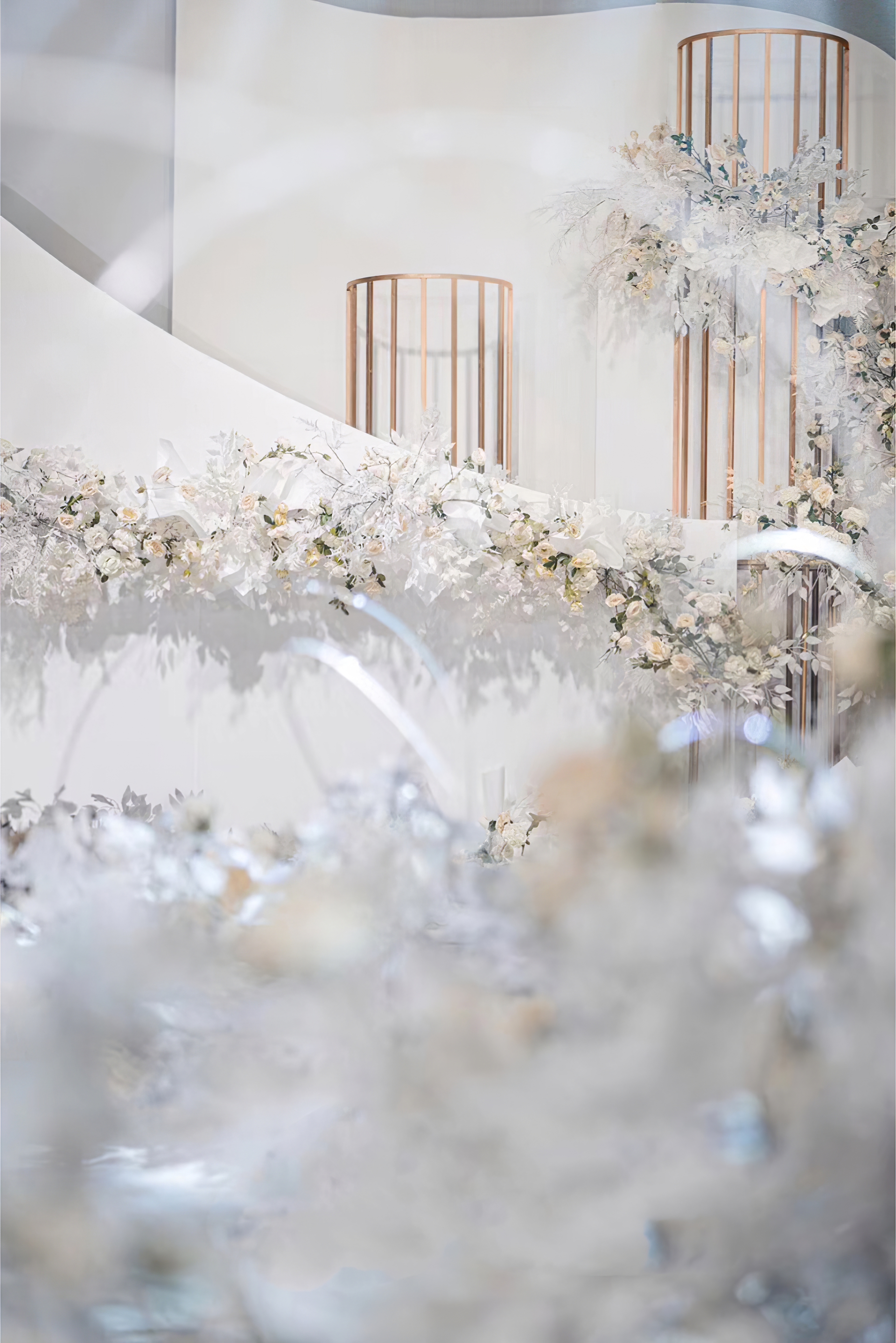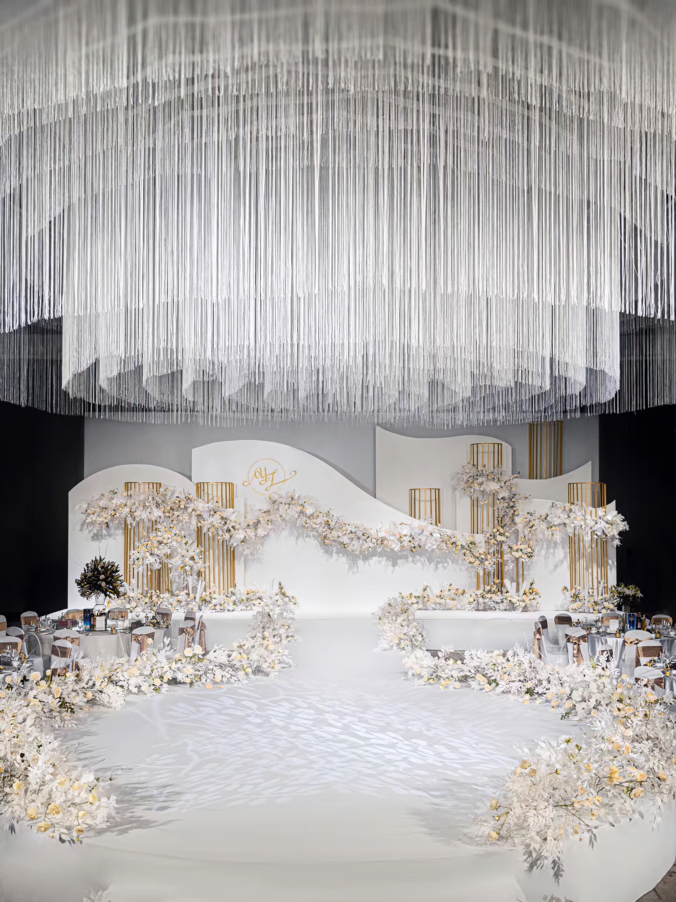 • 纯净优雅简约白线条勾勒秀场风、为婚礼塑造纯净优雅的格调 #婚礼现场 #室内婚礼 #婚礼布置 #真实婚礼