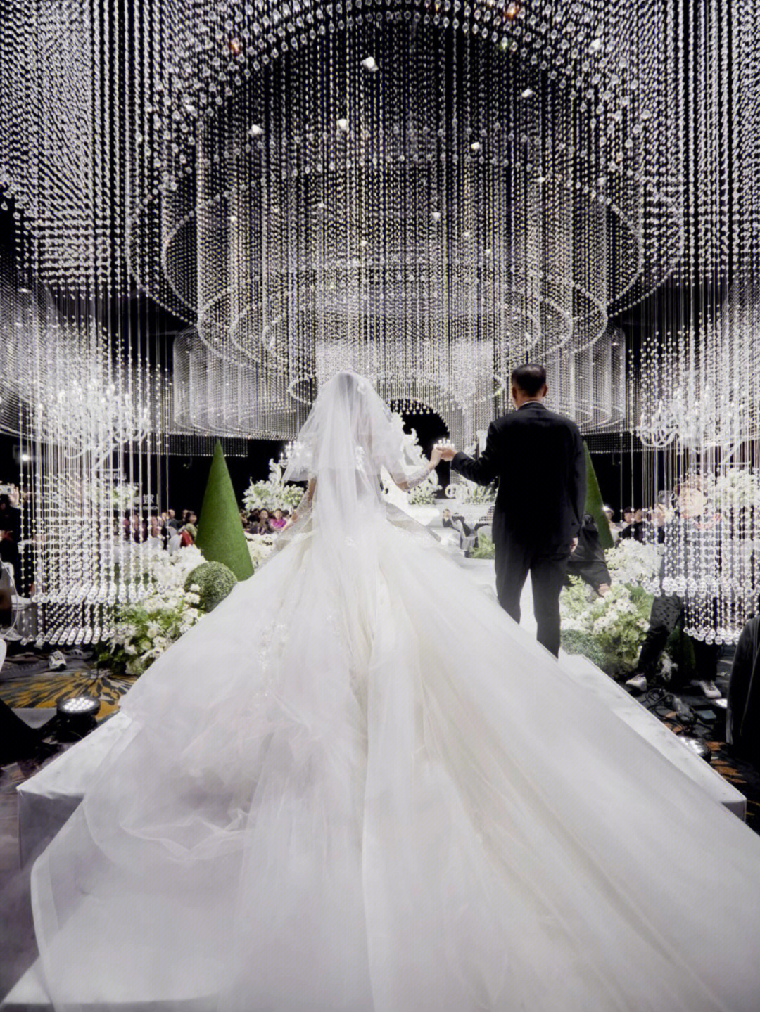 • 韩式风格的水晶吊顶设计、大气又上档次、简约又超级闪、每个女孩梦中的婚礼