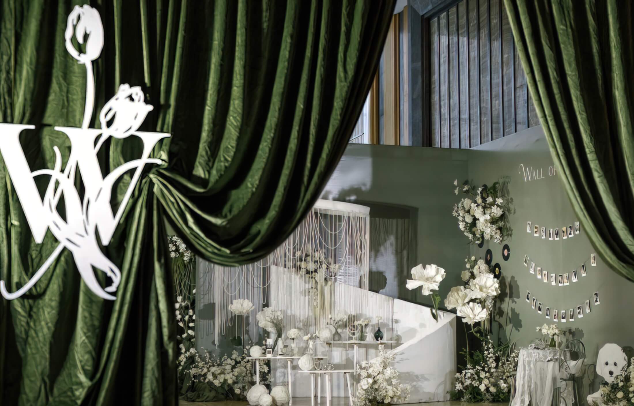 • 青山不及你眉长、水清不似你母澈、我一生只一个你;春夏和墨绿色婚礼超搭