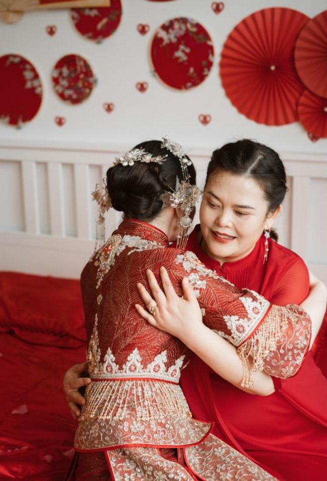 • 从出门的秀禾服到主纱再到敬酒服,每一件衣服礼服老师都根据我的喜好和身材来推荐的,总体很满意,小姐姐还帮忙拍了很多好看的花絮哦