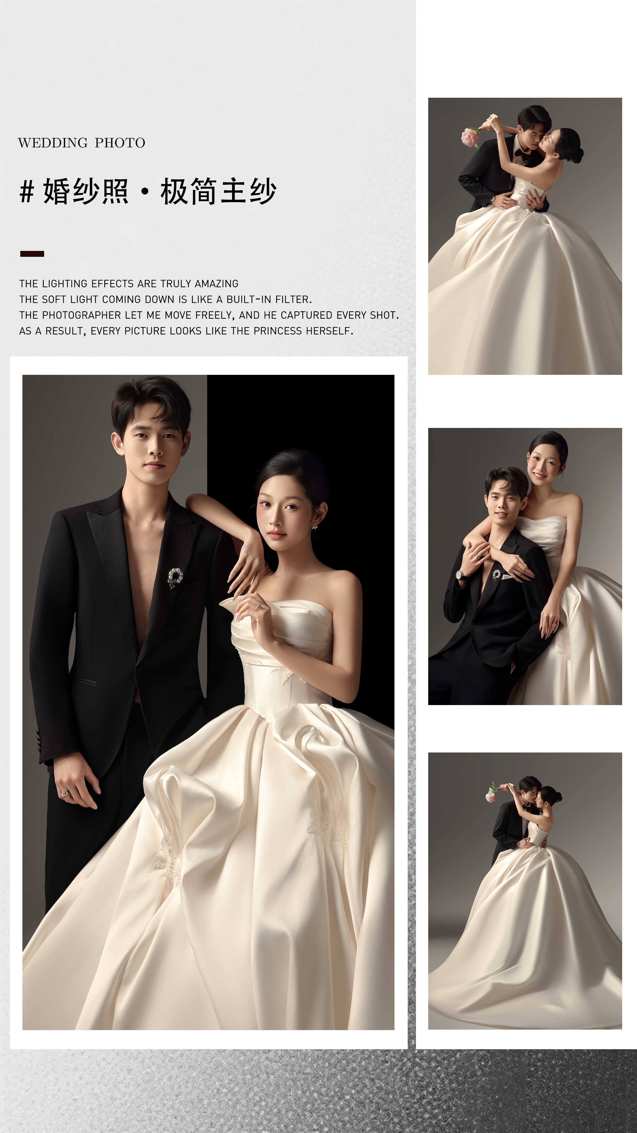 • 拍摄过程肥肠顺利,摄影师、化妆师、灯光师的服务都非常好。拍摄过程摄影师耐心的教我们各种拍照姿势并积极的调动我们的情绪,显示了很好的职业素养。非常感谢陪伴了我们一天的工作人员。他们超级敬业与专业,给了我们不一样的婚纱拍照之旅。