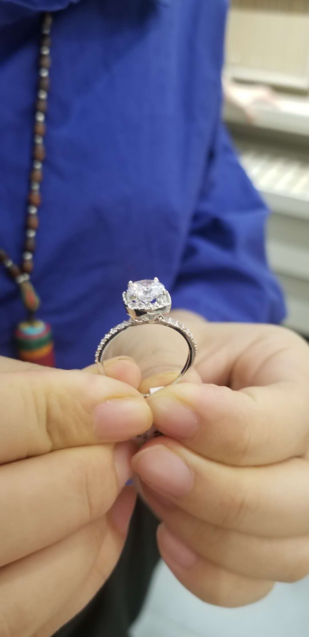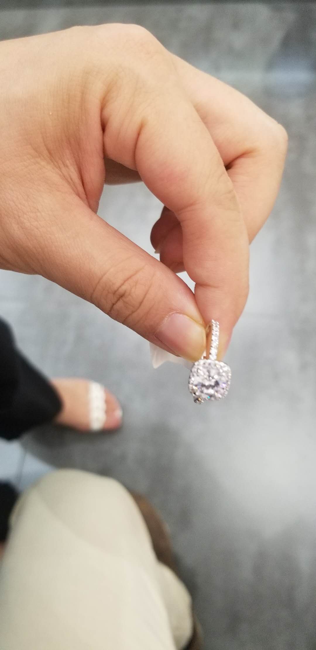 • 鉴定师小姐姐好专业,感觉比那些珠宝店的售货员专业多了,听了小姐姐的建议,选了一个显大款,好看极了,对戒还没定呢,等疫情过去了确定婚礼时间过来定对戒。