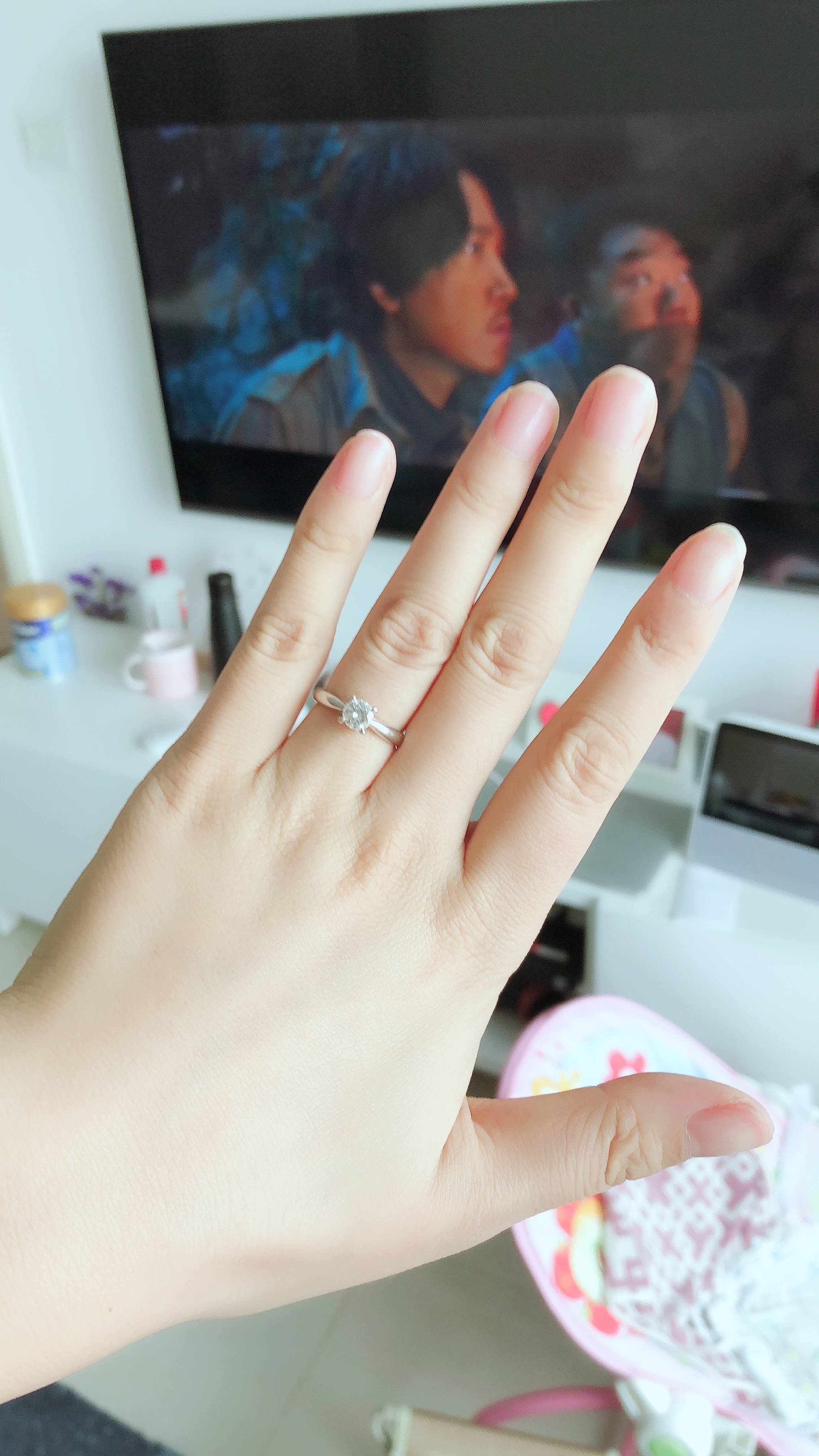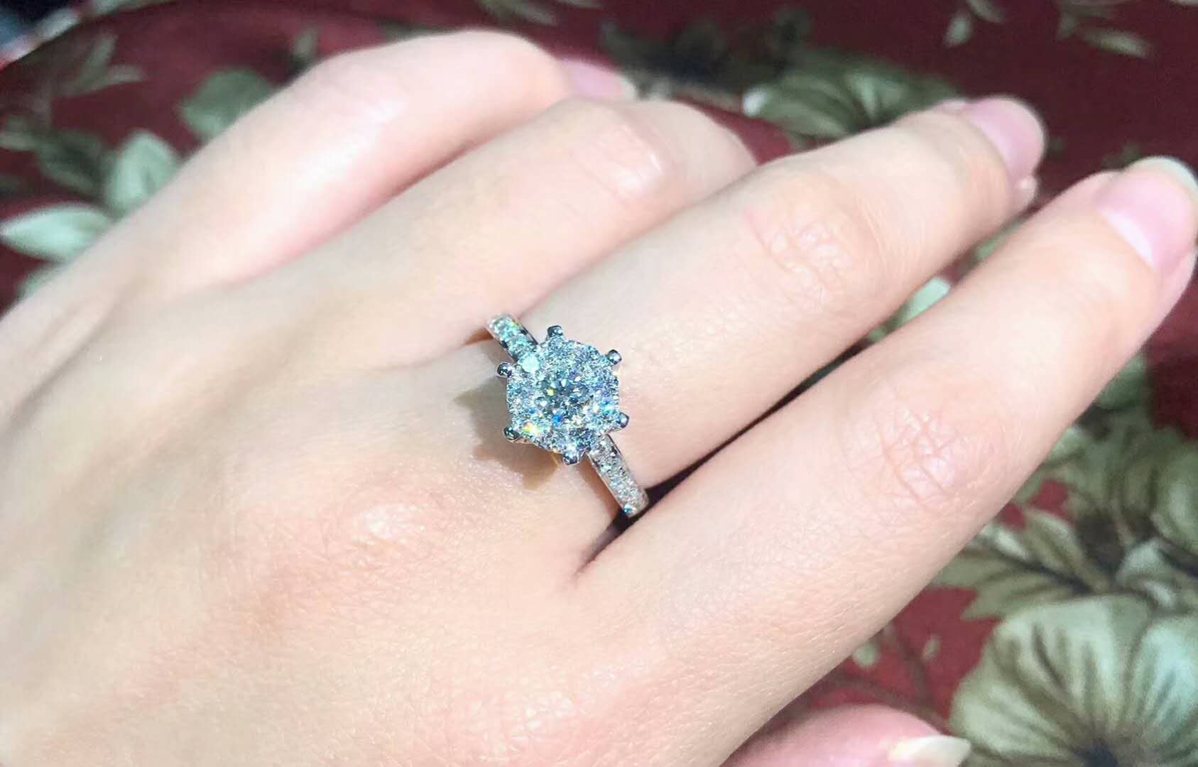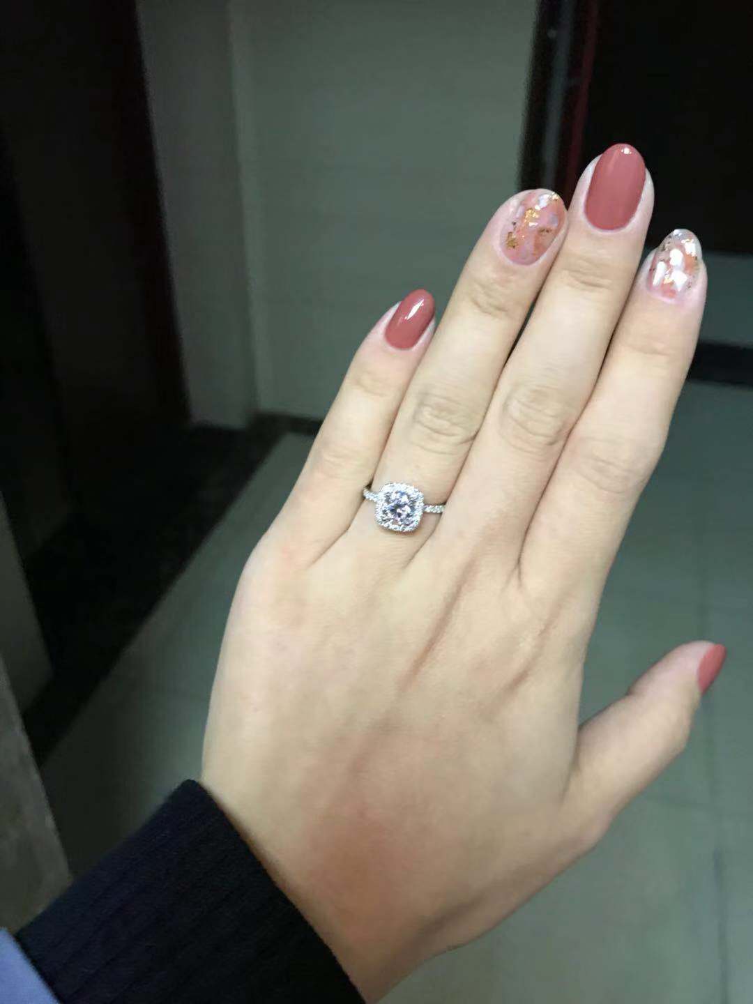 • 很喜欢,鉴定师挑的钻石,很放心,没有买很大,50分的我感觉已经够了,主要是我的手好看嘿嘿~