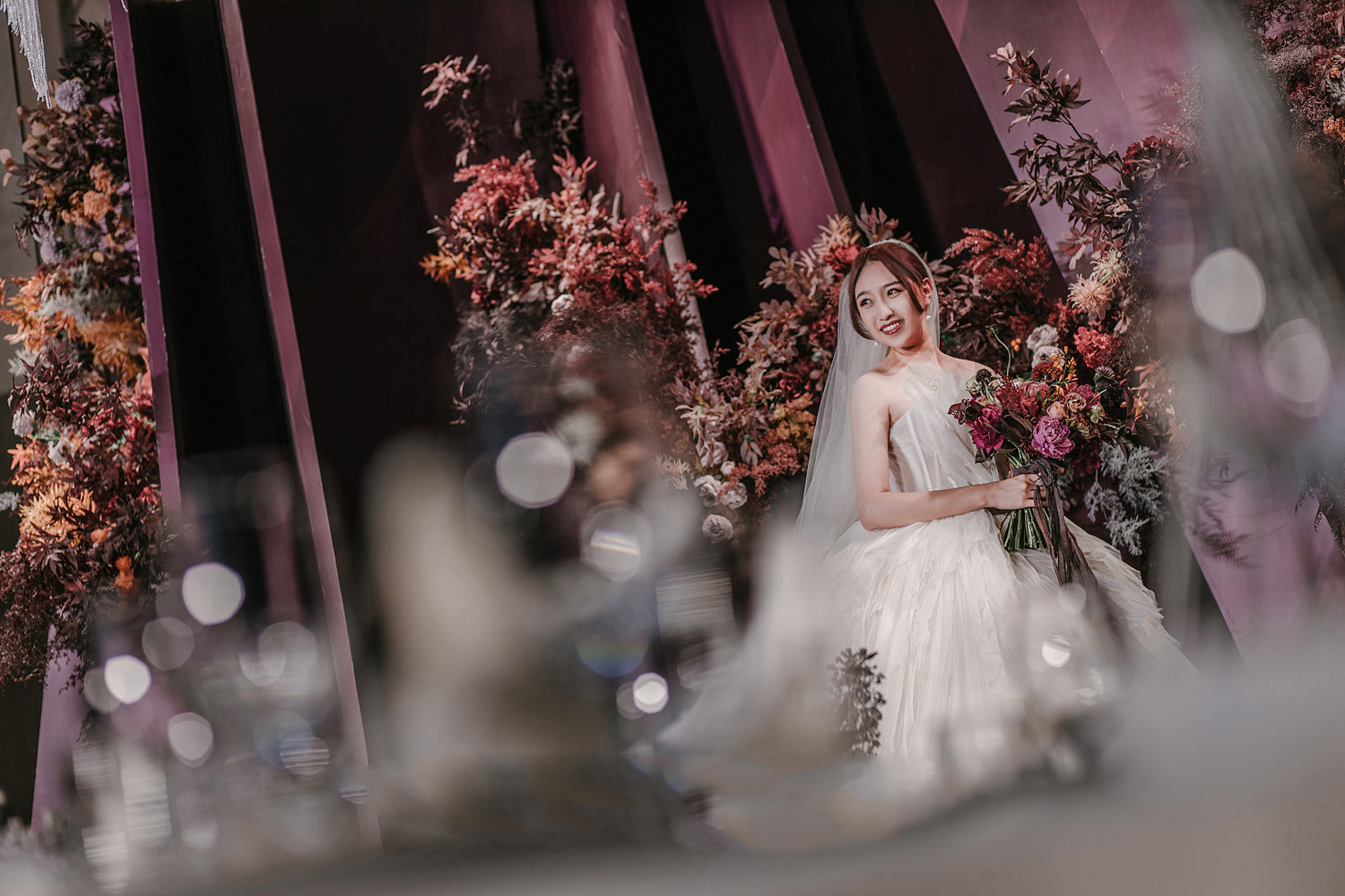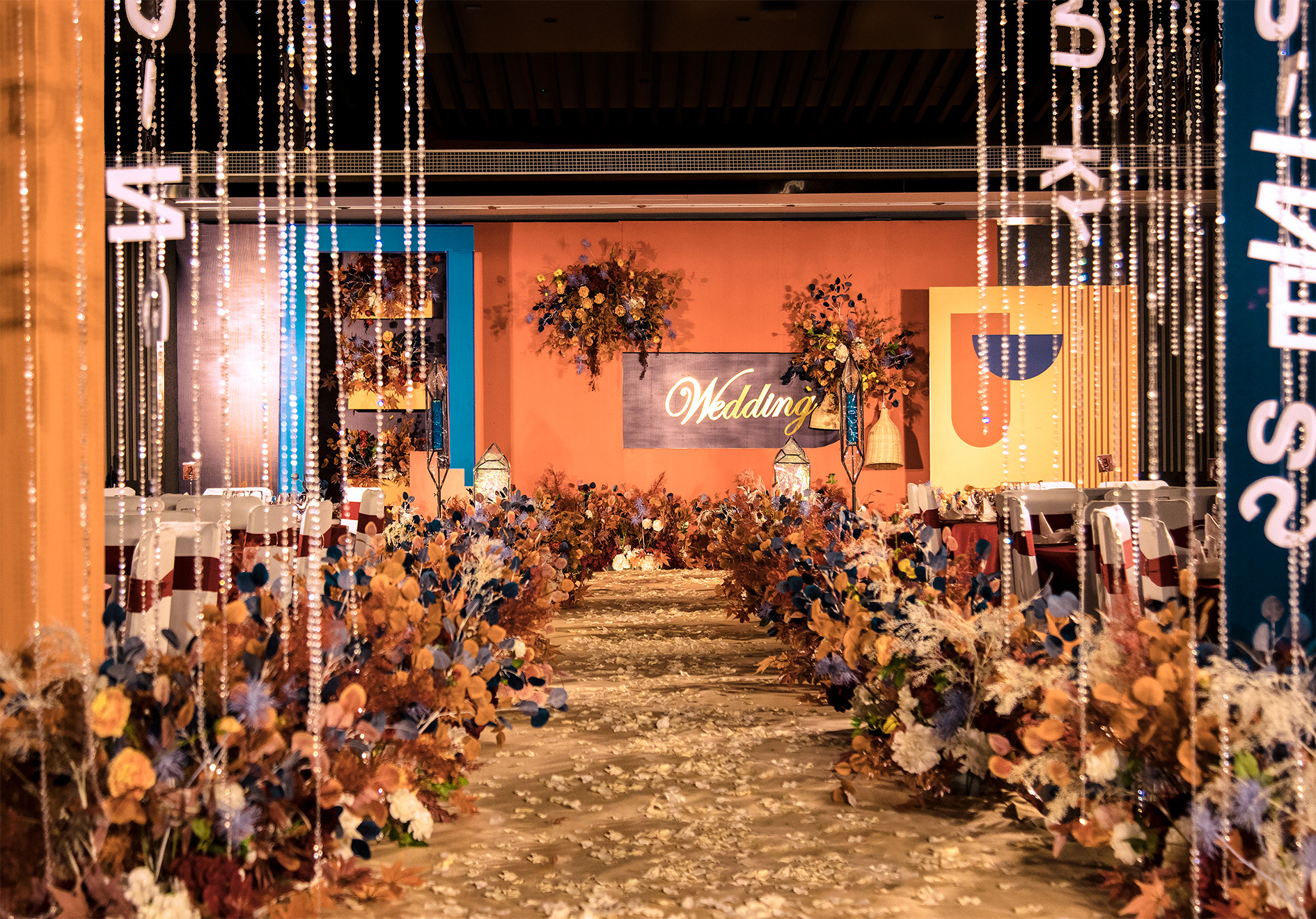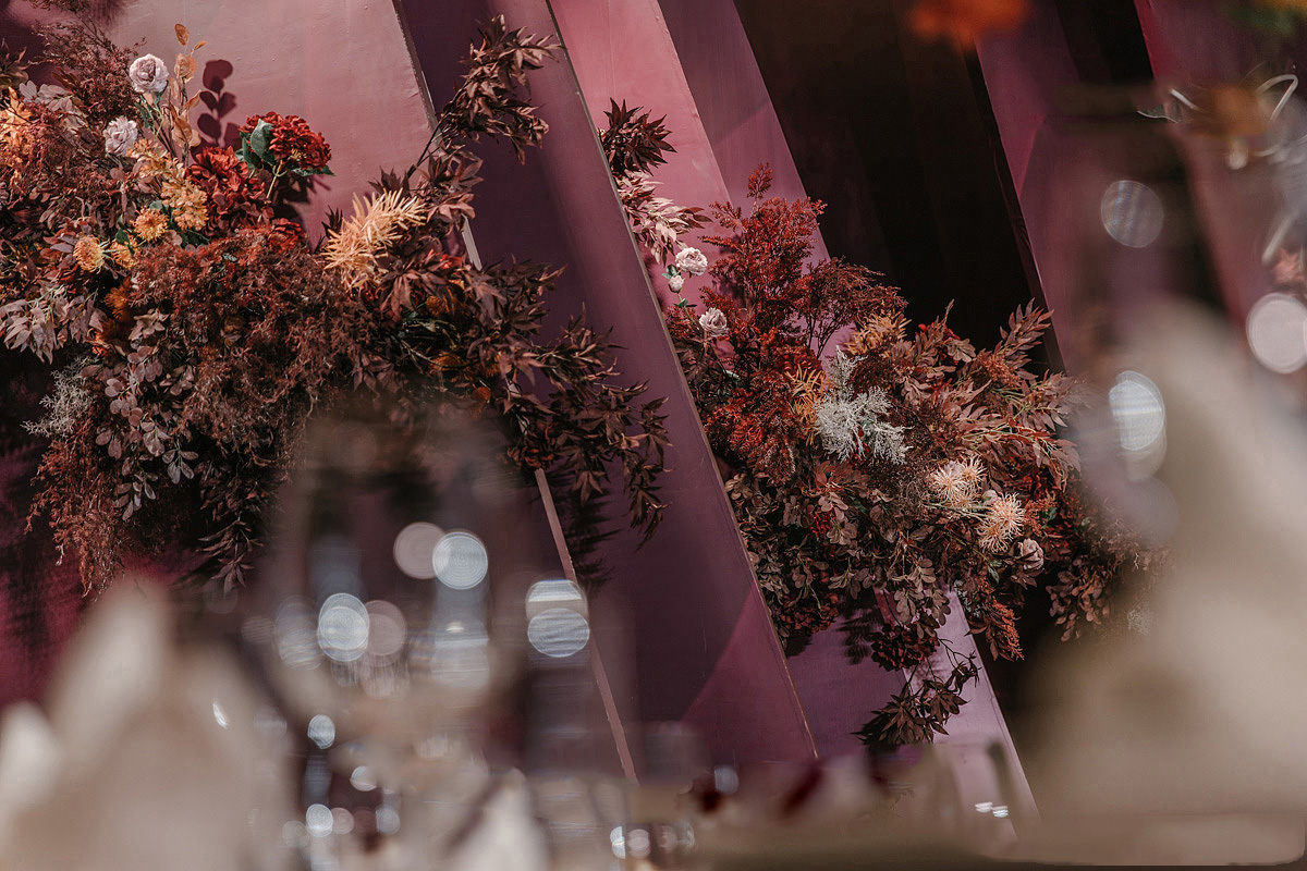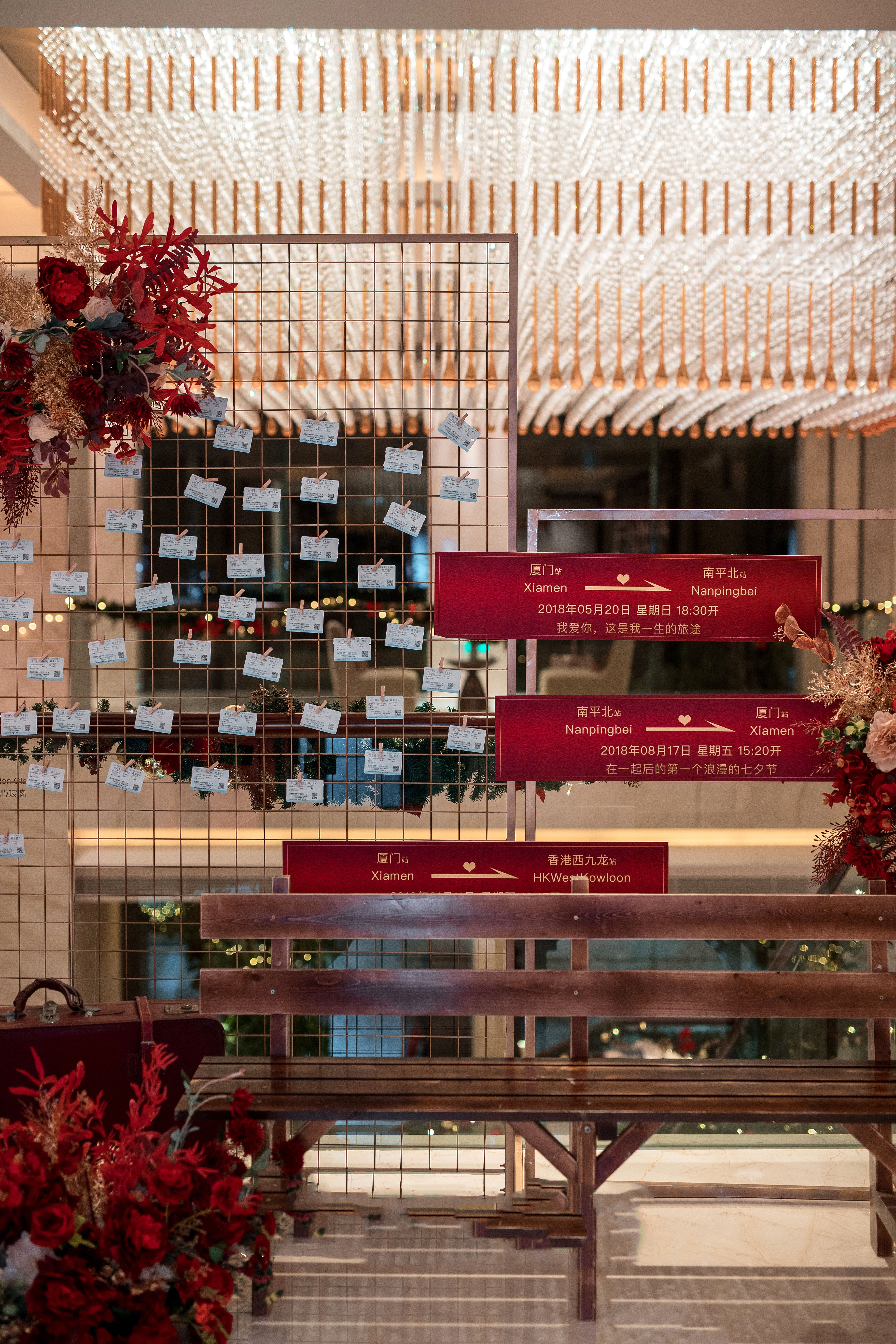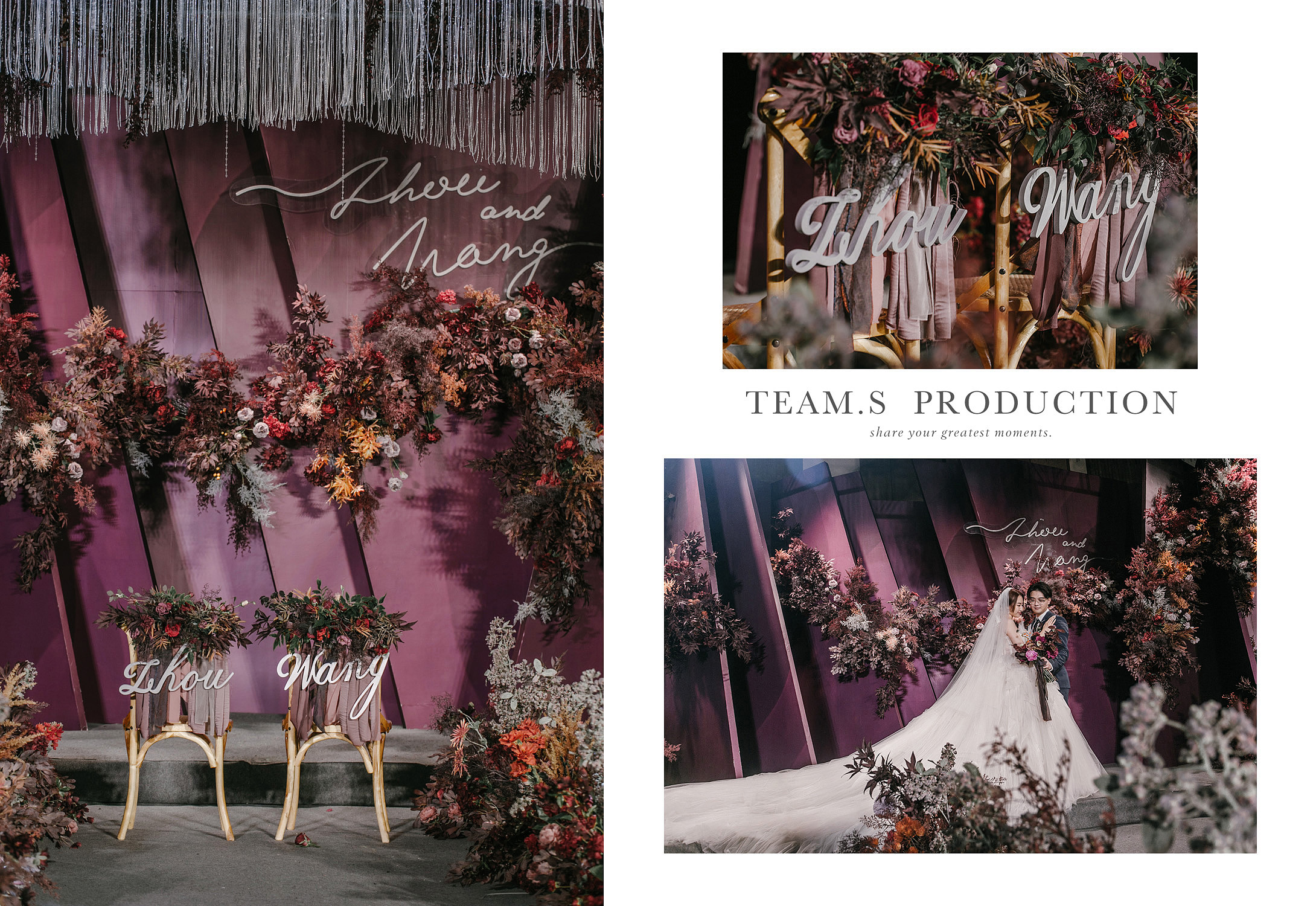 • 这是一位特别酷的新娘,一来就明确了想要暗黑系的婚礼,但是考虑到老一辈的感受,结合新人们色系的喜好和喜欢的元素做了一场属于他们的暗黑红色婚礼
