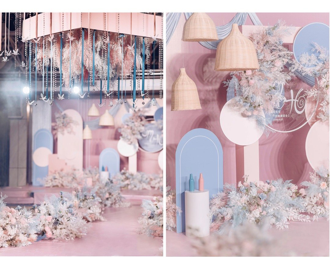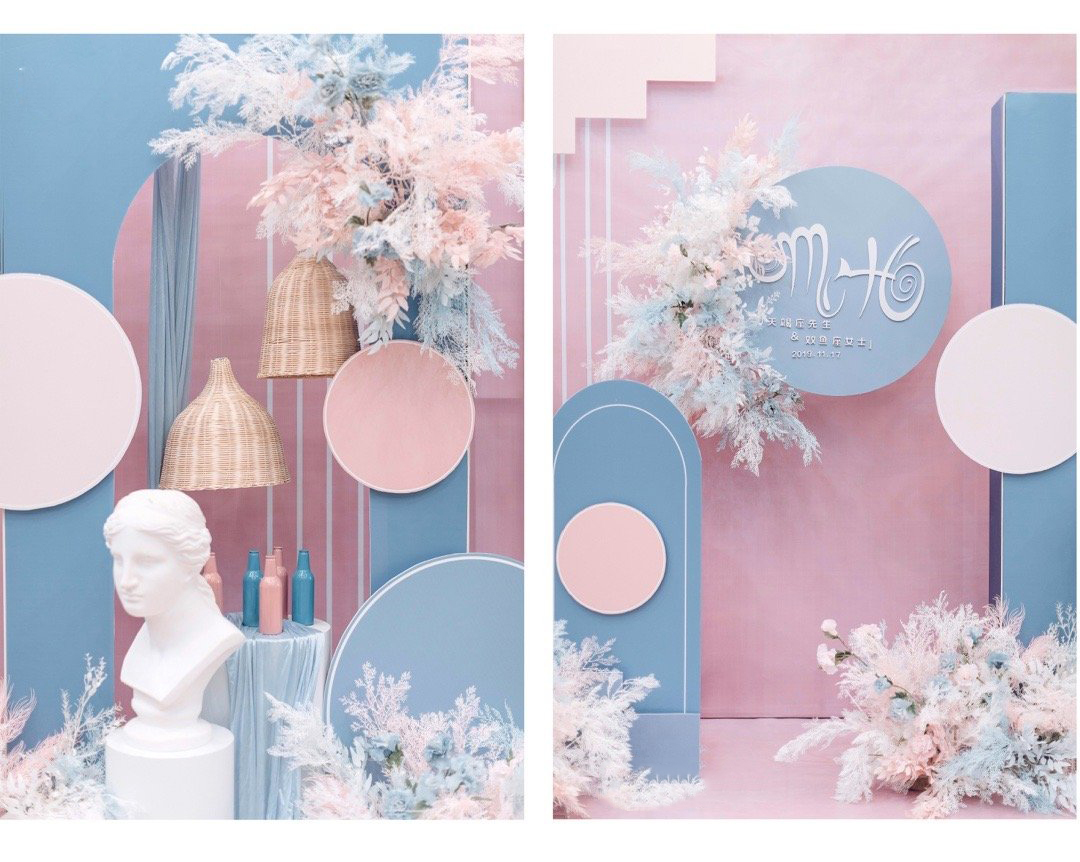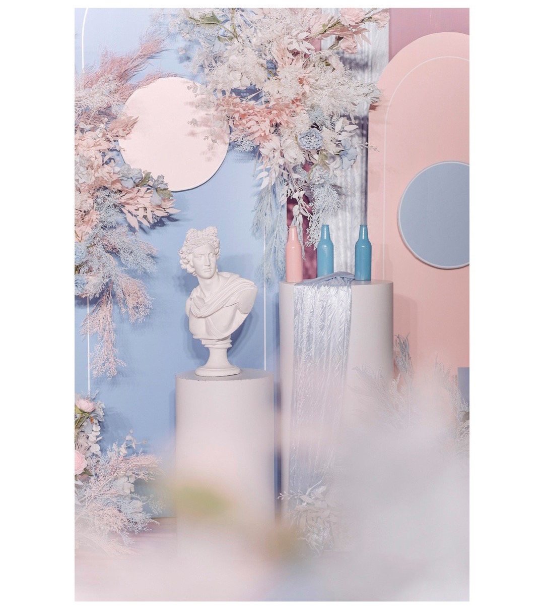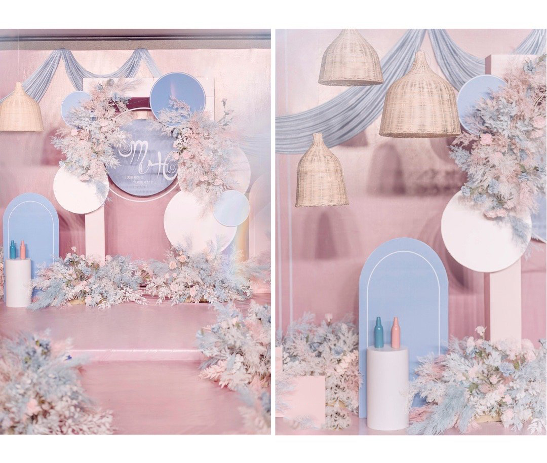 • 粉蓝冰淇凌色系 纯粹的柔粉,静谧的淡蓝 轻纱幔帐,繁花簇拥 让人一秒陷入童话梦境