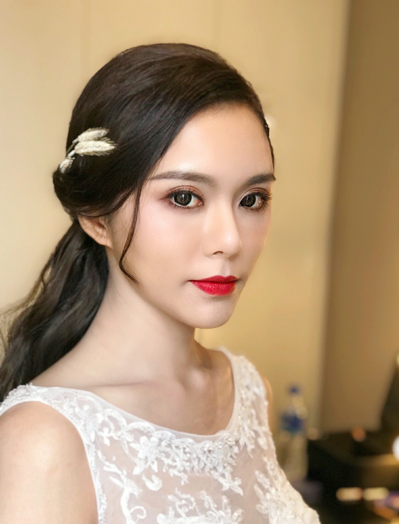 • 个人比较喜欢柔和婉约风格,发型也不喜欢太复杂,化妆师服务周到,会根据不同风格来设计造型,有朋友需要跟妆肯定介绍