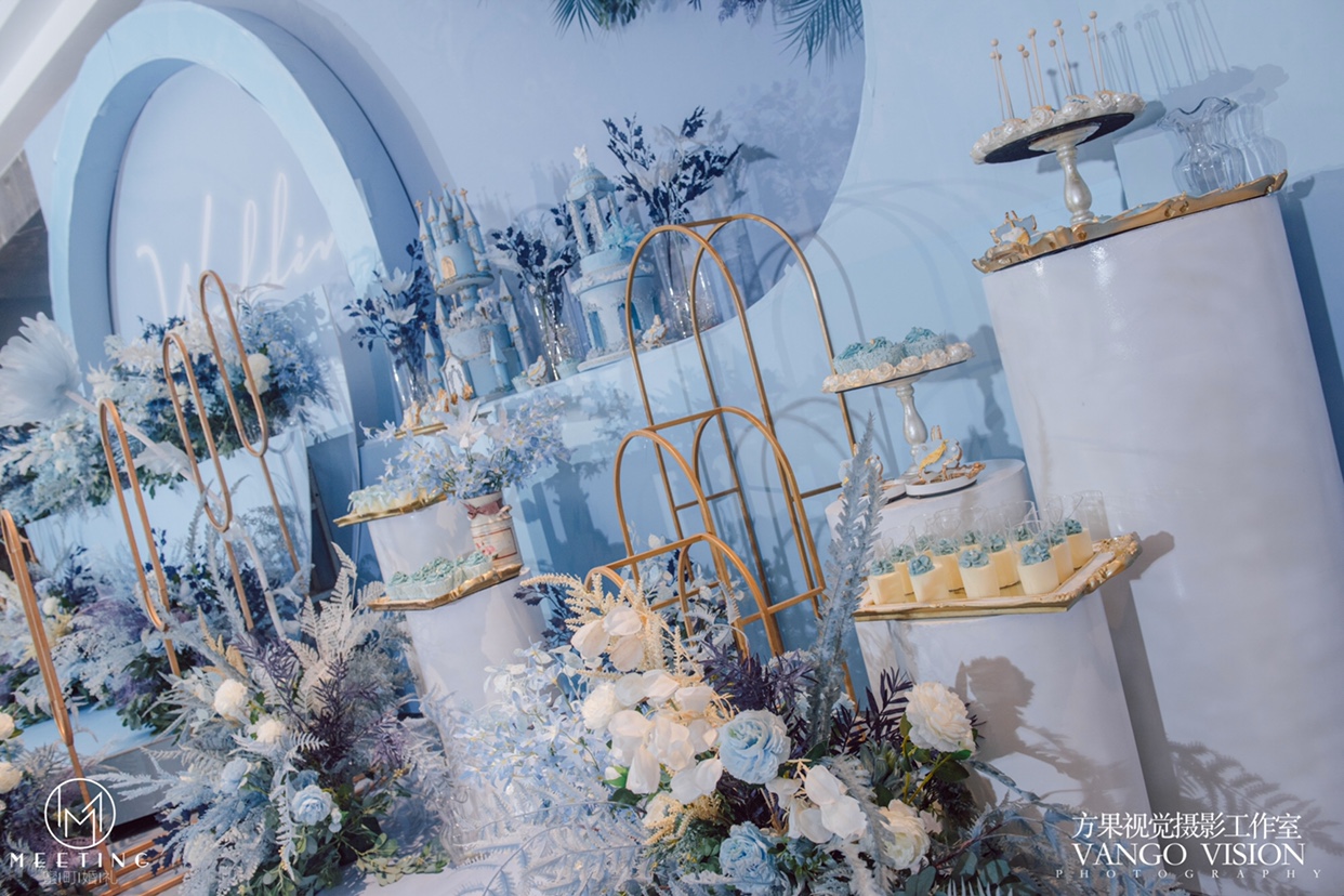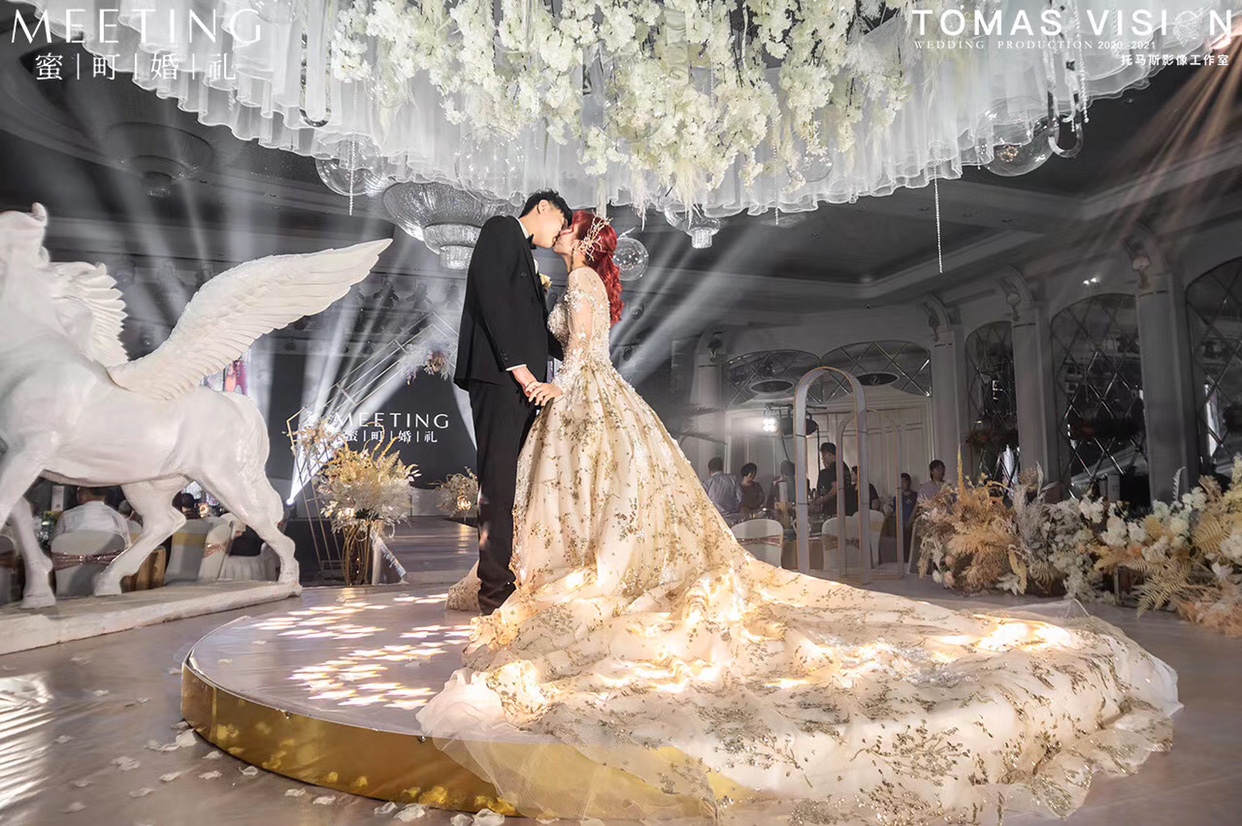 • 欧式复古的雍容华贵 将鎏金宫殿搬进婚礼殿堂 满目宫廷的盛大和庄严 此刻我心无旁骛 因为你是我最好的礼物