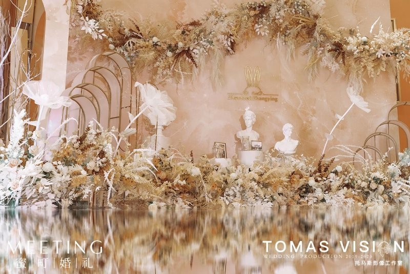 • 昙花一现,浮游一生 春华只在一霎那间绽放 香槟色本身就是一种意境 用意境去展现婚礼的美好 仿佛云端,仿佛花海