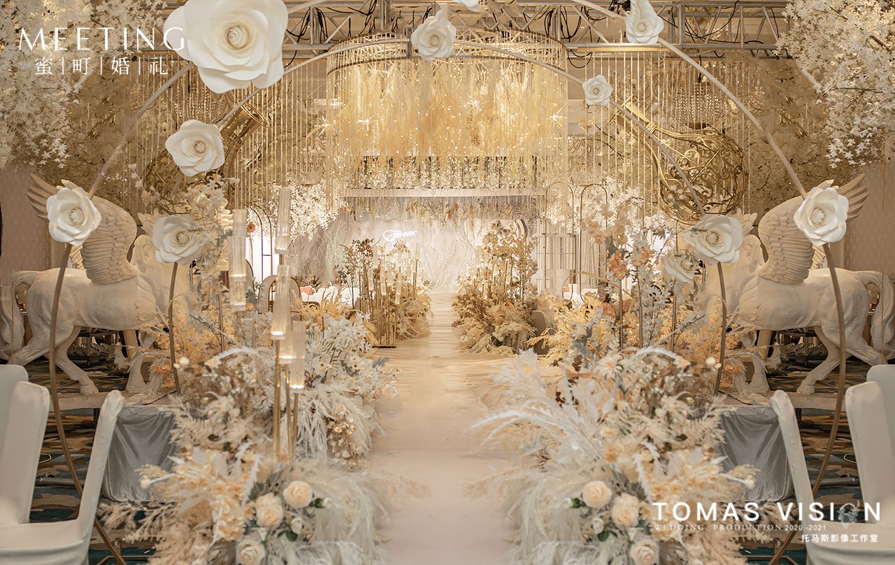 • 欧式复古的雍容华贵 将鎏金宫殿搬进婚礼殿堂 满目宫廷的盛大和庄严 此刻我心无旁骛 因为你是我最好的礼物