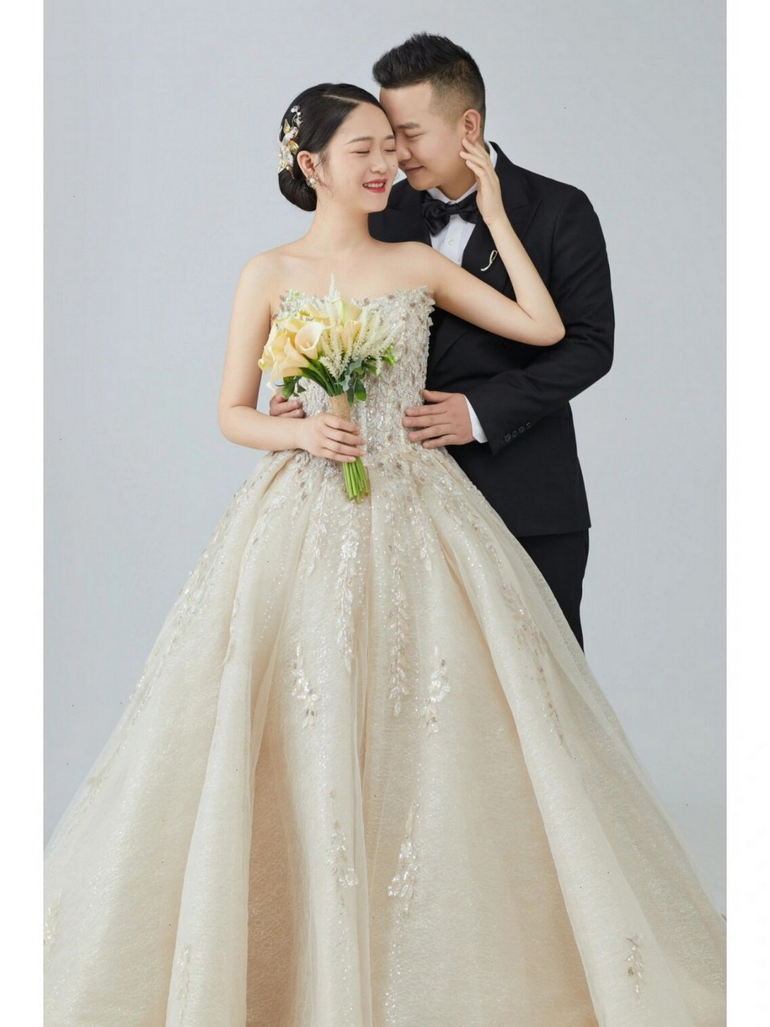 • 在我们周边,有很多朋友都是在她们家拍婚纱照,拍出来的效果真的很让人惊艳!所以当时我们也毫不犹豫地就选择了她们家,她们家的小姐姐也很nice,从选择服装,到拍摄结束,她们都非常贴心地为我们提供服务。而摄影师拍照的时候也很有技巧,还会让人发笑,专业程度可见一斑,特别是对于我这种胳膊比较粗壮的人来说,他也特意避开了这些细节,以后我们拍照片还会继续找他哒!而化妆师的技术也非常棒,人也非常温柔体贴,且细节方面也做得非常好,总之选择她们家绝对是正确的!虽然有些工作人员的名字我已经记不起来了,但是还是要谢谢她们家的每一位工作人员。