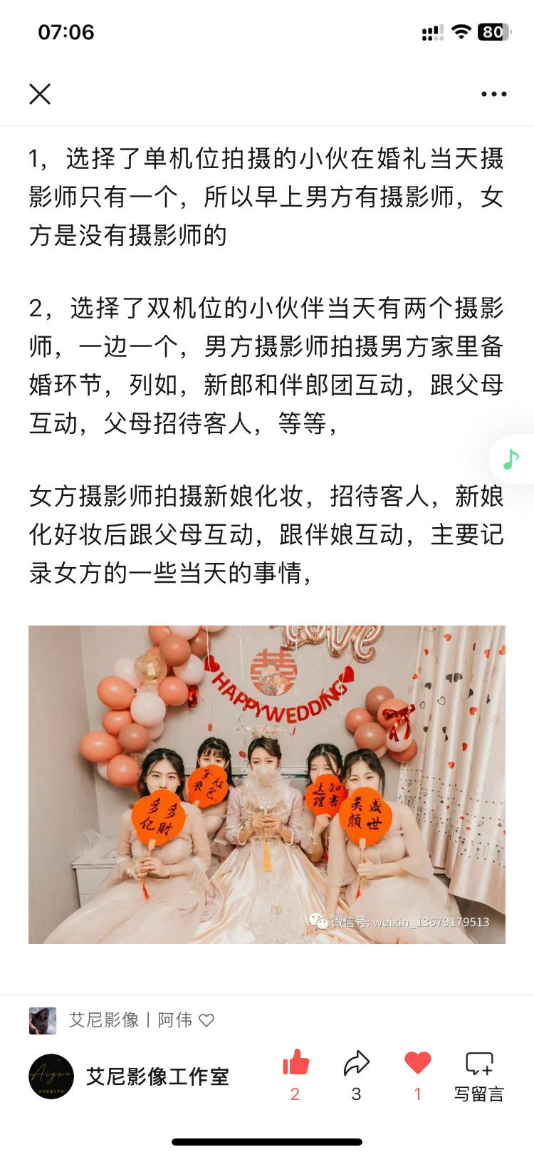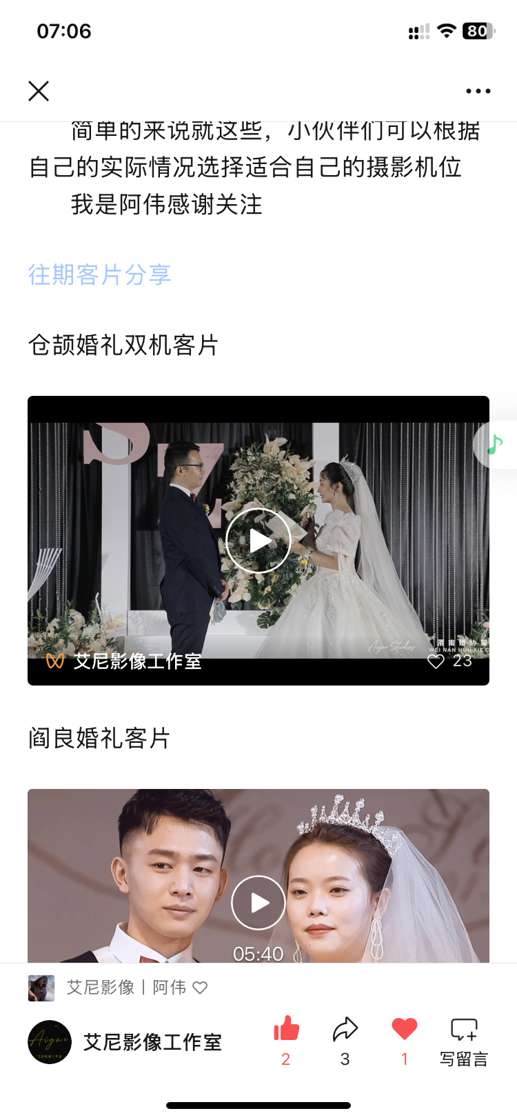 • 预计一个月的制片期,艾尼老师压缩到了15天,昨晚看到老师做的视频看到十二点,越看越感动,真的是满满的纪实感,感觉像是正在举办婚礼一样,真的是用心在拍摄的婚礼摄影师!