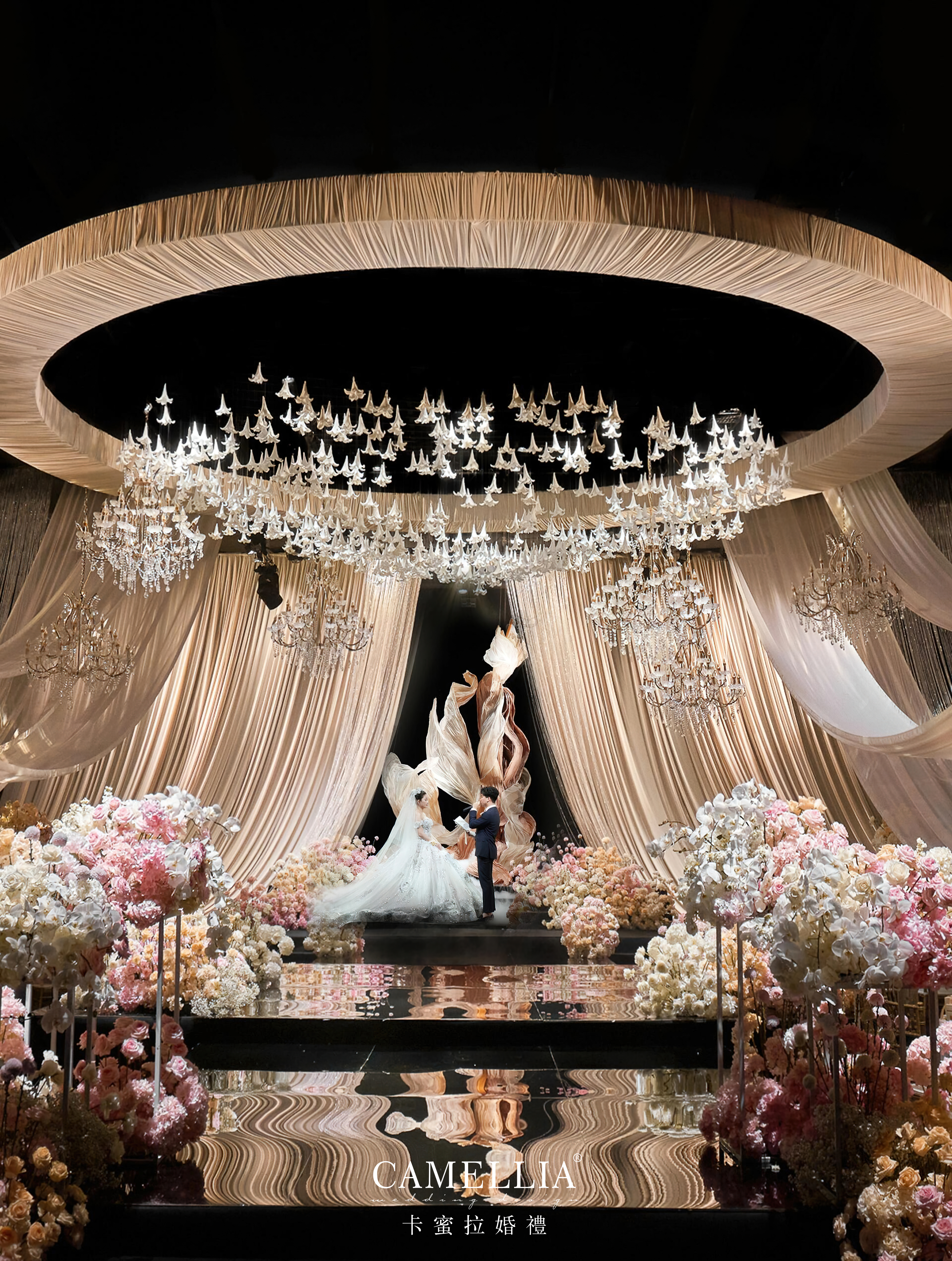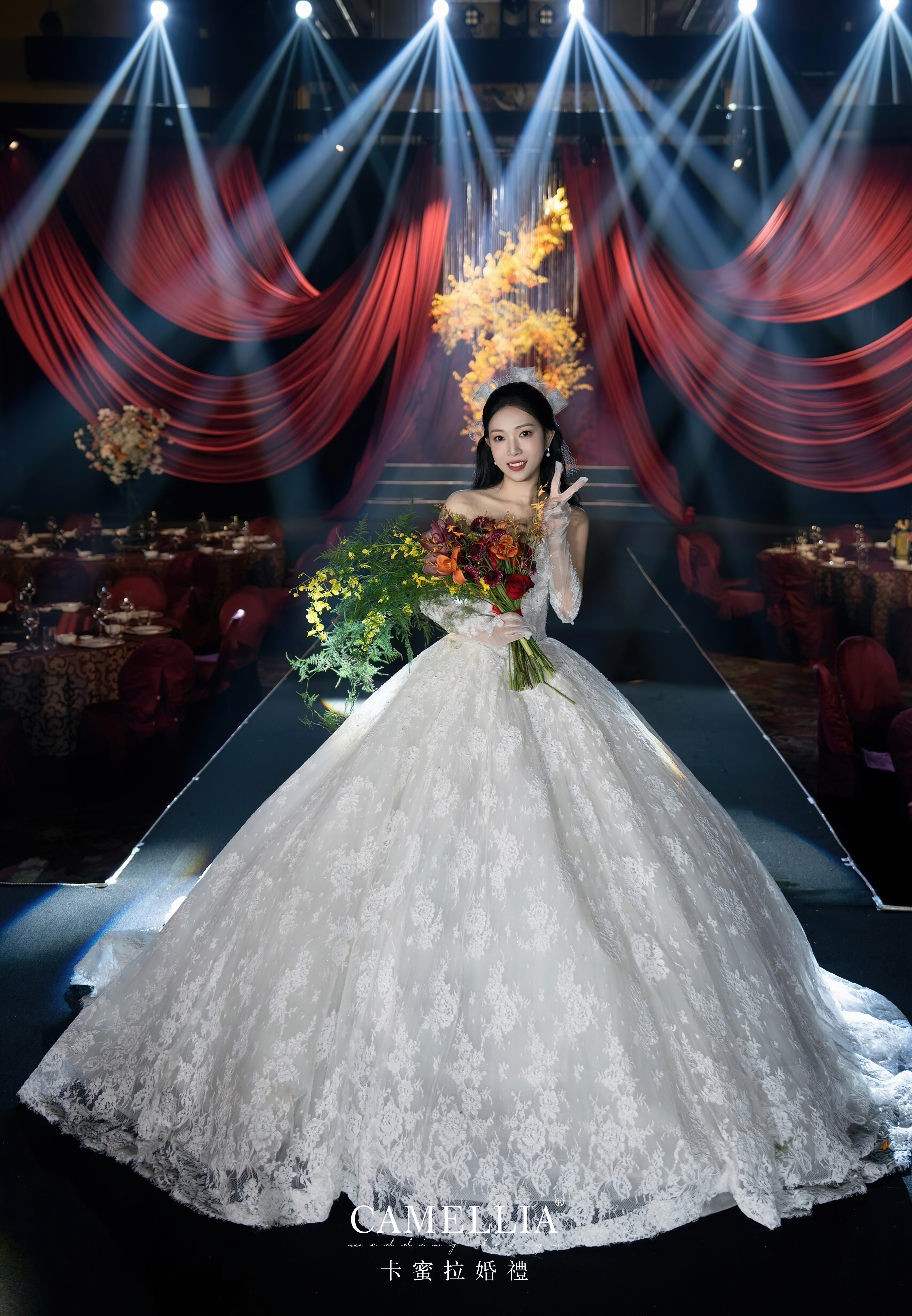 • 我来为我的策划师和设计师了! !婚礼策划交给卡蜜拉真的是太太太机智了!首先是审美真的高 级,对颜色搭配、花艺设计、灯的造型等等都拿捏的很精准;其次是现场比效果图还要饱满、高级,是所有人进场都要惊呼的好看!最后就是细节感,t台和舞台尺寸都贴心的照顾了大裙摆。
