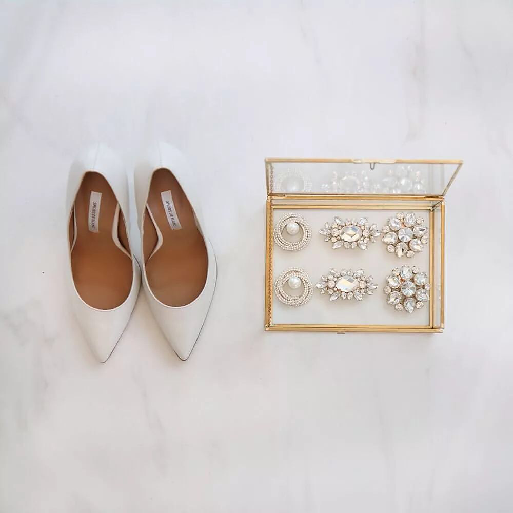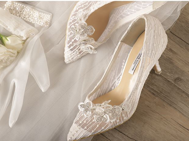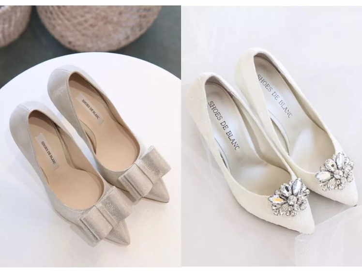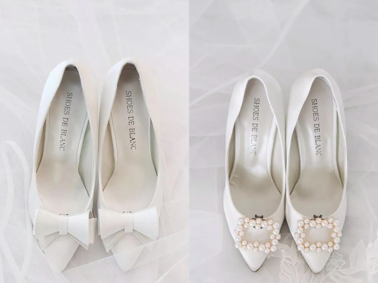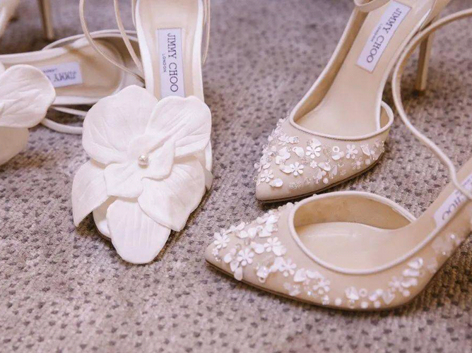 • 1. 不宜太高无论什么样的鞋跟,高度都不应该过高,保持在3-5厘米之间,这样既舒适又美观,婚后也不至于没场景穿。 2. 颜色婚鞋最佳色彩:红色、裸色、白色、银色,避免一些比较灰暗的颜色,因为这样少了些活泼和喜庆呀! 3. 注重和婚纱的繁简搭配如果婚纱设计较复杂,那么婚鞋则要简约;如果婚纱很简约,那么婚鞋就可以适当华丽一点哦! 4. 提前试穿不要买回来就束之高阁,应该在婚礼前,在家中适当试穿,婚礼当天才不会磨脚。 5. 不要选择过硬材质在选择婚鞋时,除了看款式和颜色,鞋子的材质也很重要。最好选择牛皮或者羊皮的婚鞋,才会越穿越舒适。