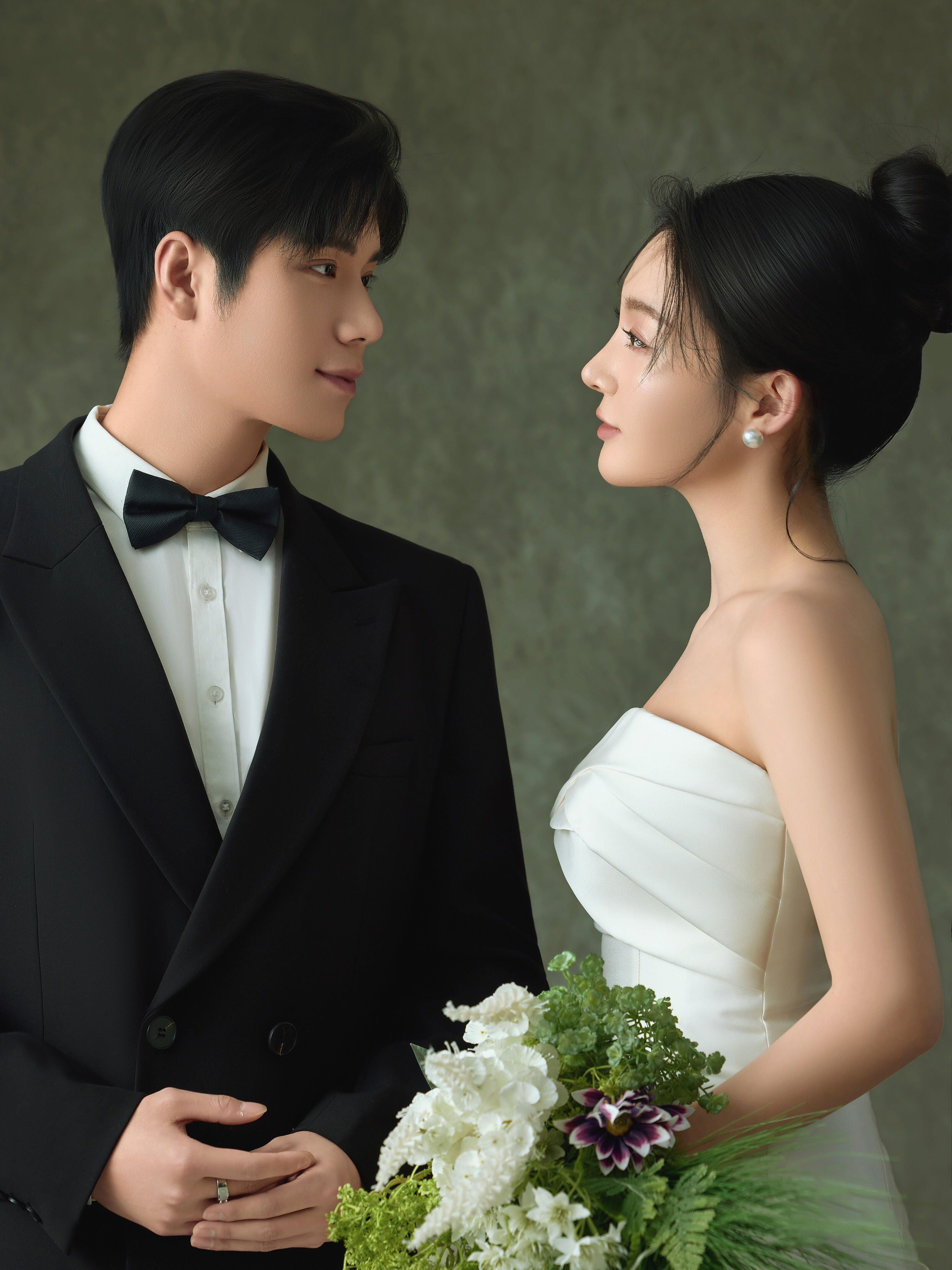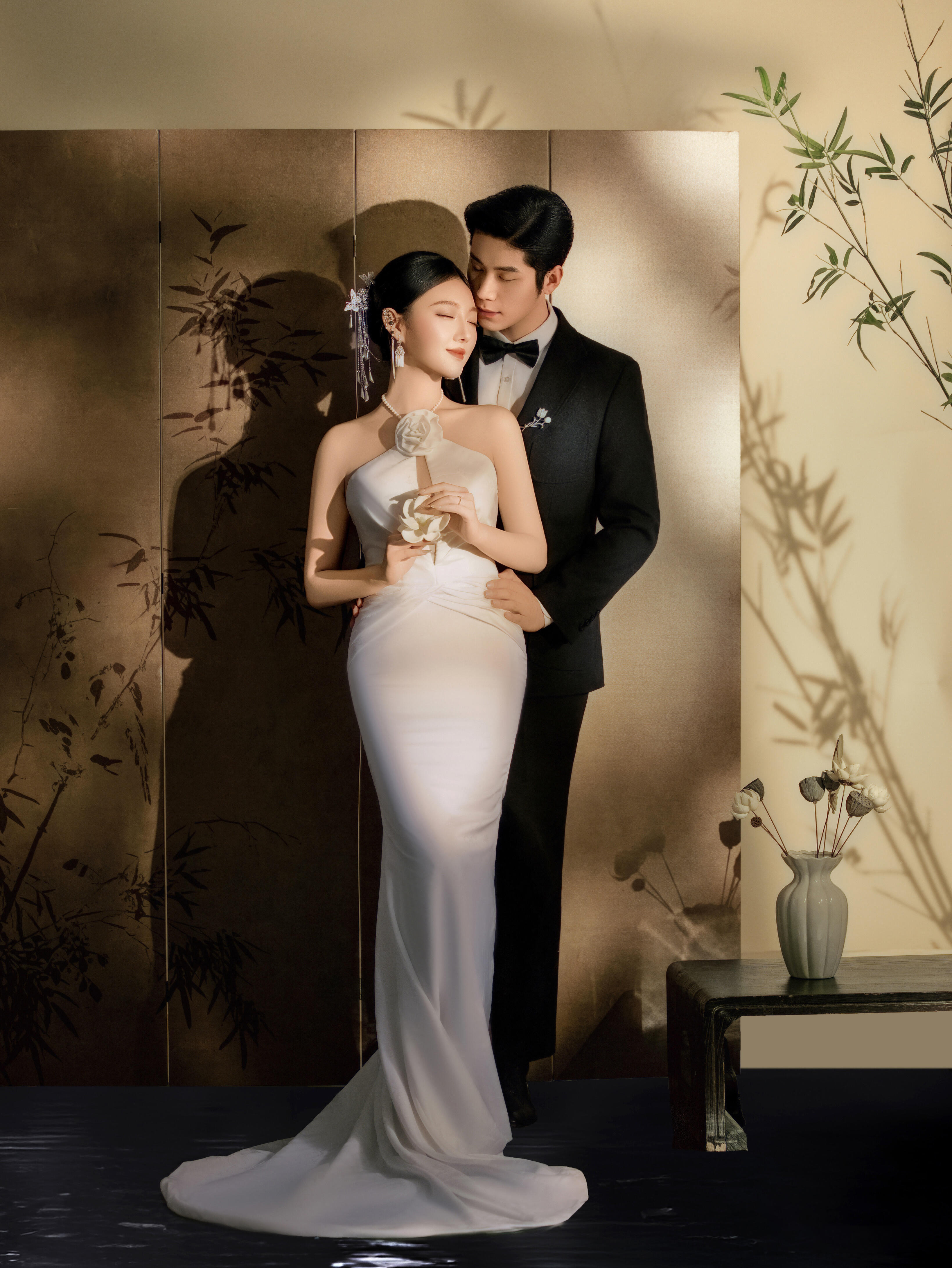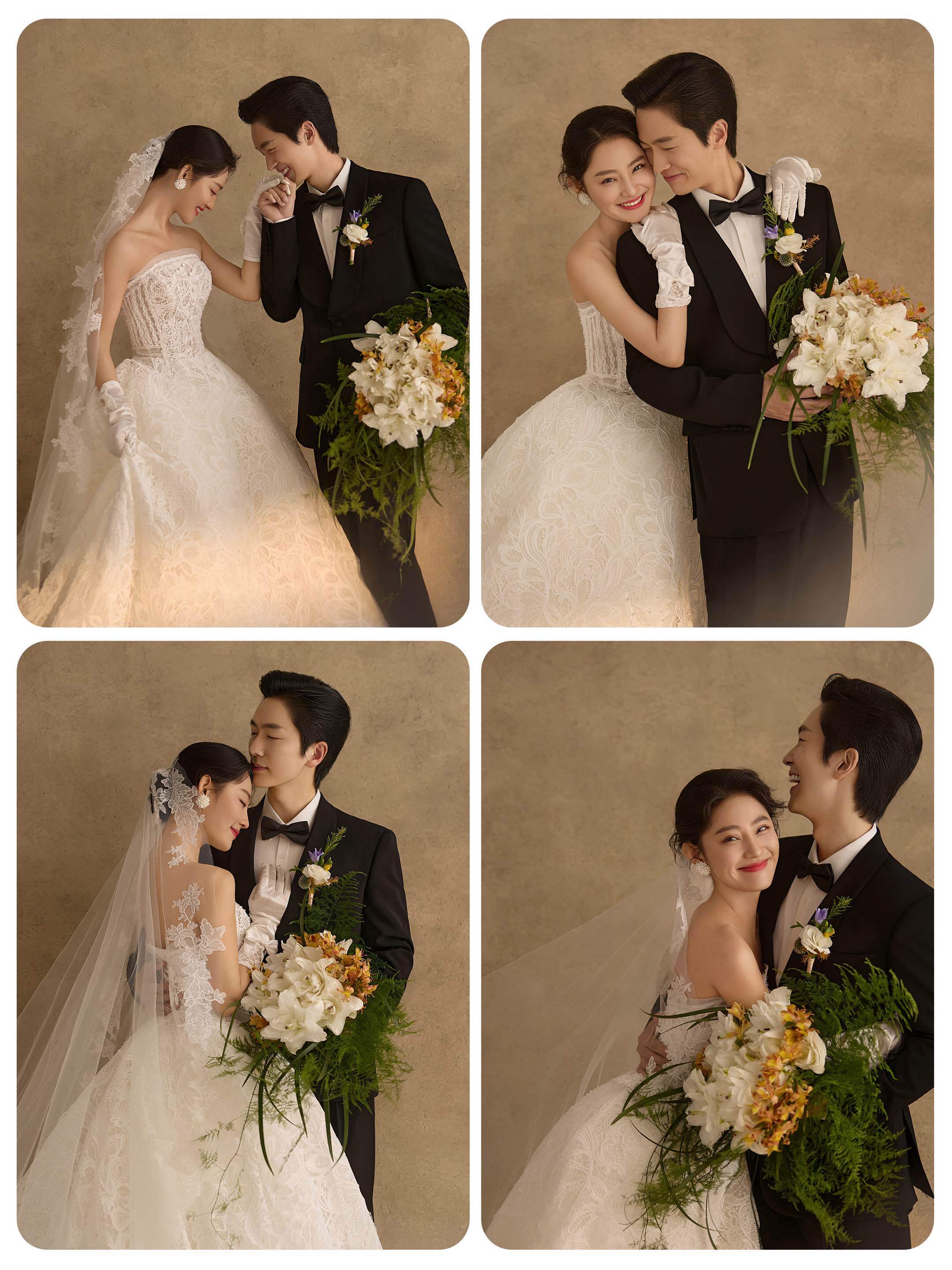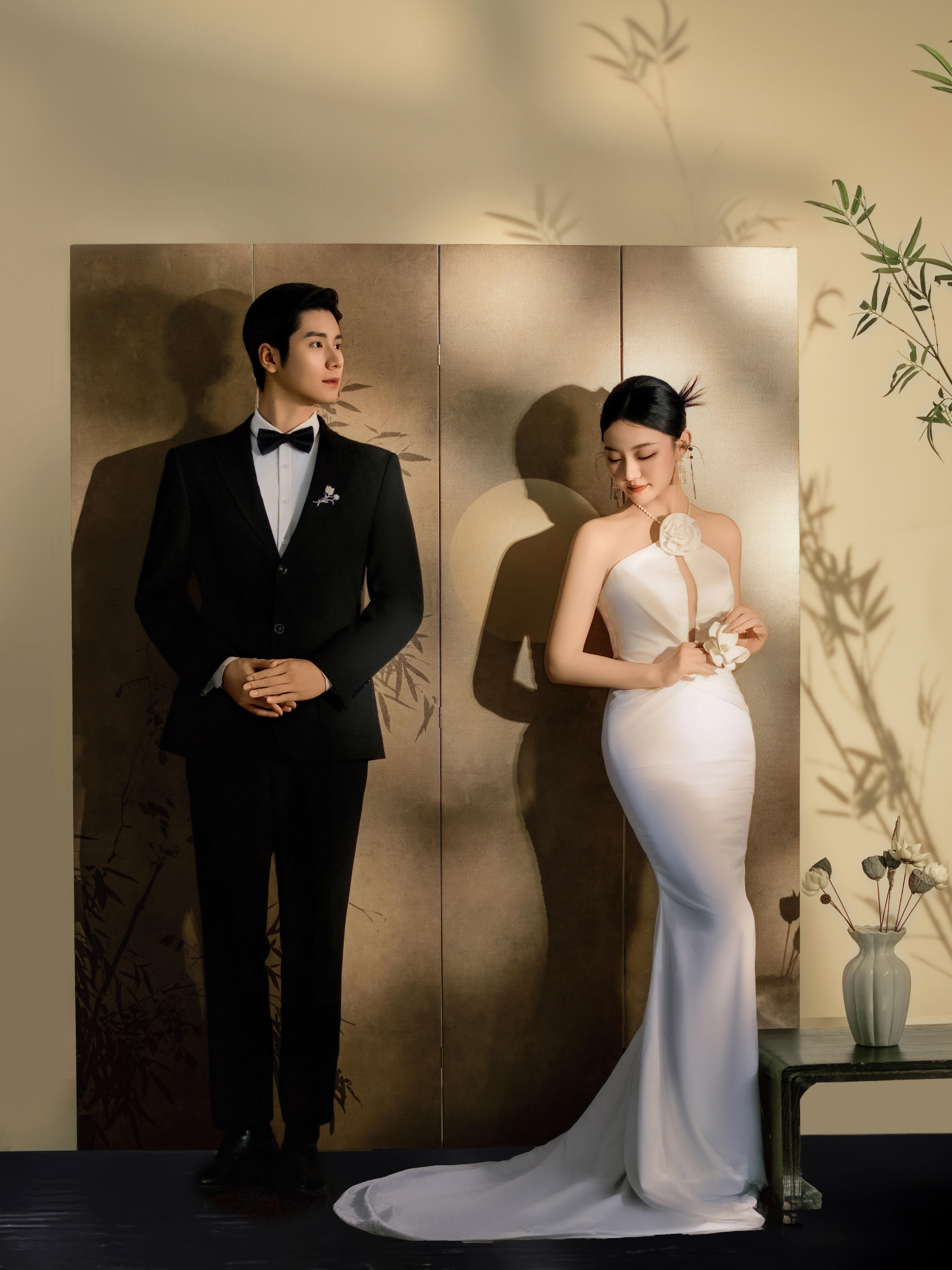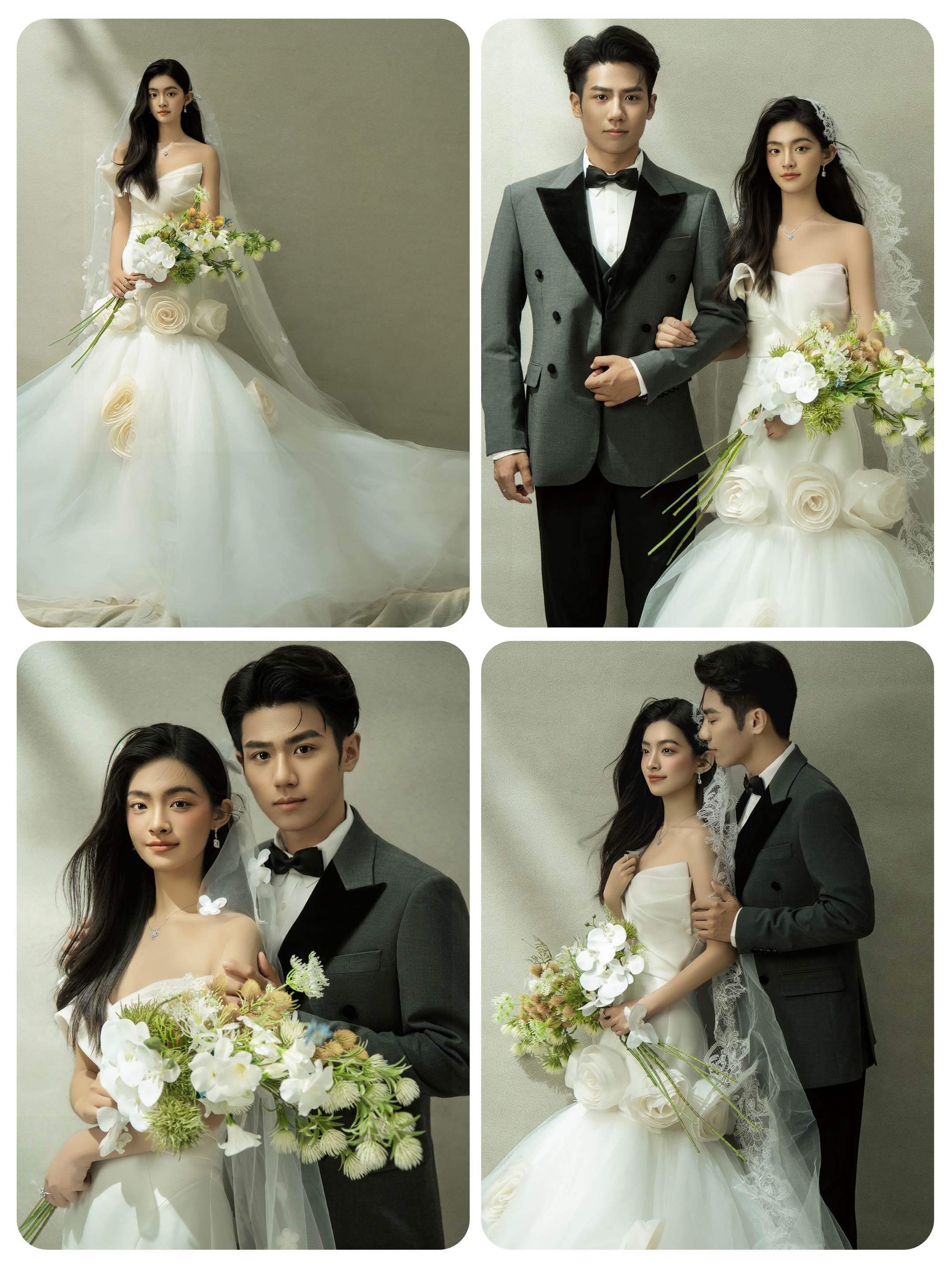• #浪漫光影婚纱照纯色背景的高级,香槟婚纱的细腻 她持花回眸、他温柔相拥🥰 每一幕都像爱情的温柔独白 - 极简主义 无需繁复修饰 ✨ 简约之中方能彰显不凡 捕捉爱情中纯粹的模样❤️