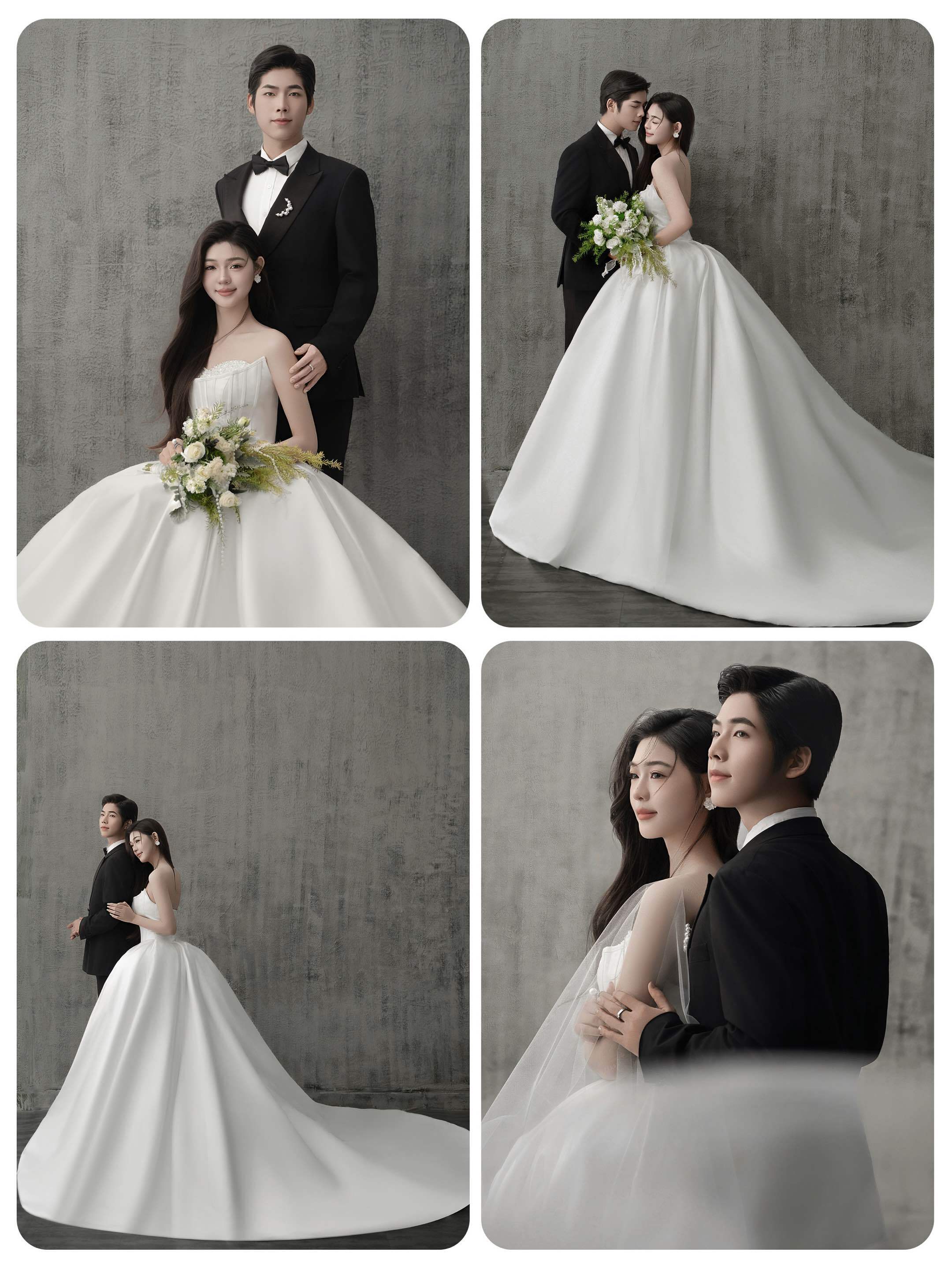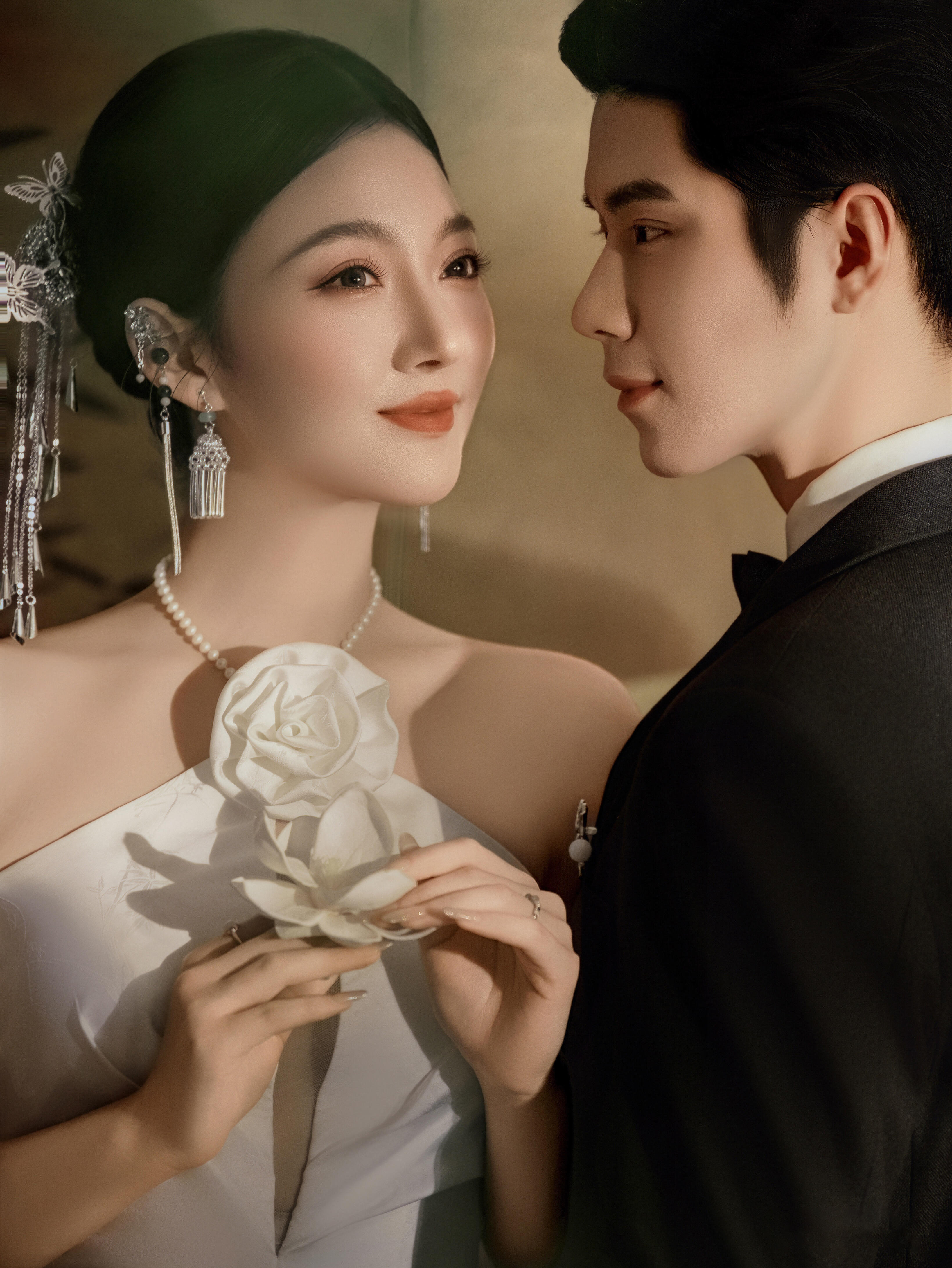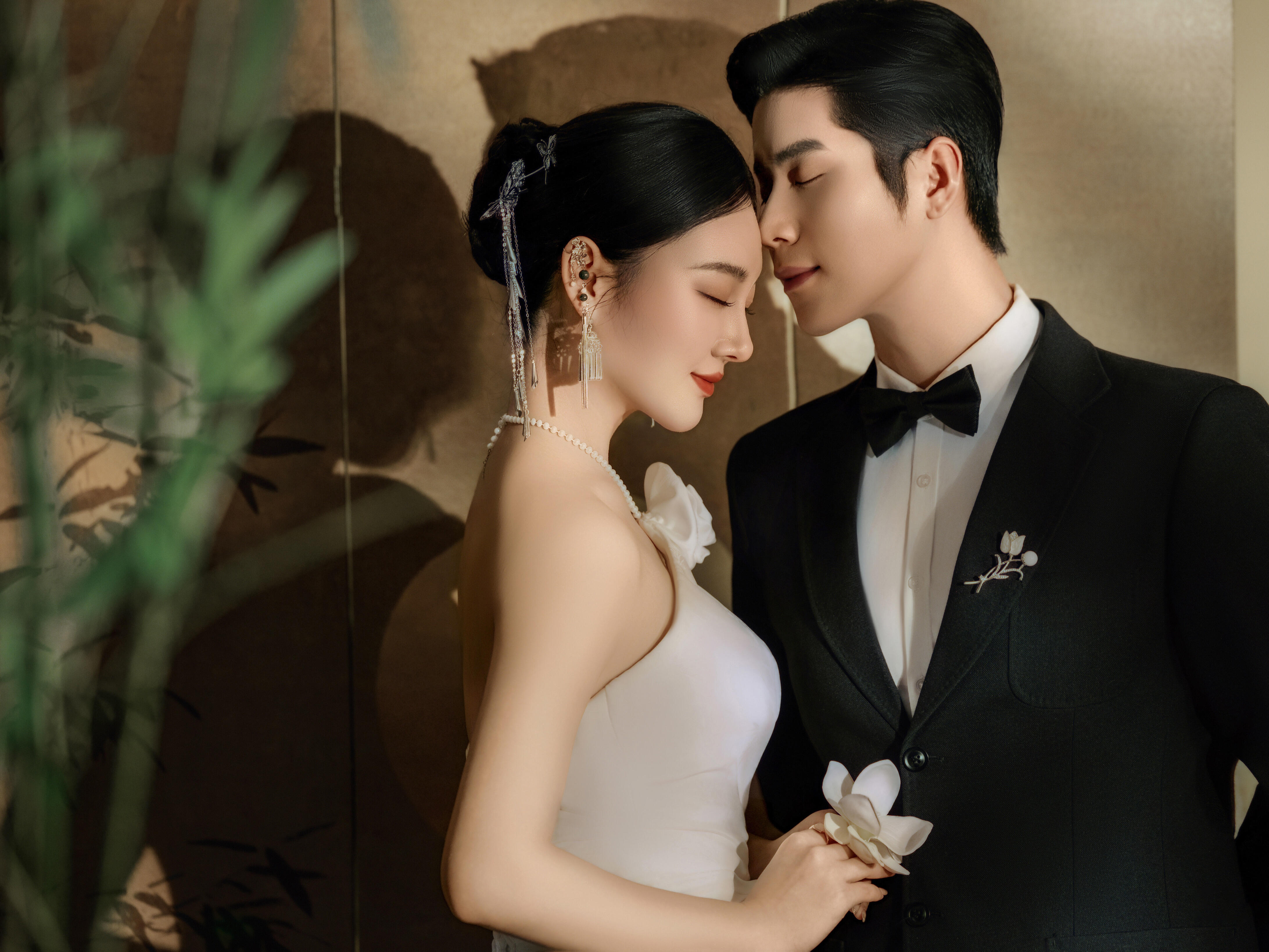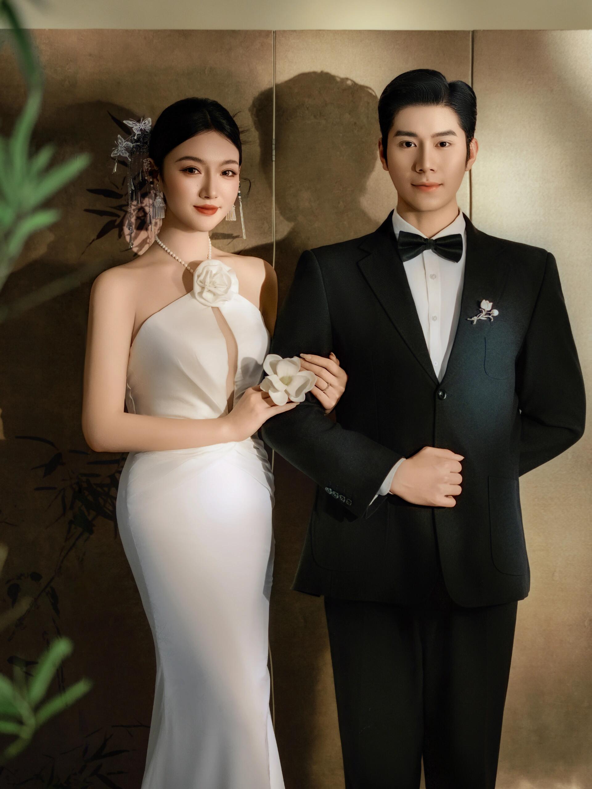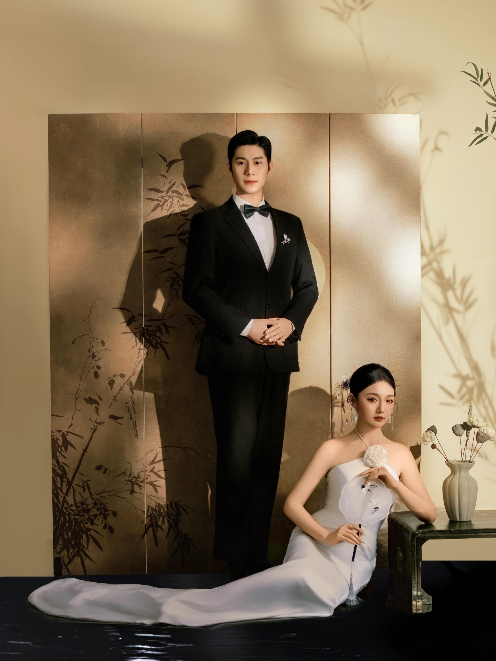 • #浪漫光影婚纱照纯色背景的高级,香槟婚纱的细腻 她持花回眸、他温柔相拥🥰 每一幕都像爱情的温柔独白 - 极简主义 无需繁复修饰 ✨ 简约之中方能彰显不凡 捕捉爱情中纯粹的模样❤️
