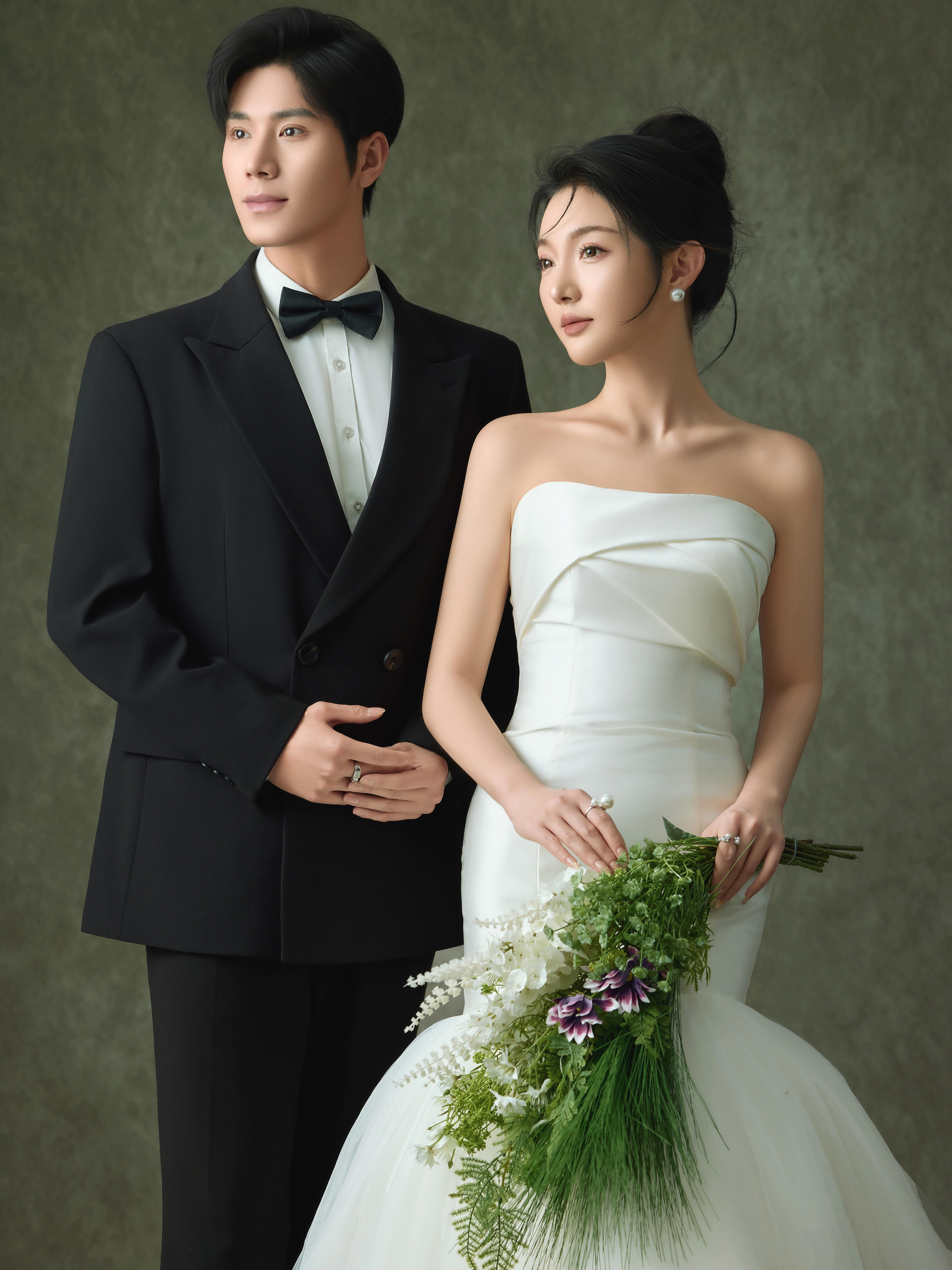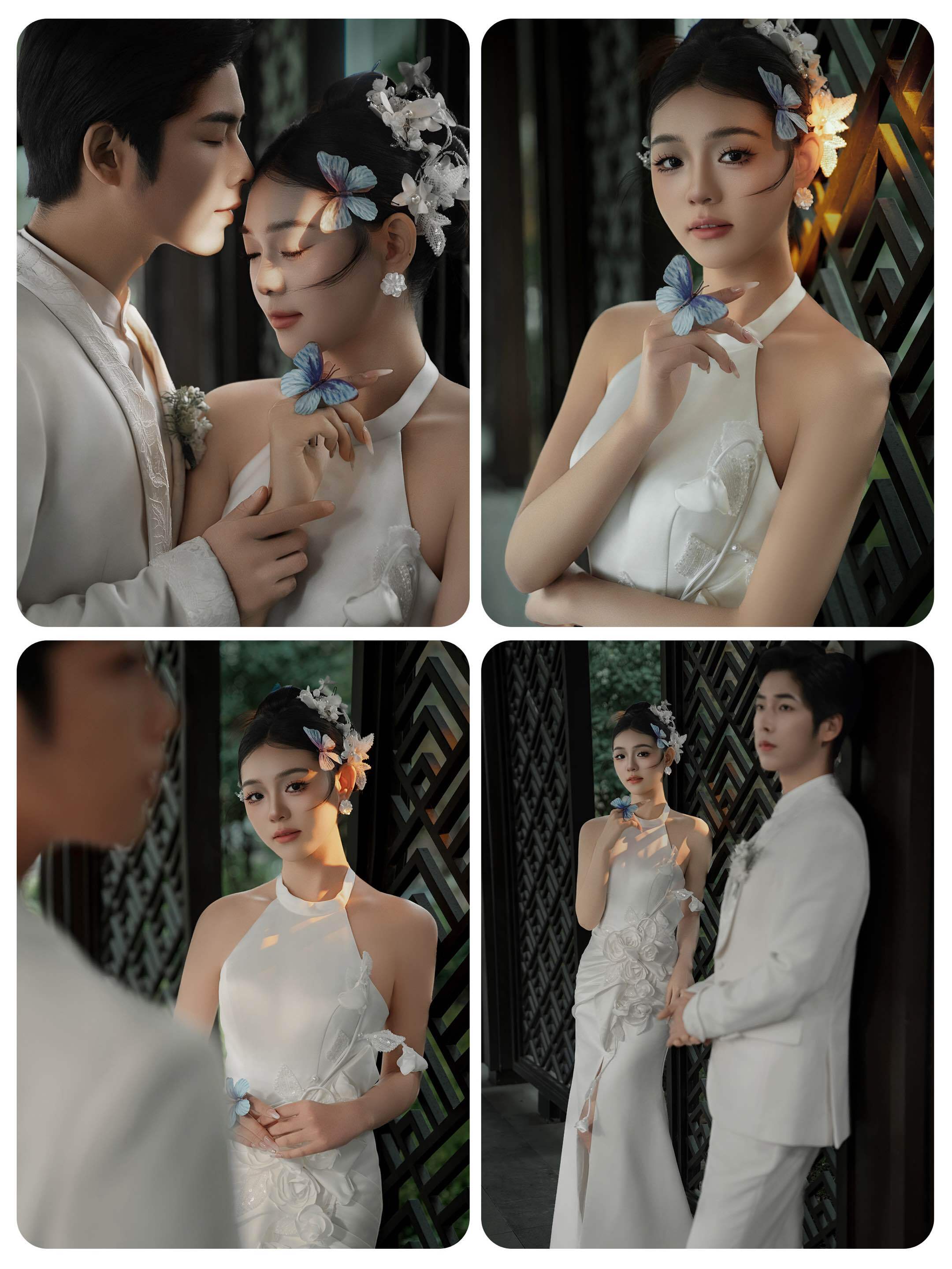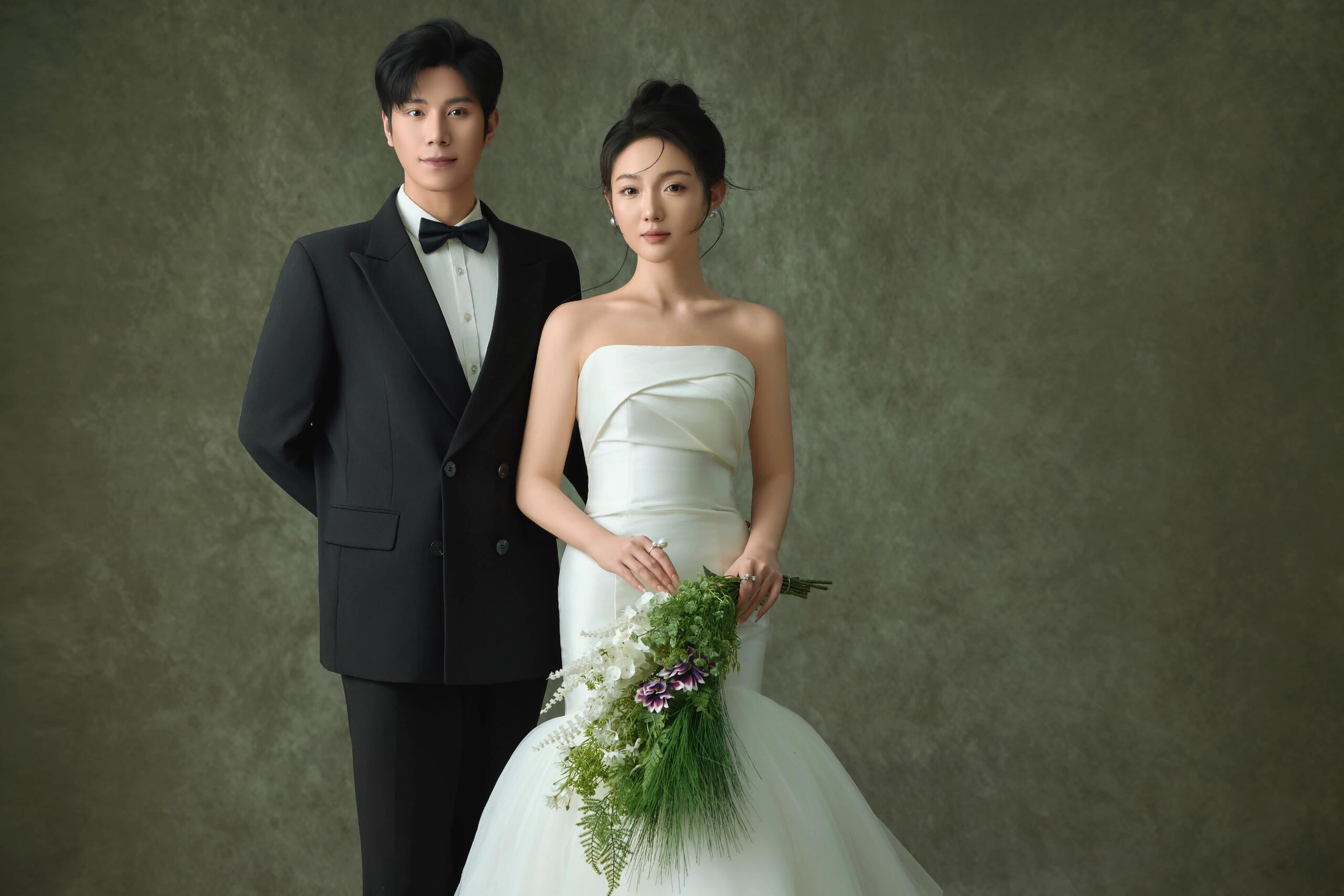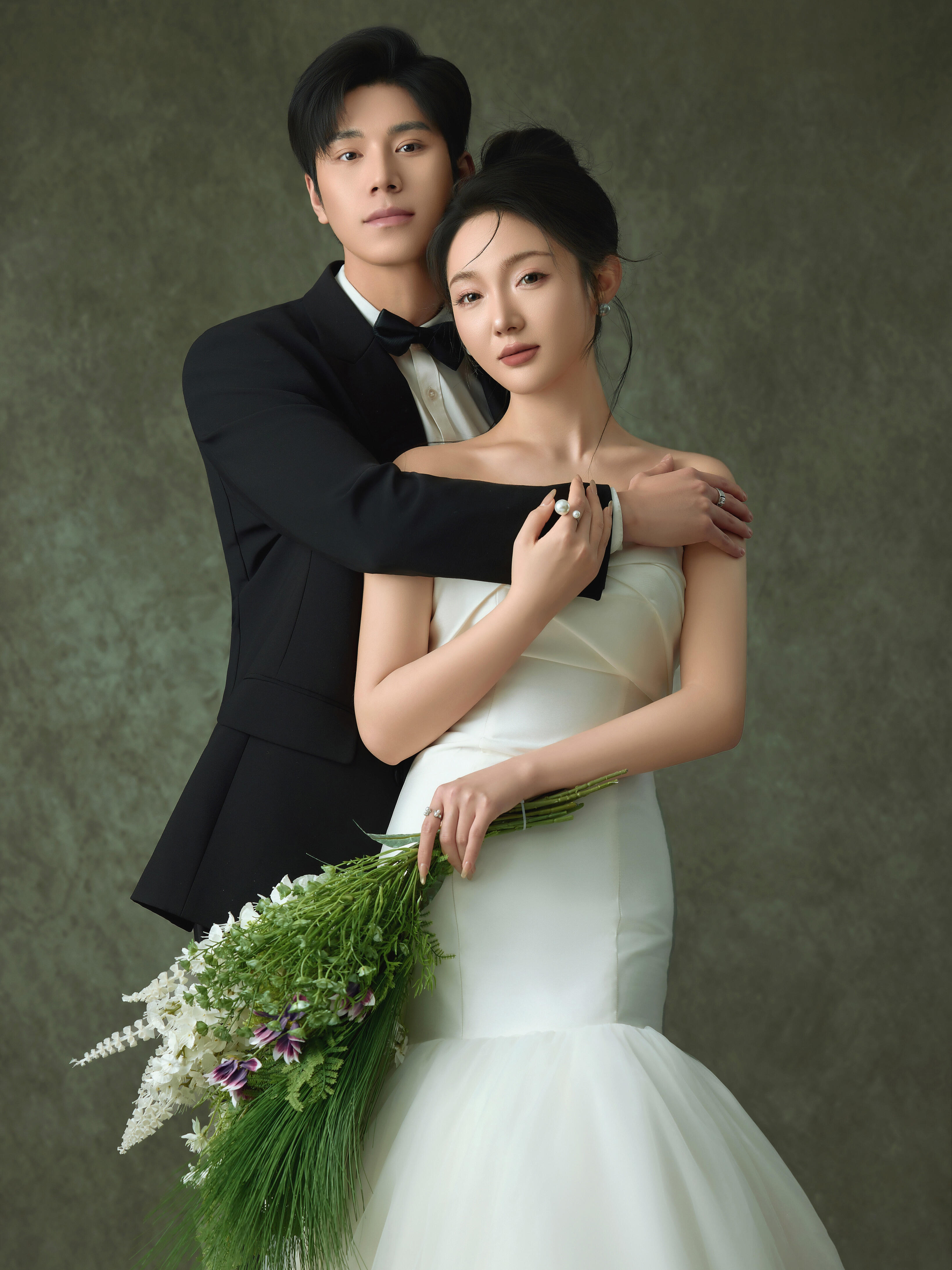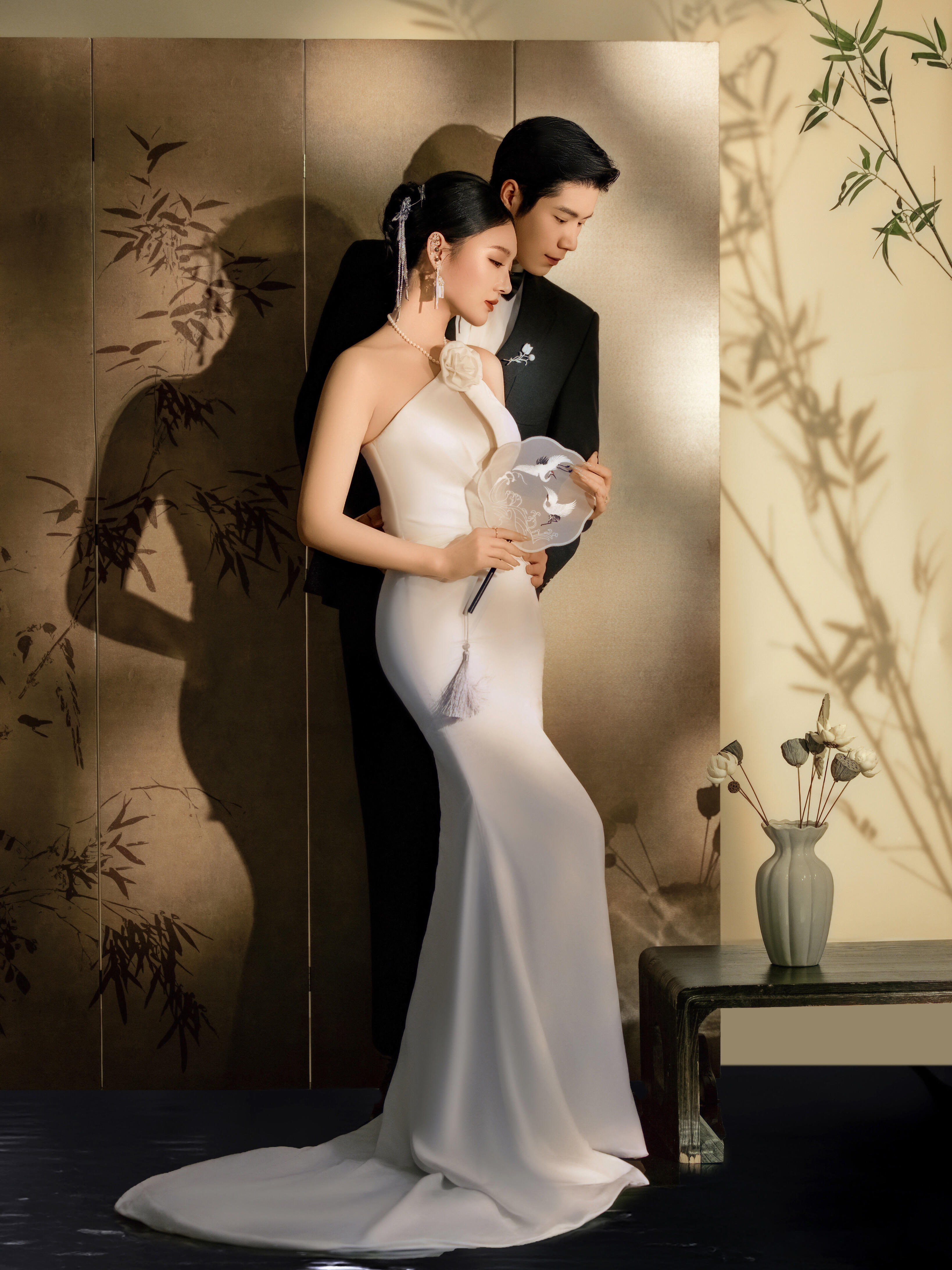 • #浪漫光影婚纱照纯色背景的高级,香槟婚纱的细腻 她持花回眸、他温柔相拥🥰 每一幕都像爱情的温柔独白 - 极简主义 无需繁复修饰 ✨ 简约之中方能彰显不凡 捕捉爱情中纯粹的模样❤️