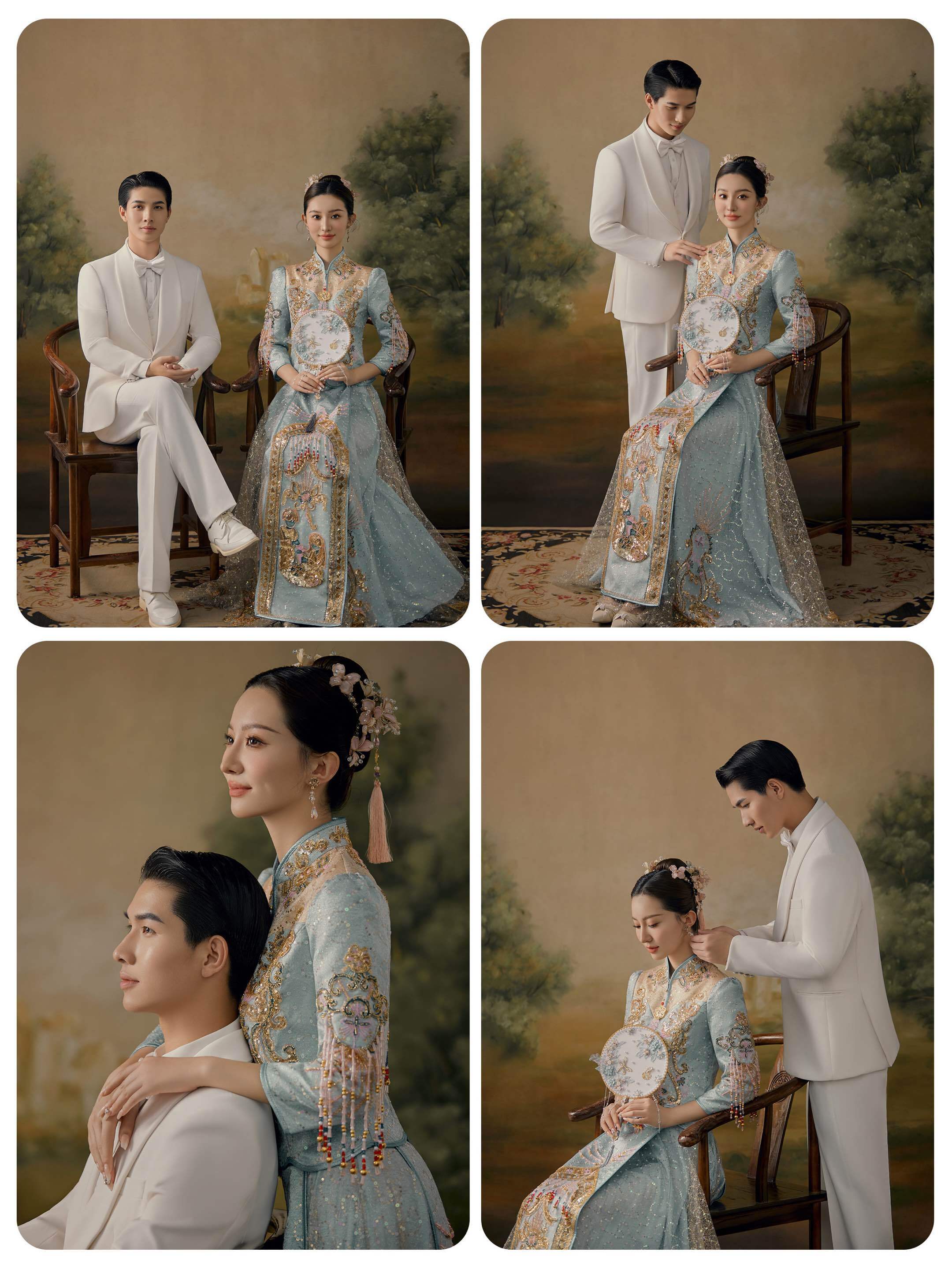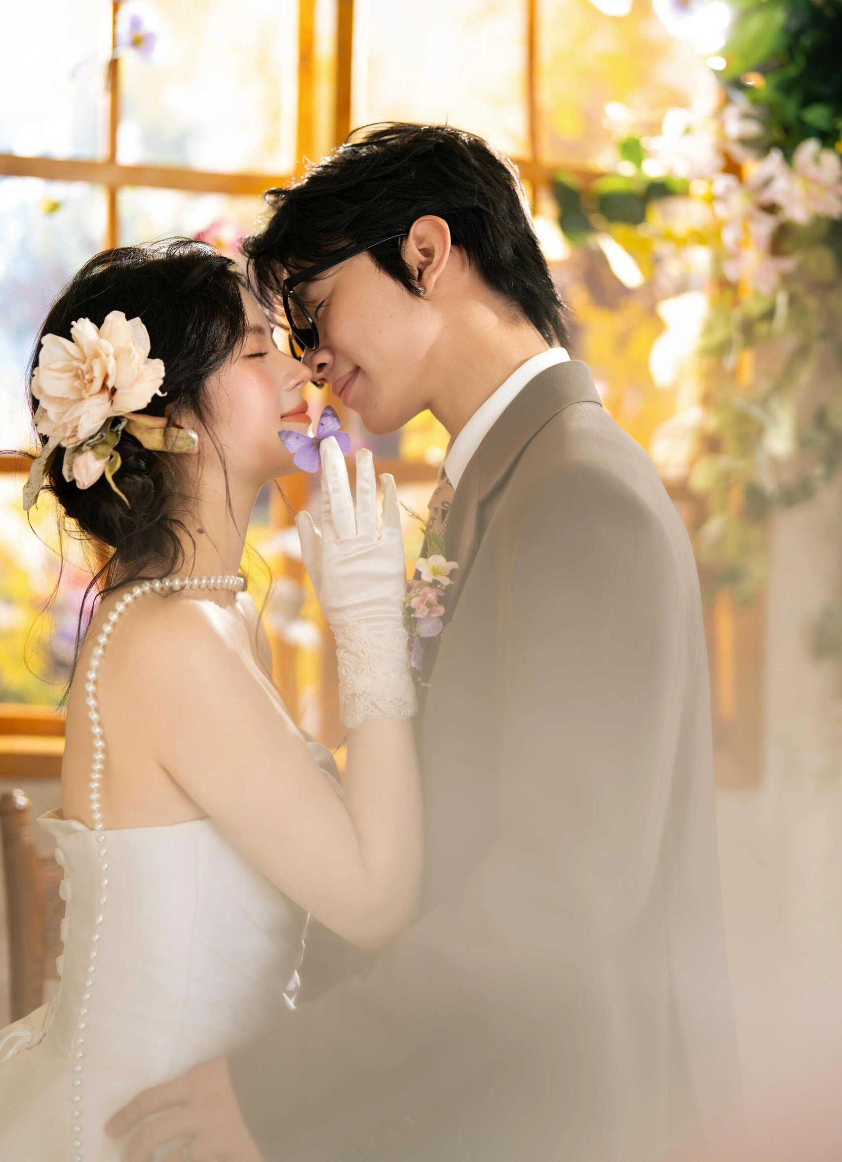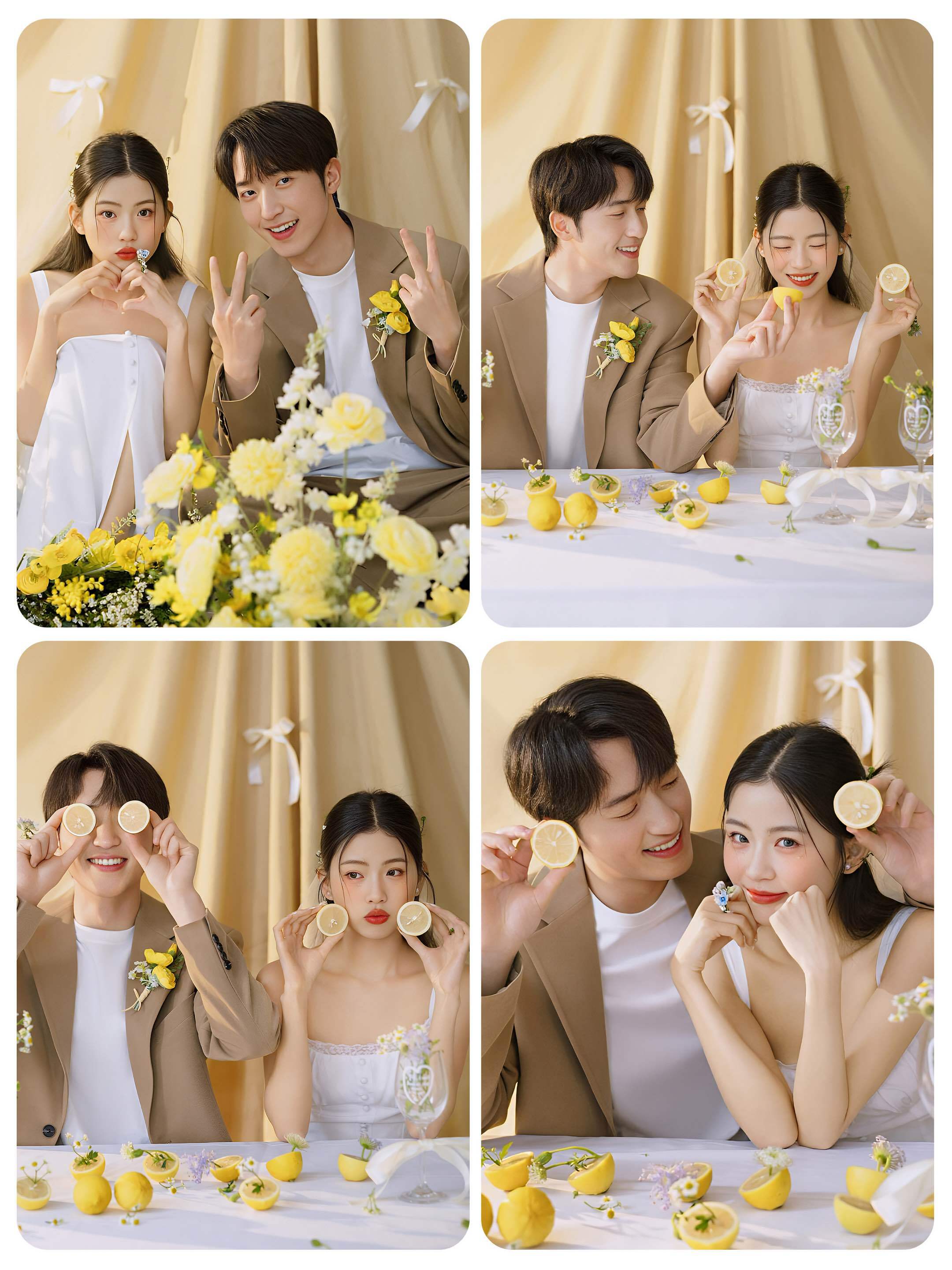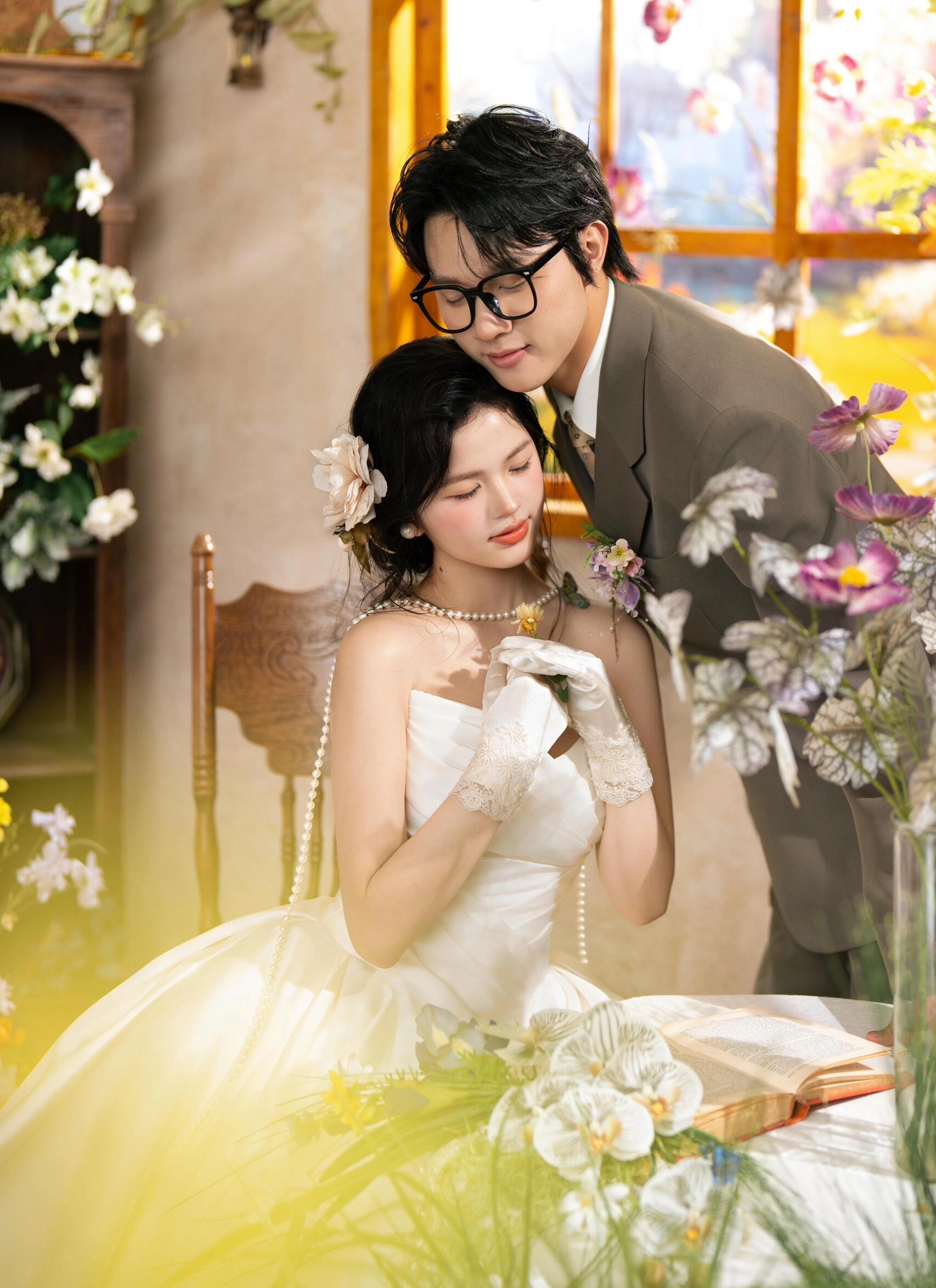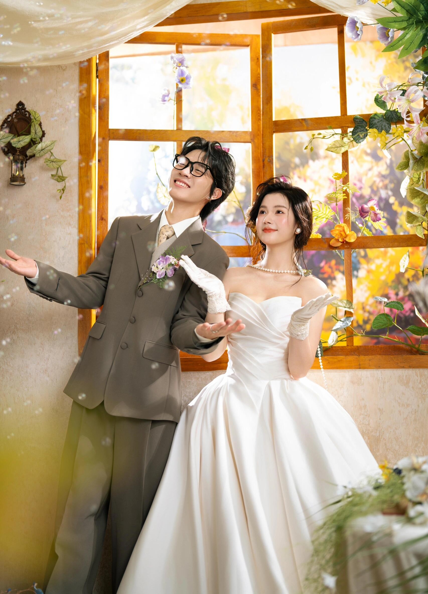 • #浪漫光影婚纱照纯色背景的高级,香槟婚纱的细腻 她持花回眸、他温柔相拥🥰 每一幕都像爱情的温柔独白 - 极简主义 无需繁复修饰 ✨ 简约之中方能彰显不凡 捕捉爱情中纯粹的模样❤️