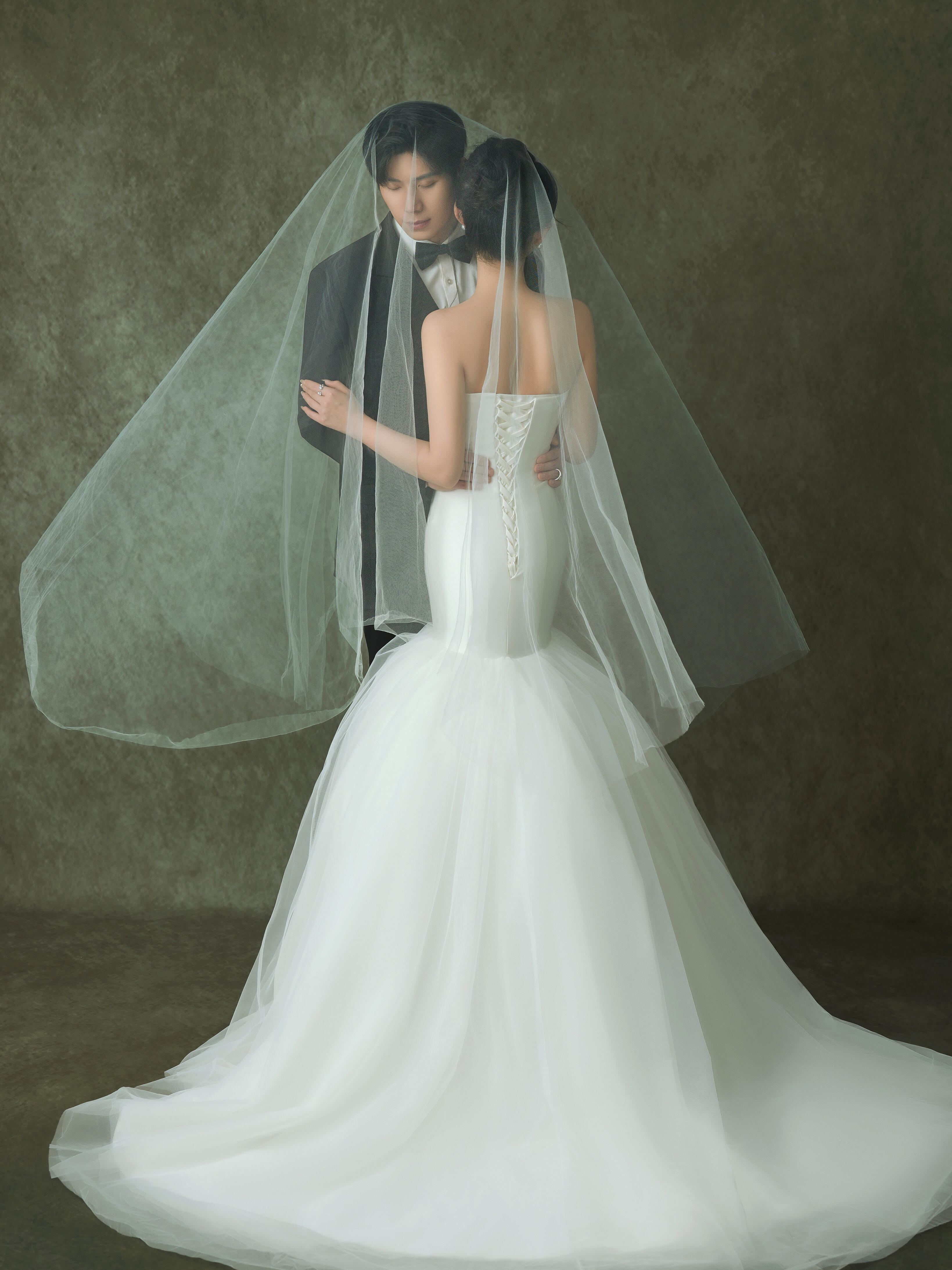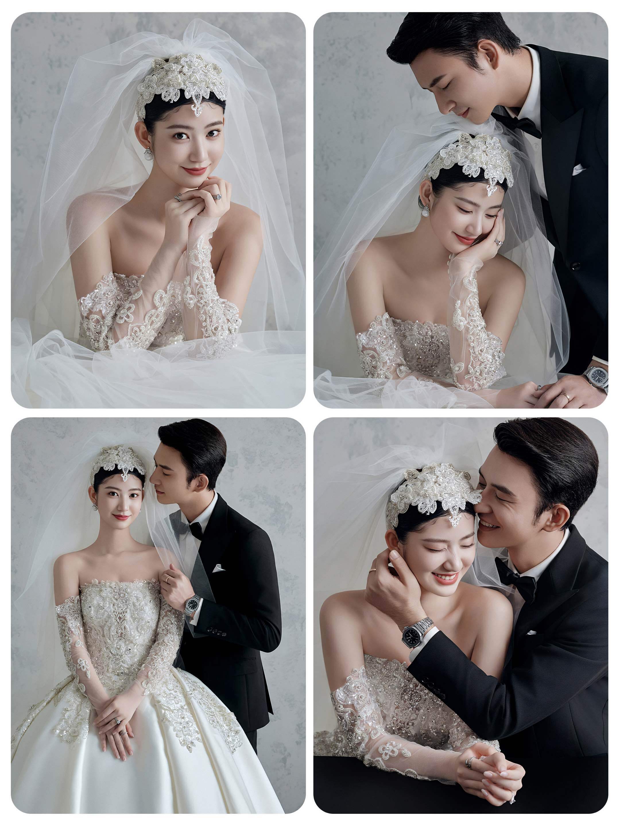 • #浪漫光影婚纱照结婚一定要拍组极简主纱婚纱照 仪式感与高级感并存 ✨ 简约大气又俏皮甜蜜 - 室内灰黑色的背景 ,简约又质感满满 层叠裙摆裹满温柔,搭配新郎黑西装🤵 - 互动时的轻吻、依偎时的笑意 画面真挚细腻又浪漫💕