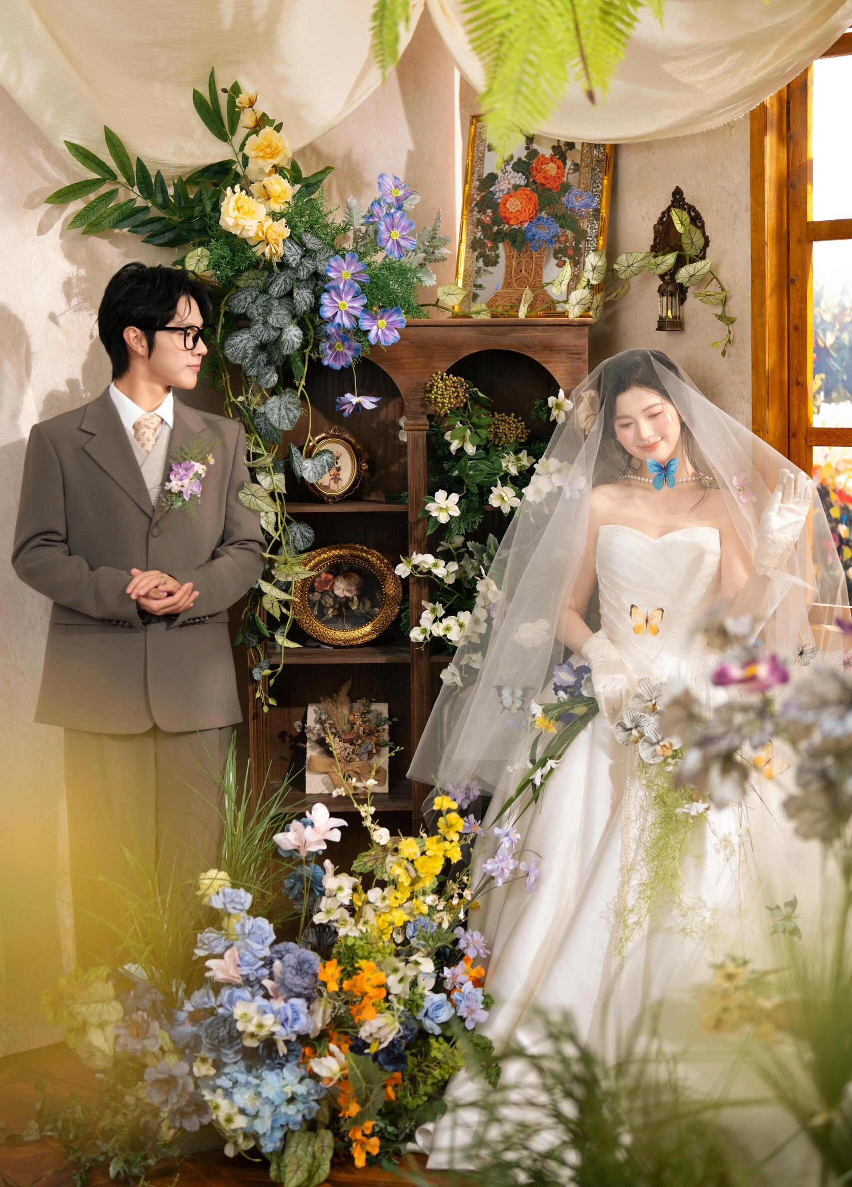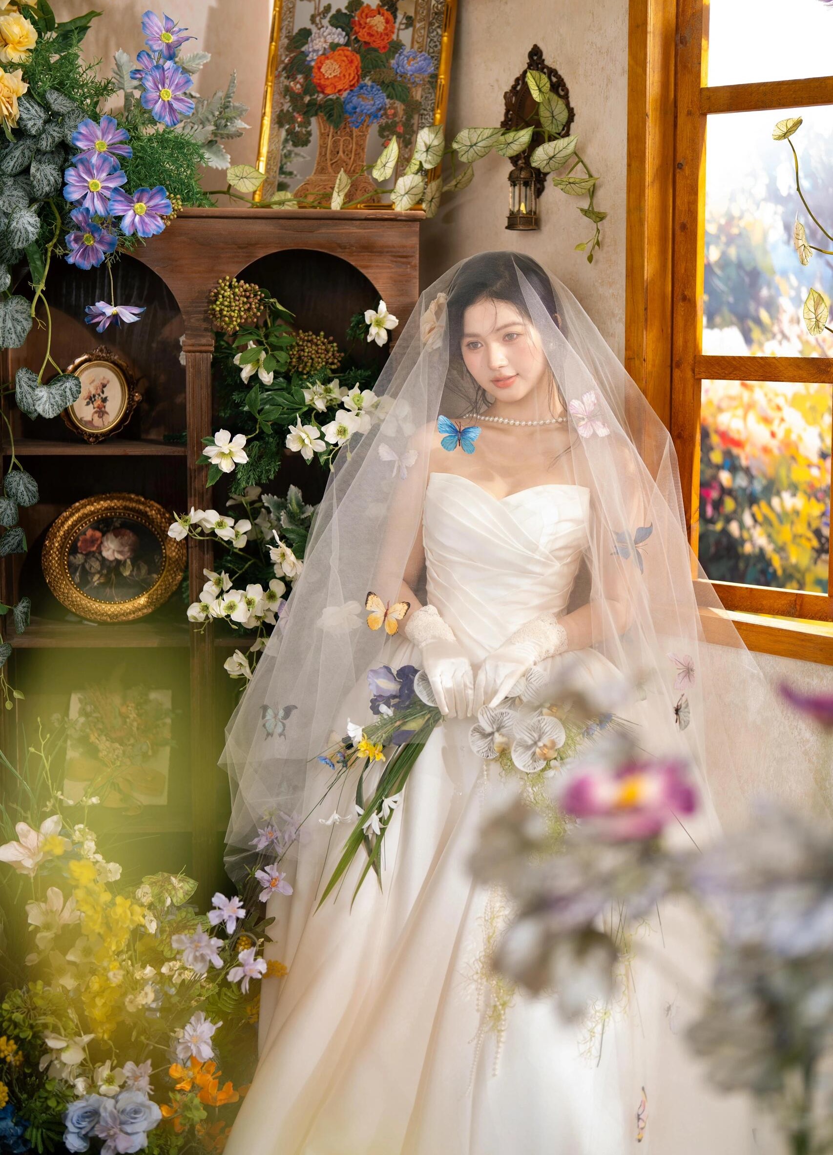 • #韩式花房婚纱照翻看了无数遍还是很喜❗️ 花房里的精灵公主🧚 像是闯进了绿野仙踪 灵动少女的氛围感拉满✨
